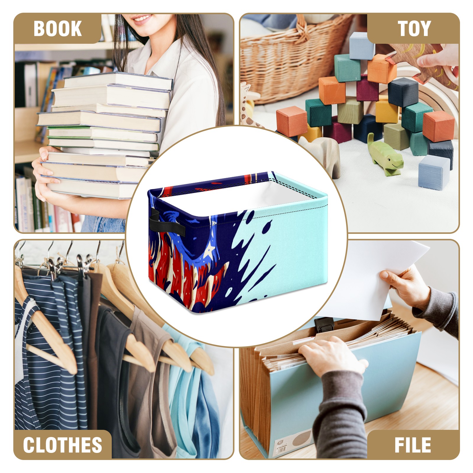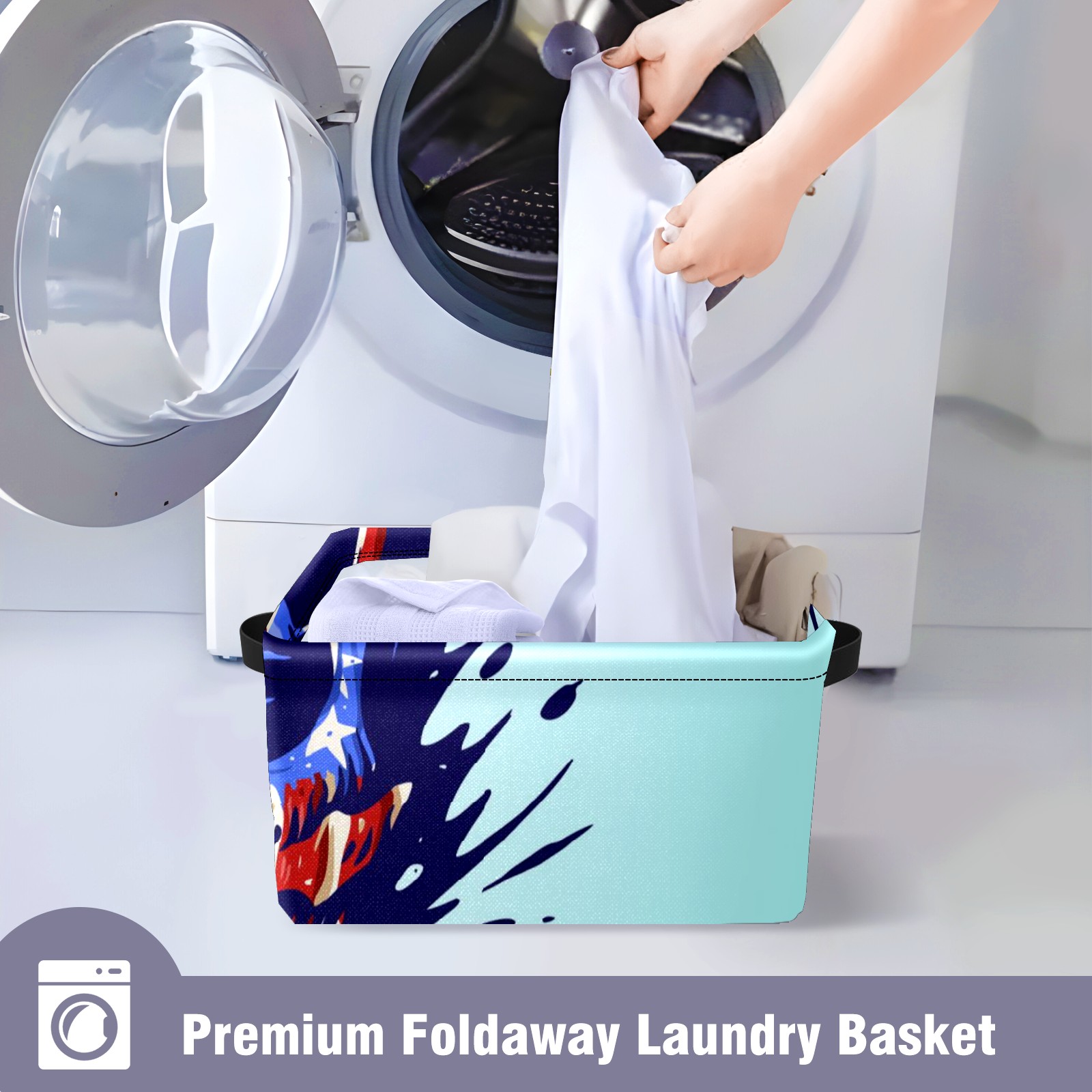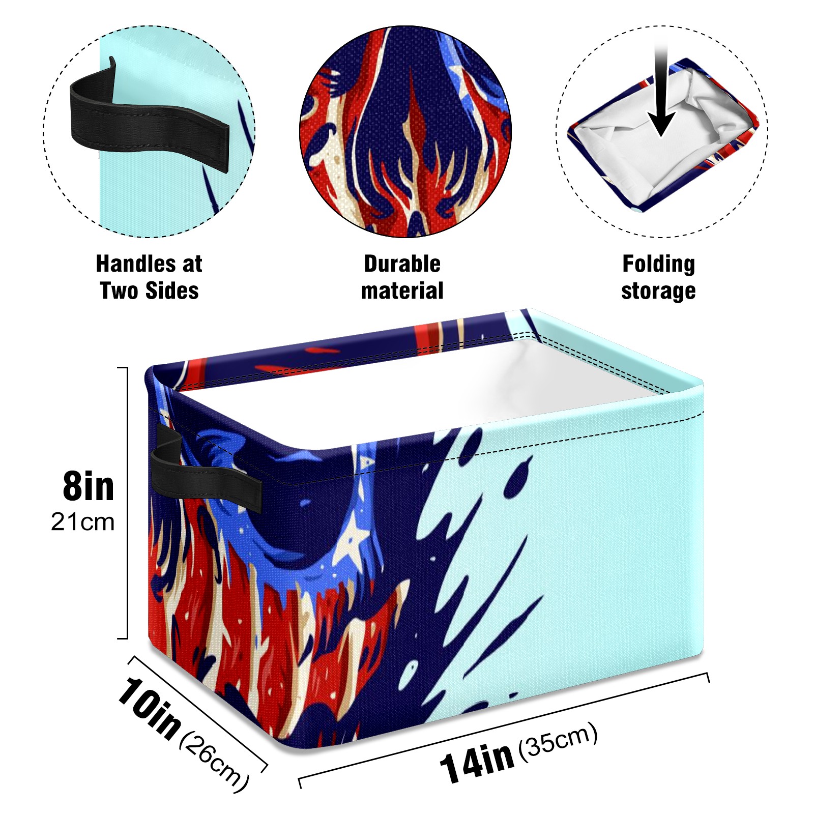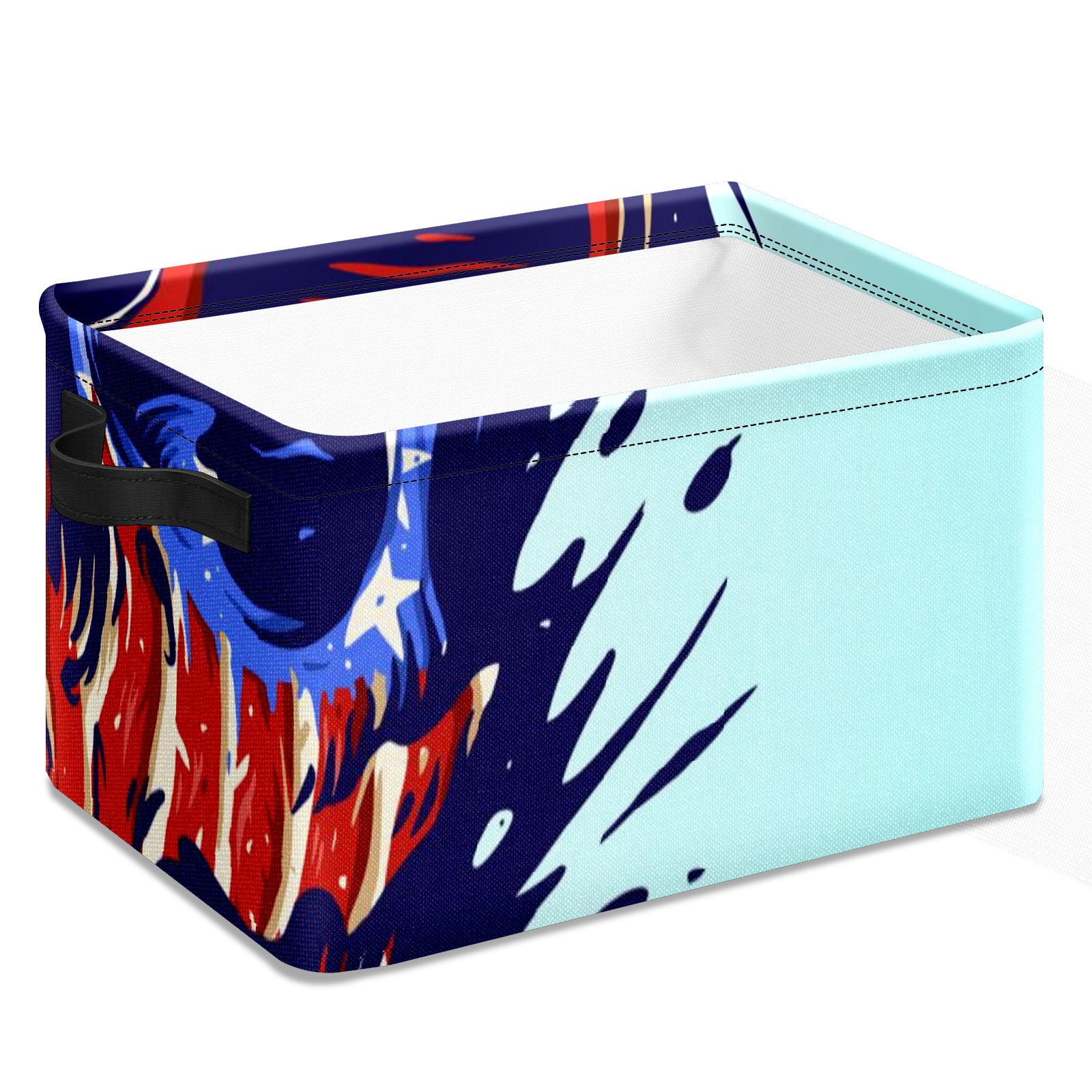 Collapsible 600D Oxford Storage Basket with Flag Skull Gold Dental - Metal Frame 10"x14"x8" Reinforced Handles, Multi-Purpose Organizer