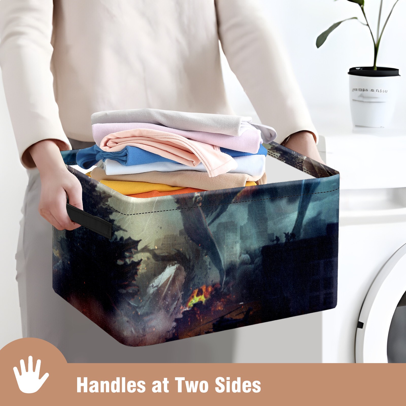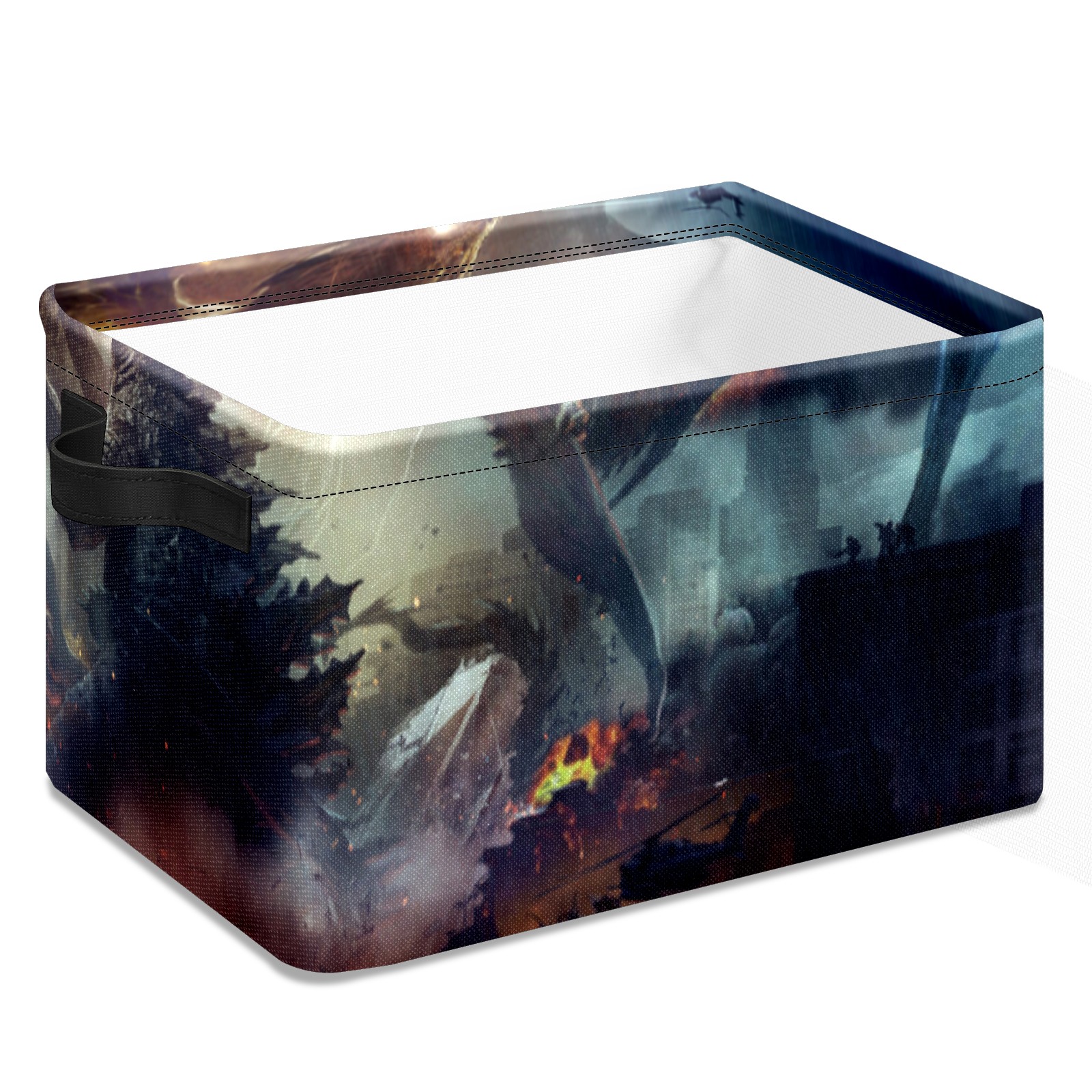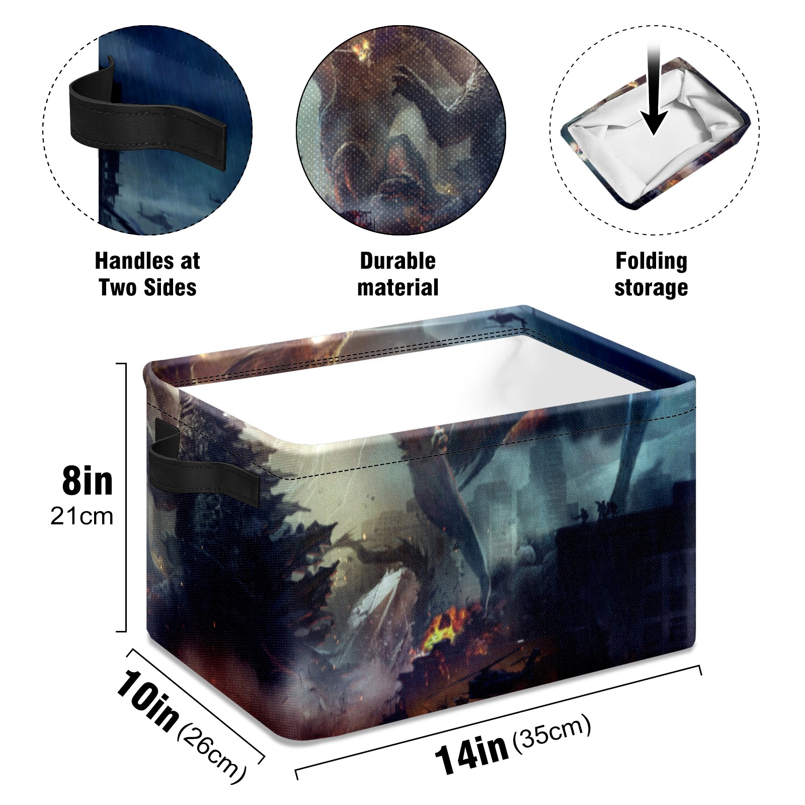 Collapsible 600D Oxford Storage Basket with Monster Dinosaur - Metal Frame 10"x14"x8" Reinforced Handles, Multi-Purpose Organizer
