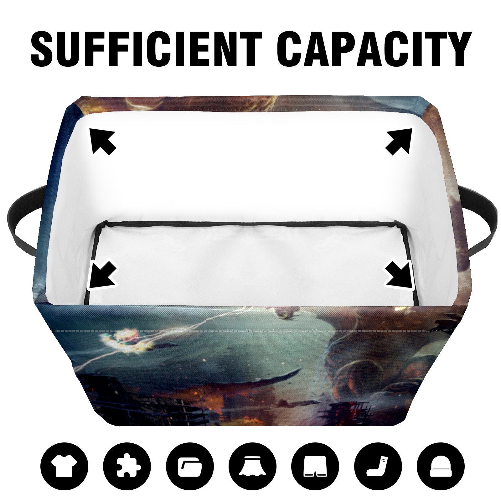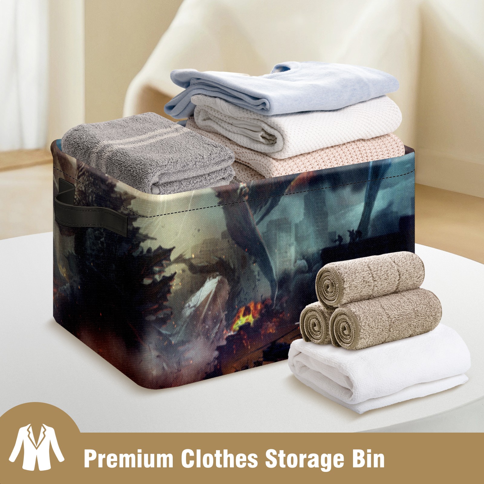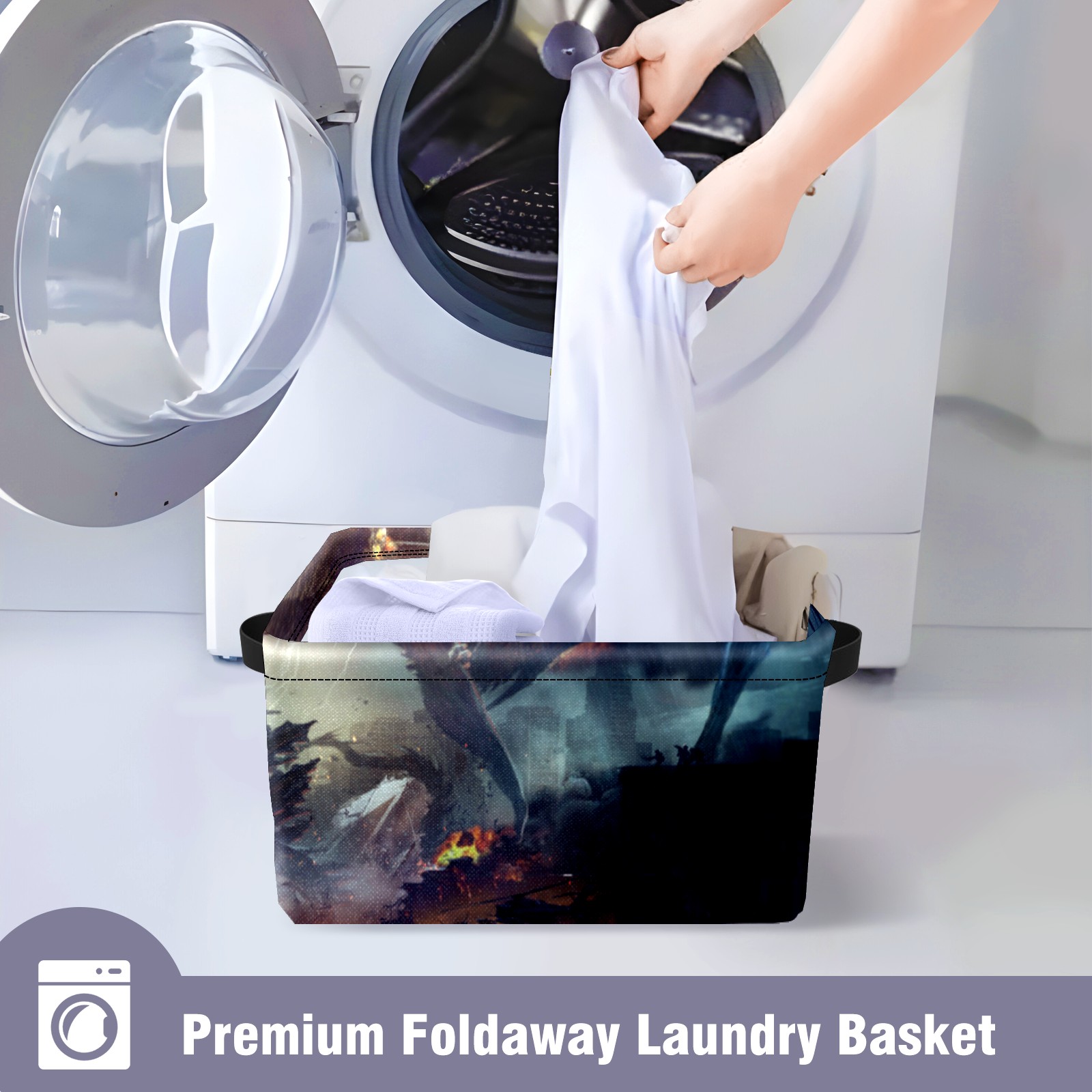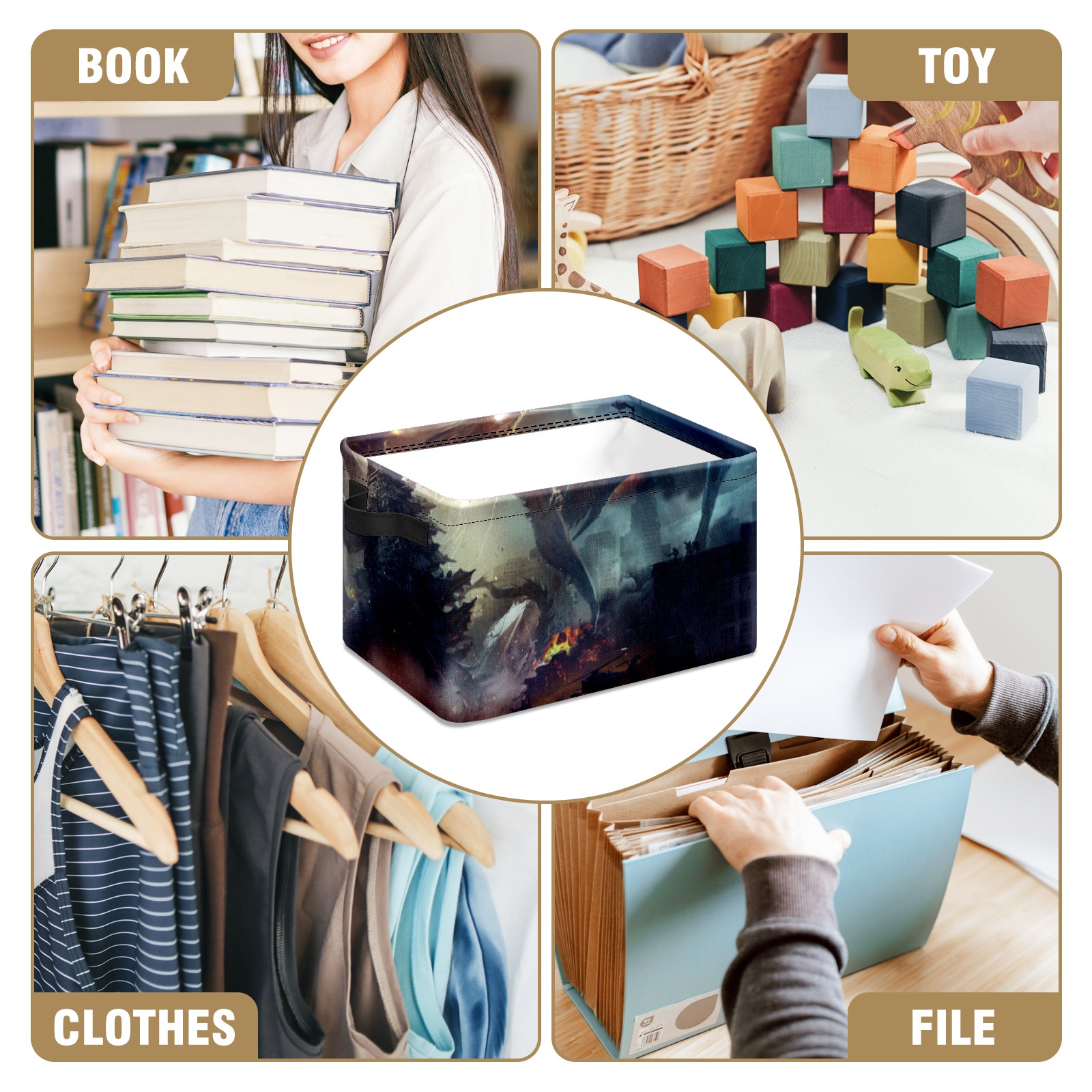 Collapsible 600D Oxford Storage Basket with Monster Dinosaur - Metal Frame 10"x14"x8" Reinforced Handles, Multi-Purpose Organizer
