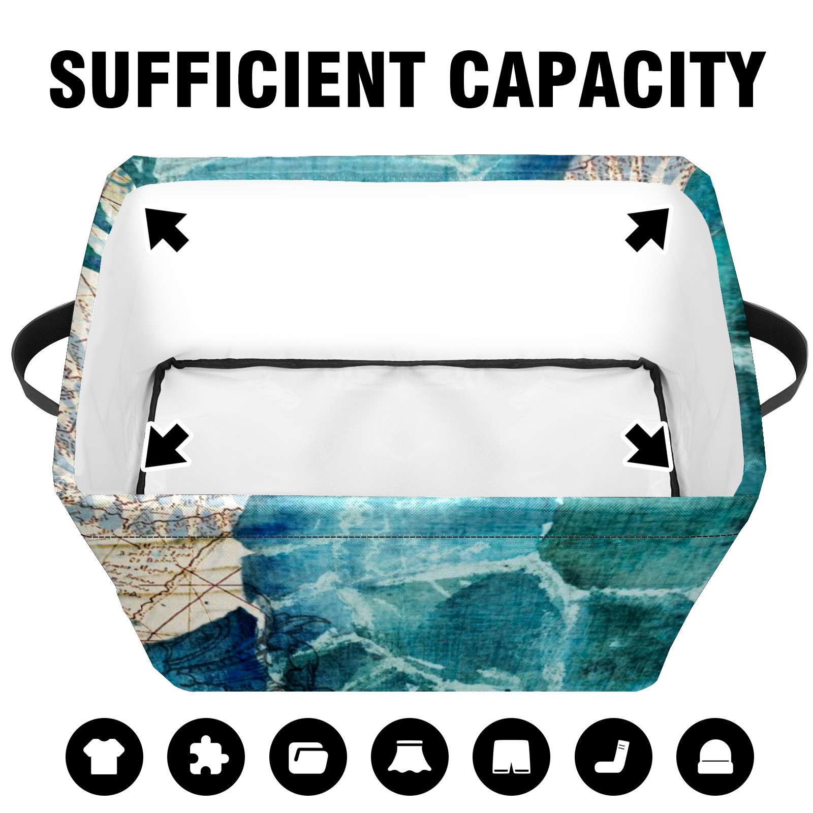 Collapsible 600D Oxford Storage Basket with Turtle Sea World - Metal Frame 10"x14"x8" Reinforced Handles, Multi-Purpose Organizer
