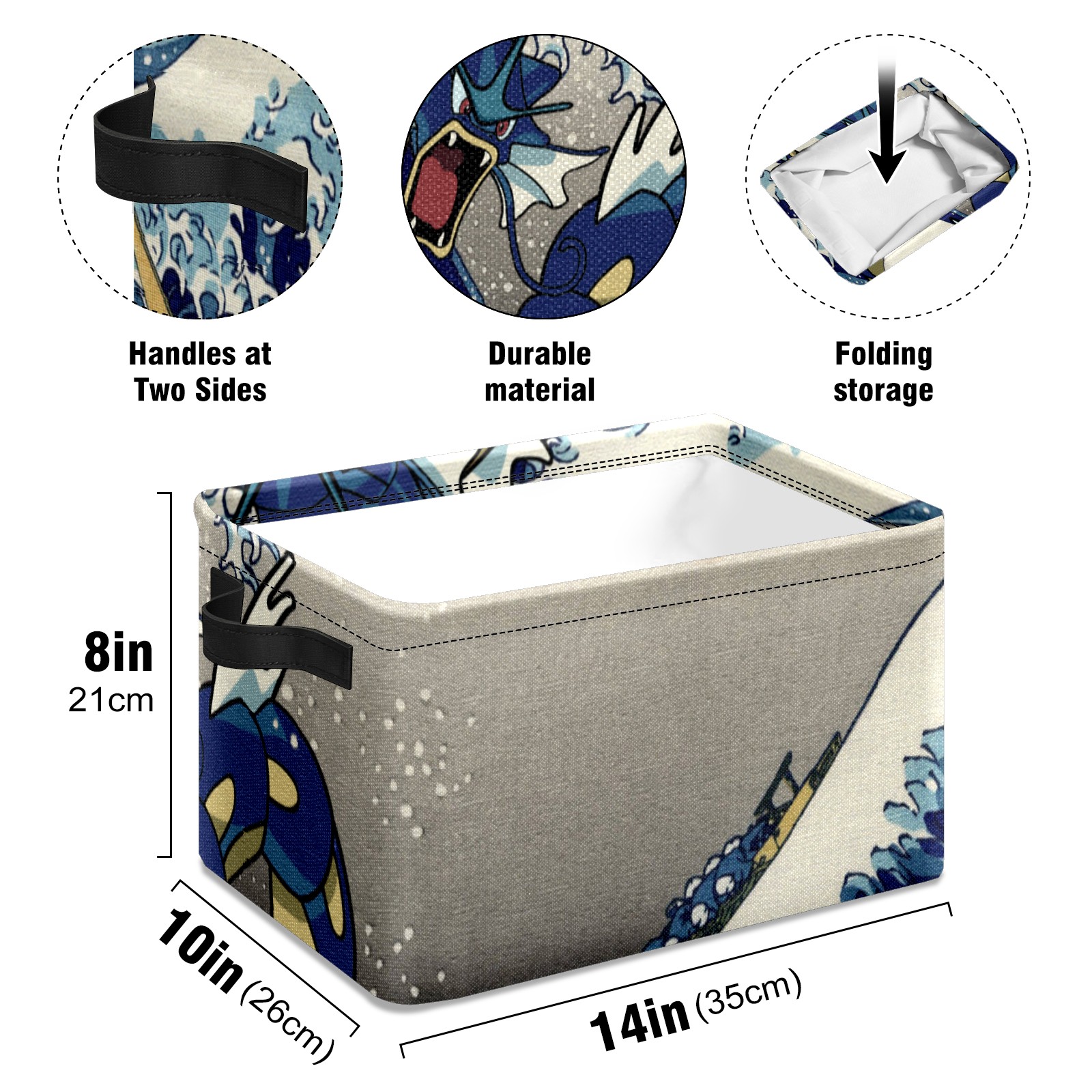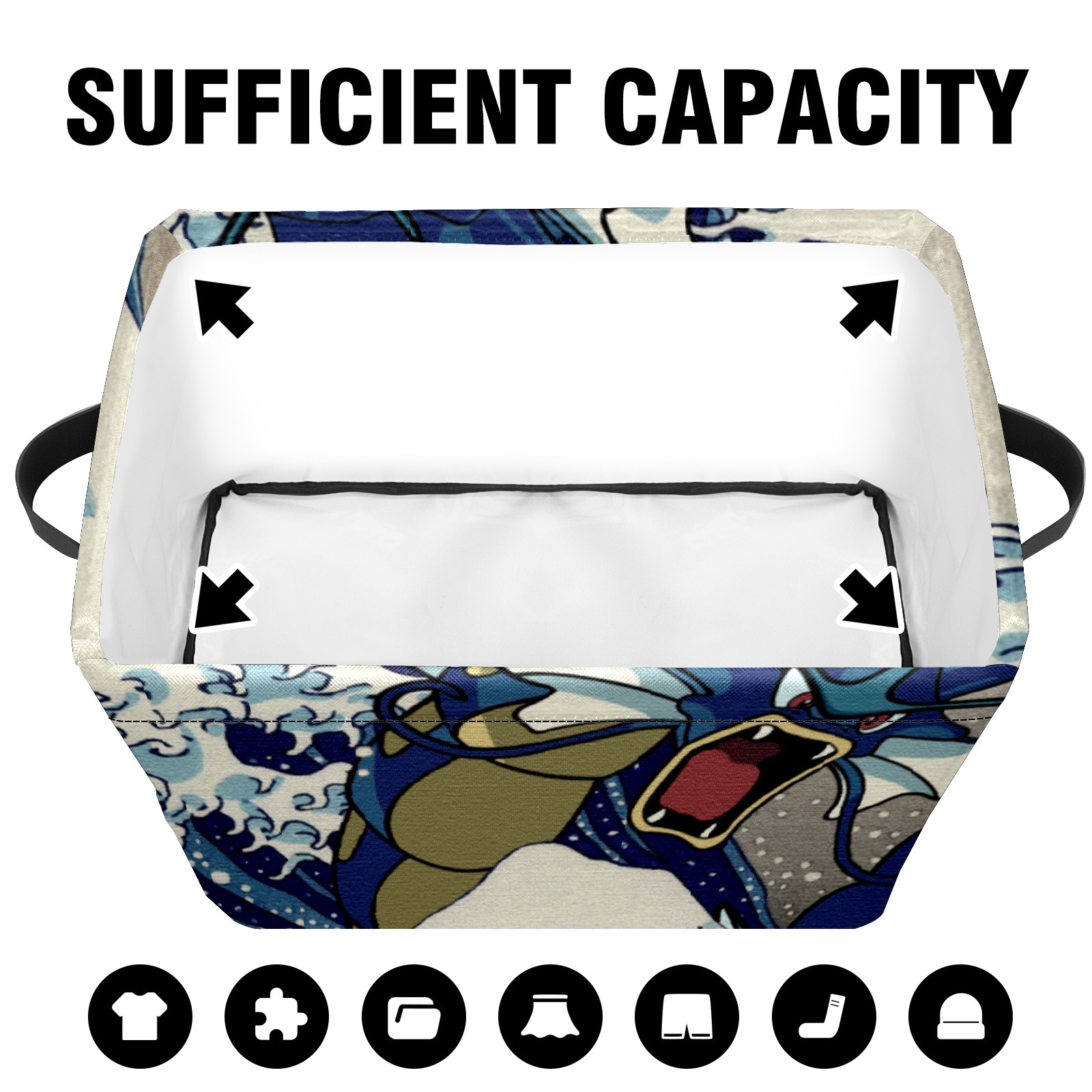 Collapsible 600D Oxford Storage Basket with Gyarados - Metal Frame 10"x14"x8" Reinforced Handles, Multi-Purpose Organizer