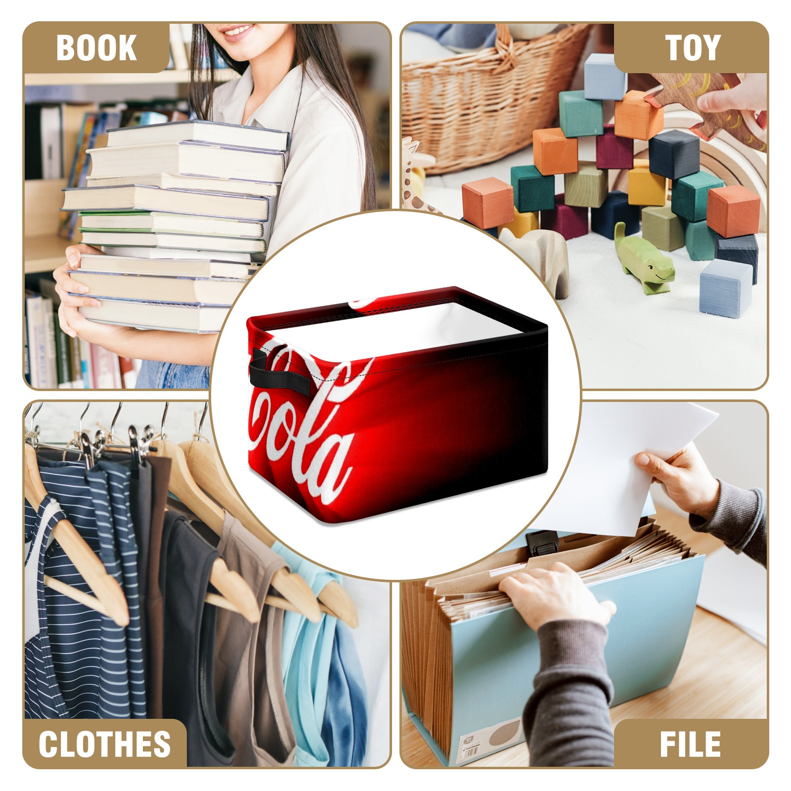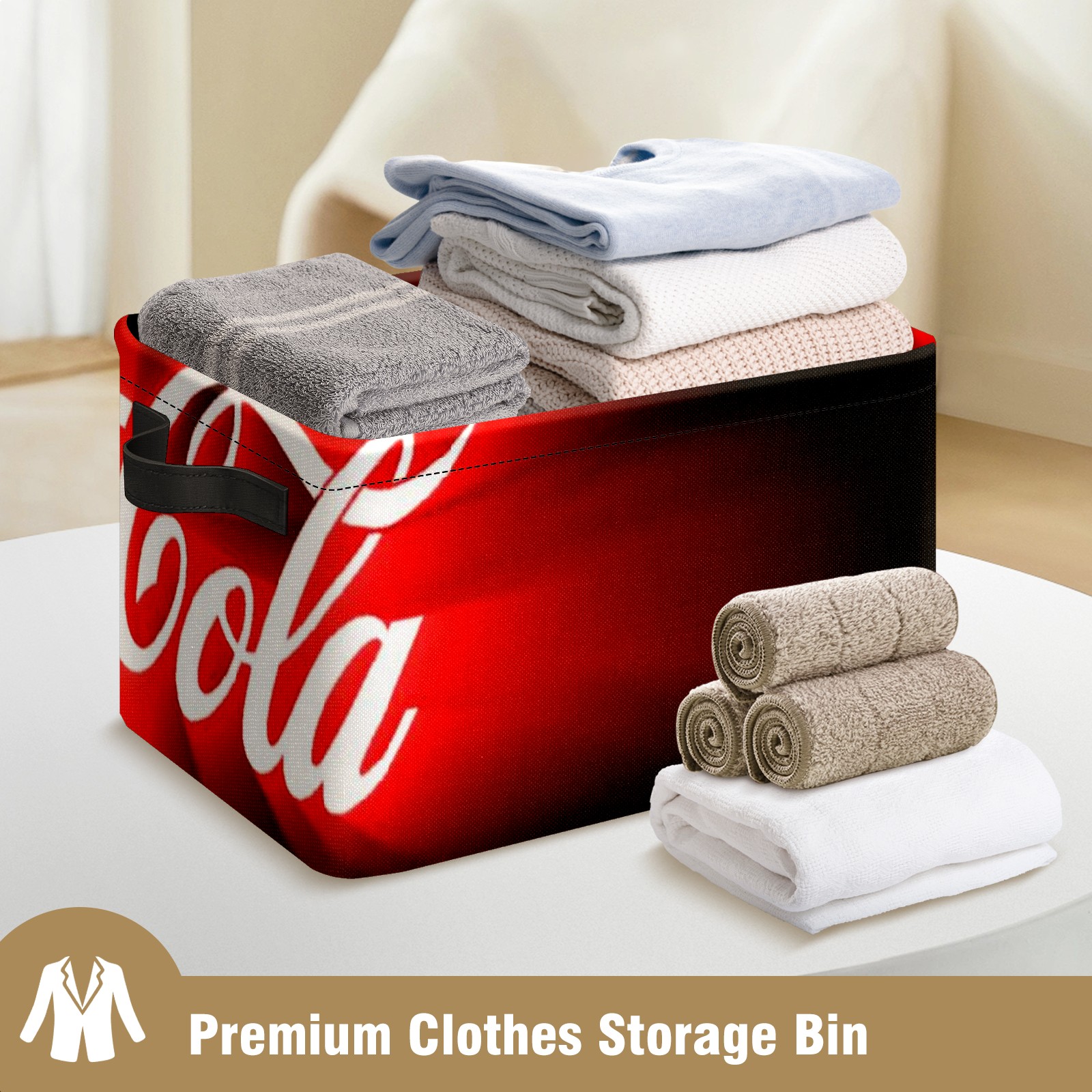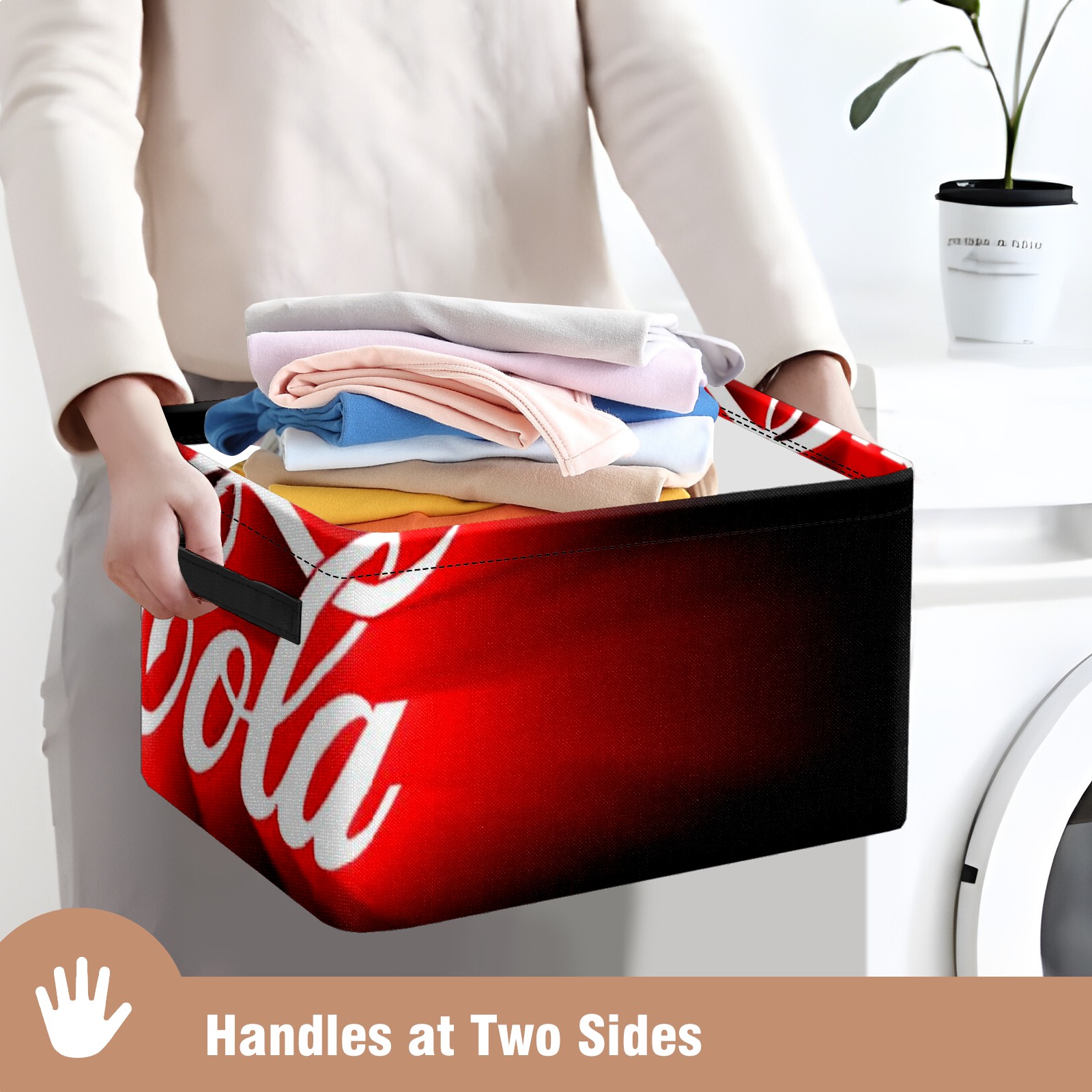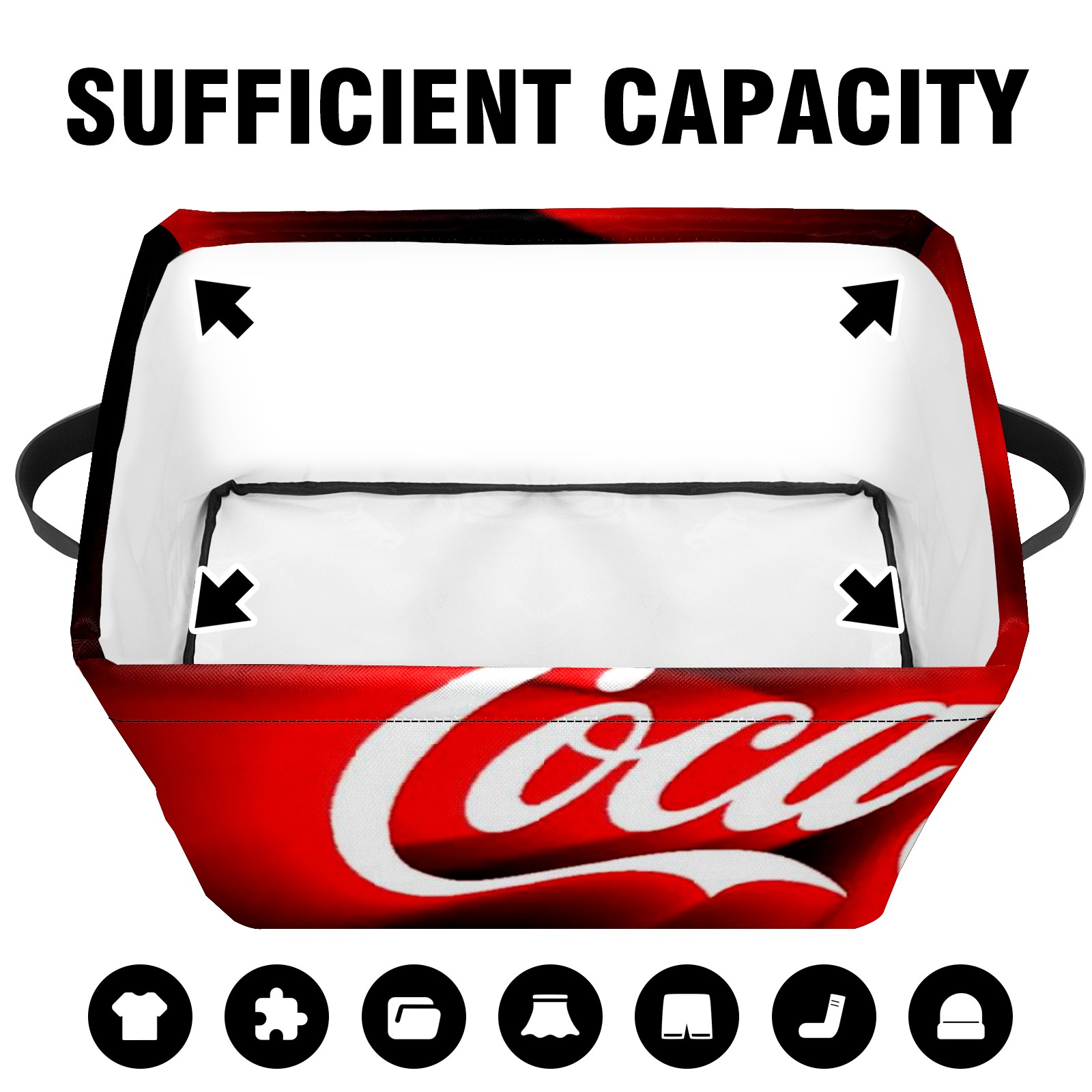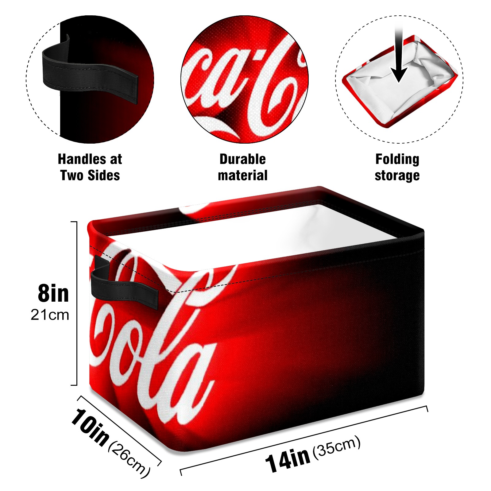 Collapsible 600D Oxford Storage Basket with Neon Coca-Cola - Metal Frame 10"x14"x8" Reinforced Handles, Multi-Purpose Organizer