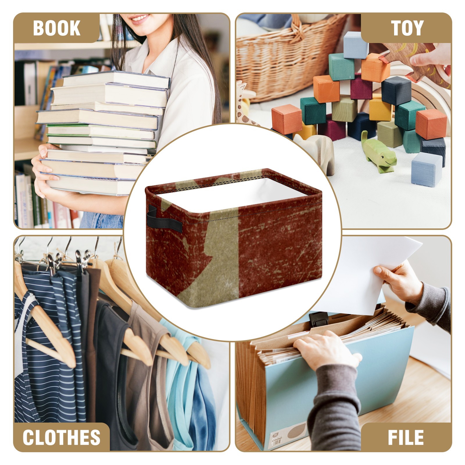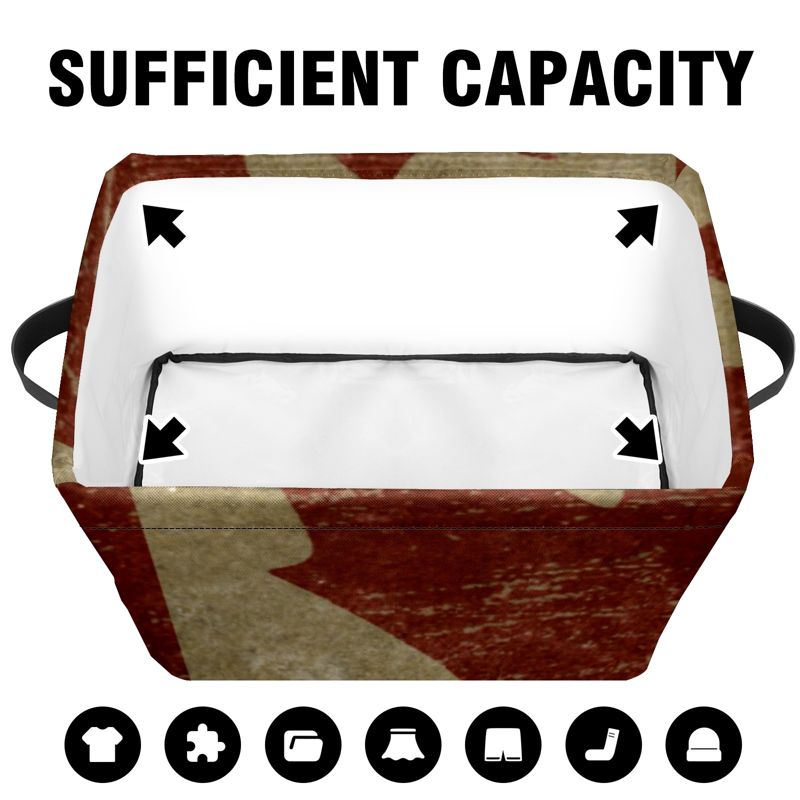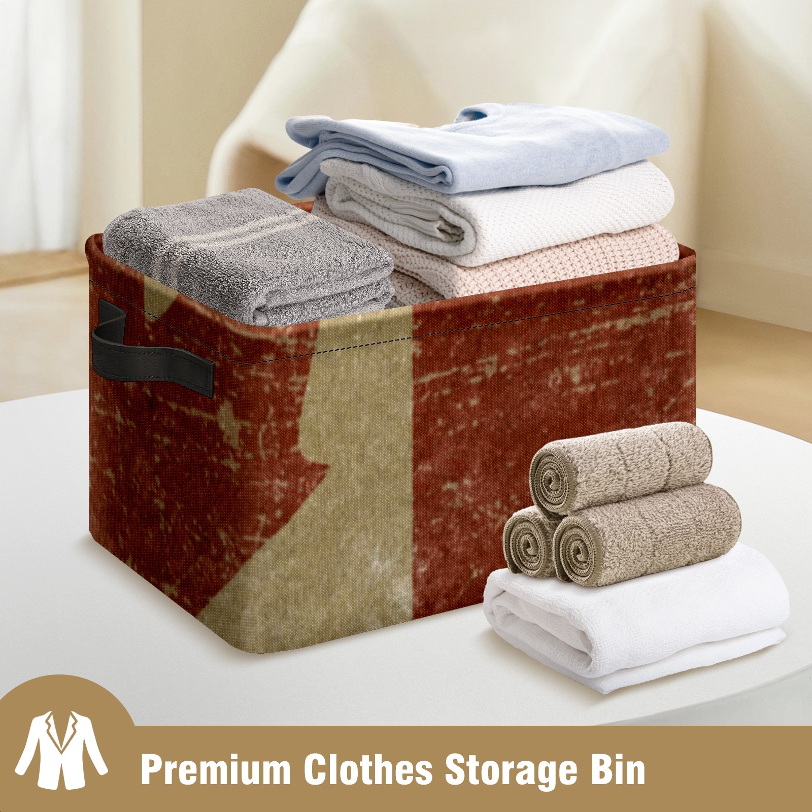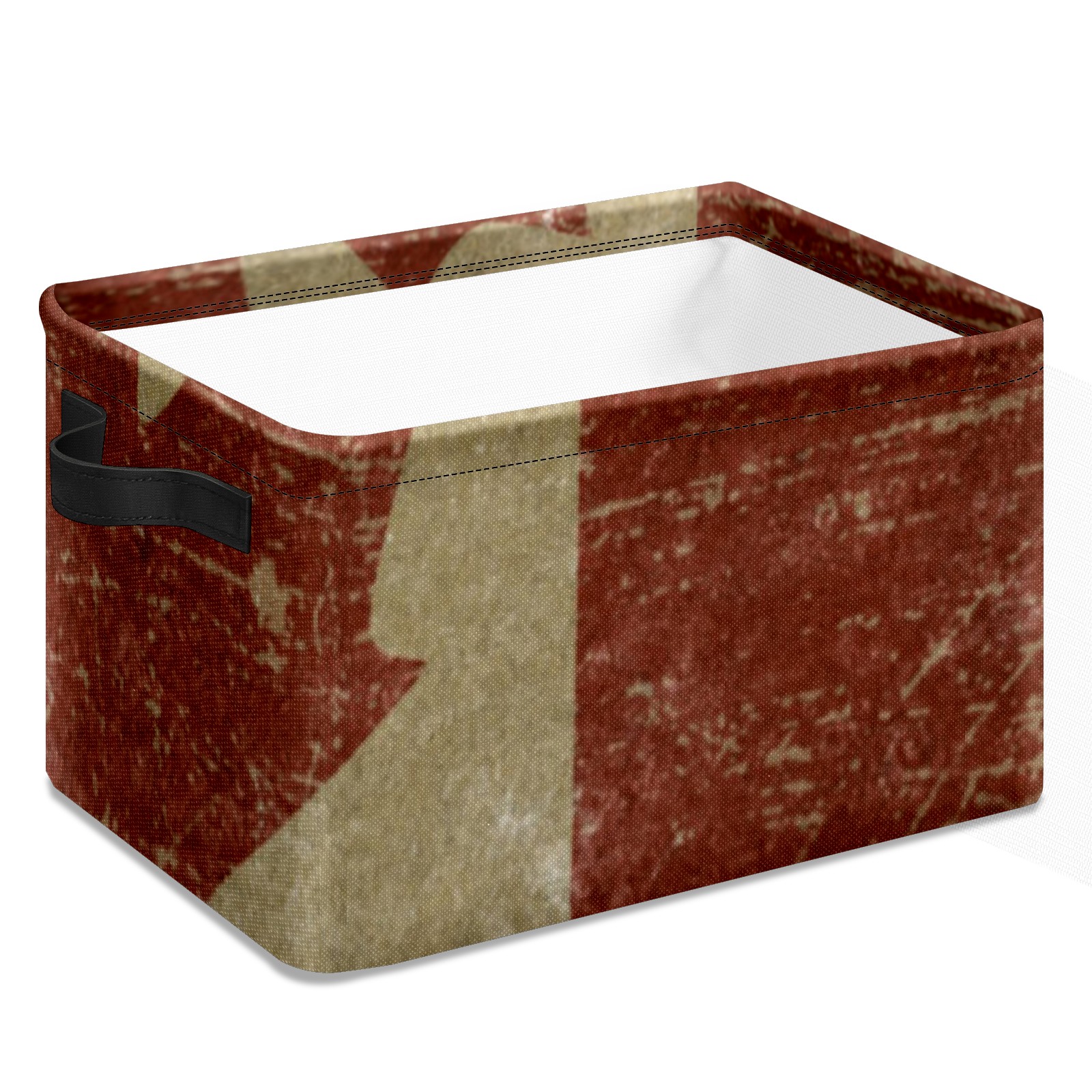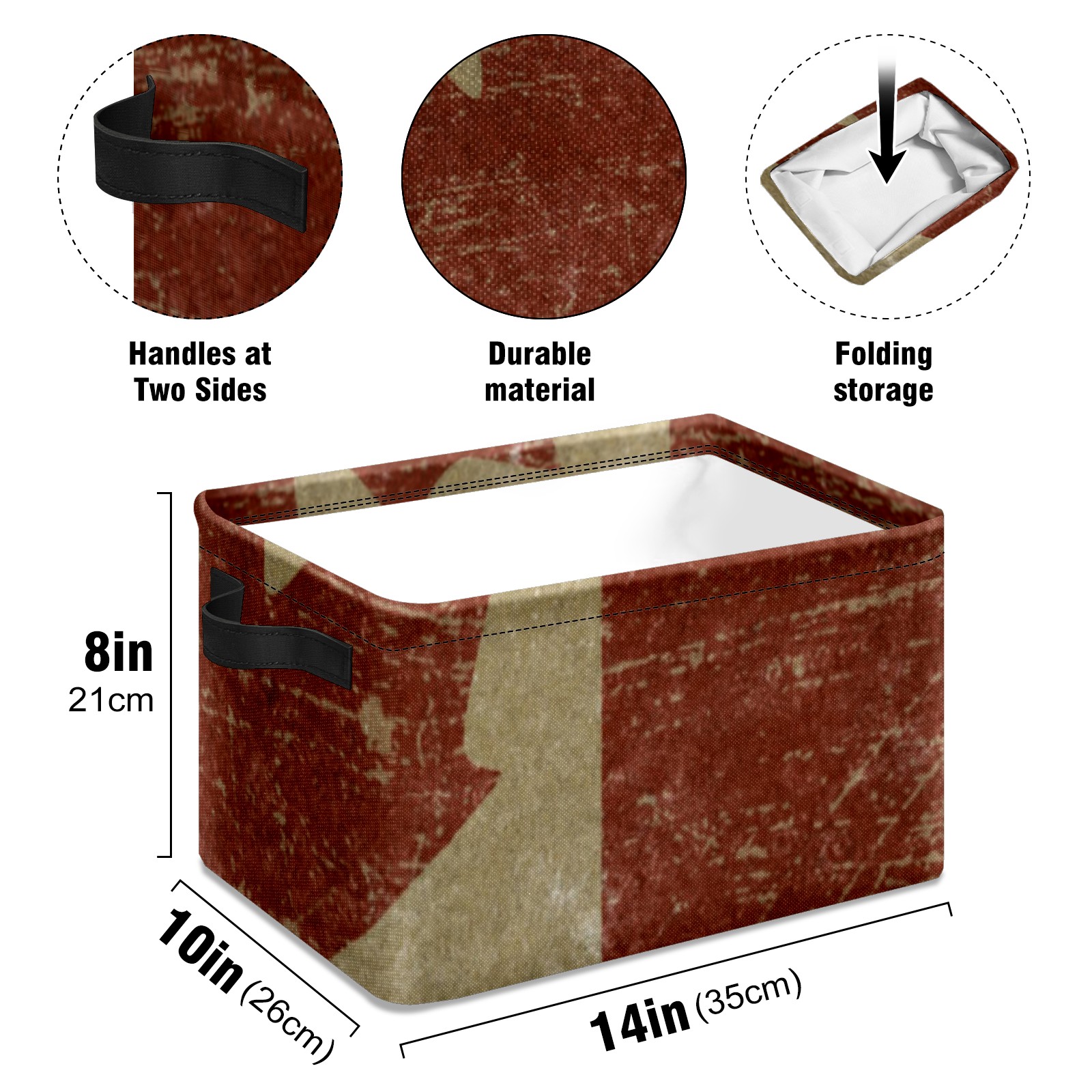 Collapsible 600D Oxford Storage Basket with Vintage Canada Flag - Metal Frame 10"x14"x8" Reinforced Handles, Multi-Purpose Organizer