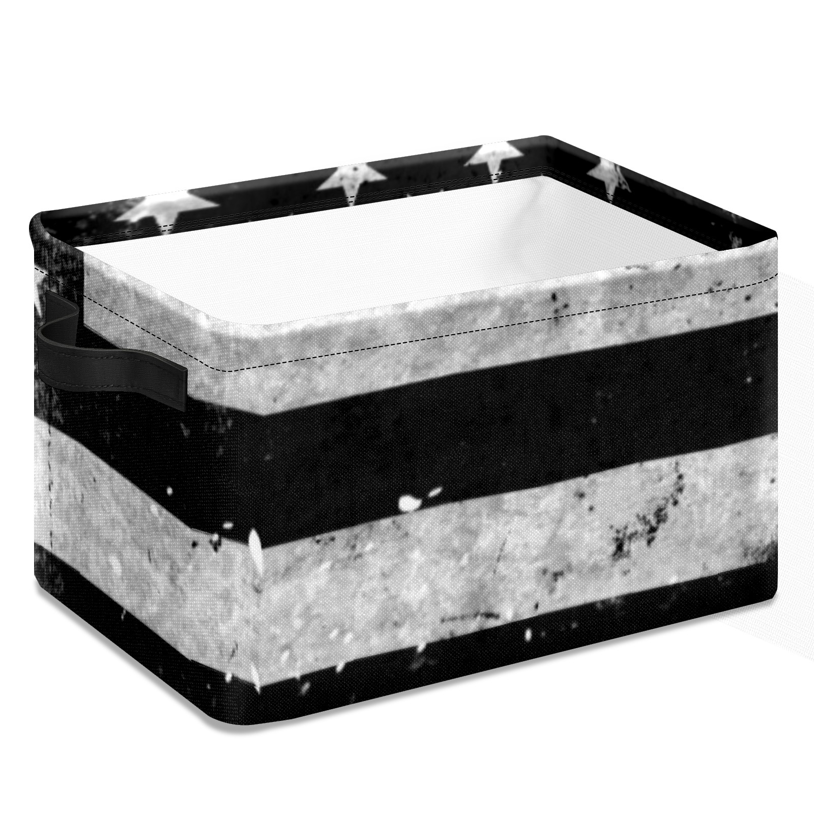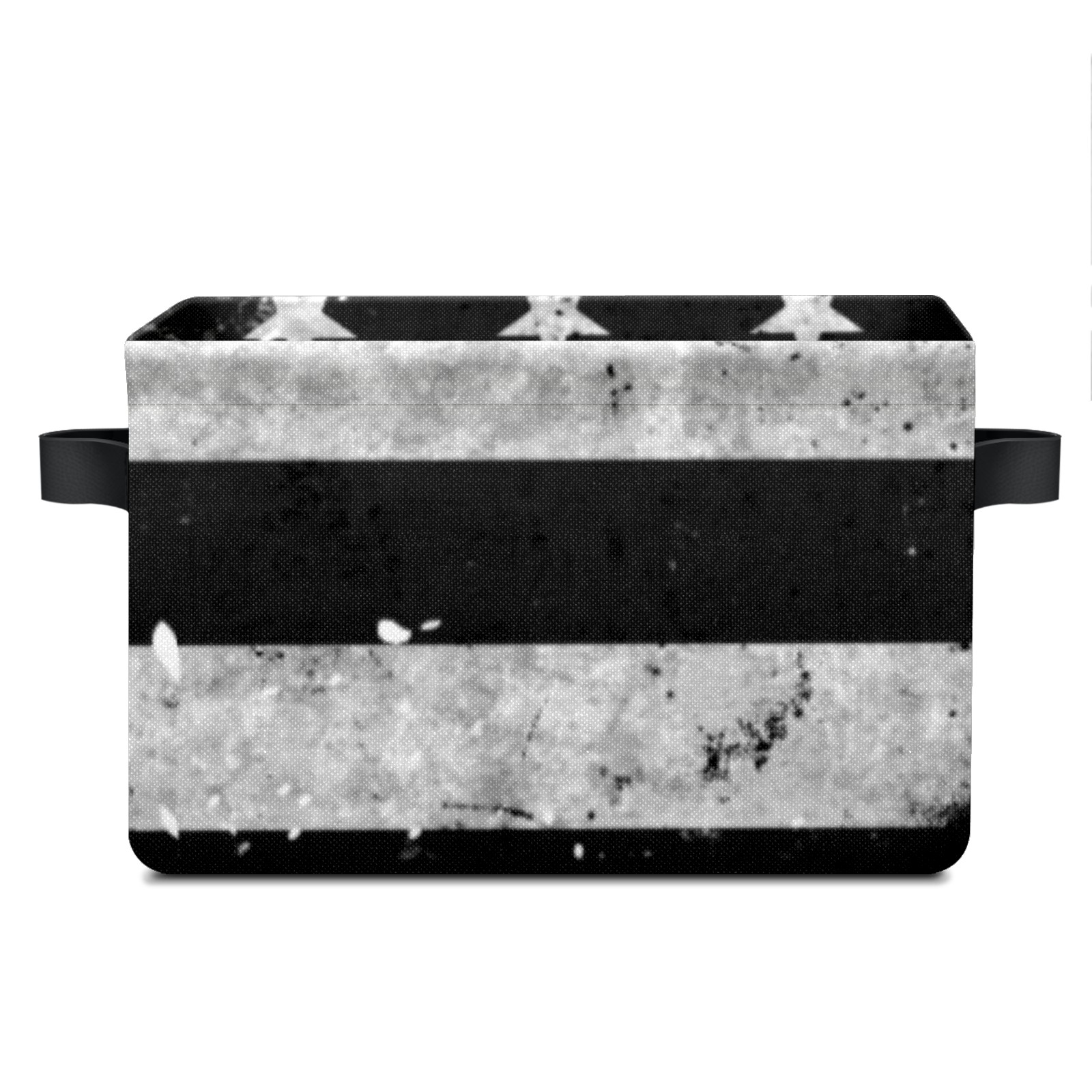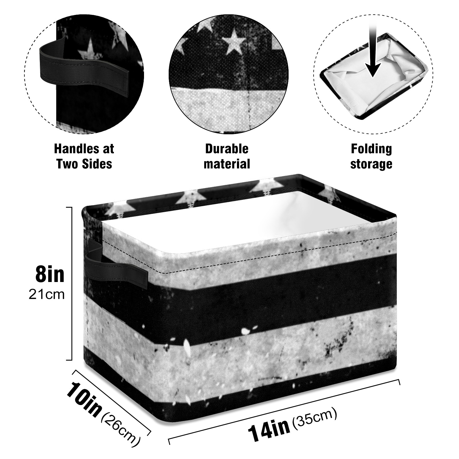 Collapsible 600D Oxford Storage Basket with Black White Grunge American Flag - Metal Frame 10"x14"x8" Reinforced Handles, Multi-Purpose Organizer