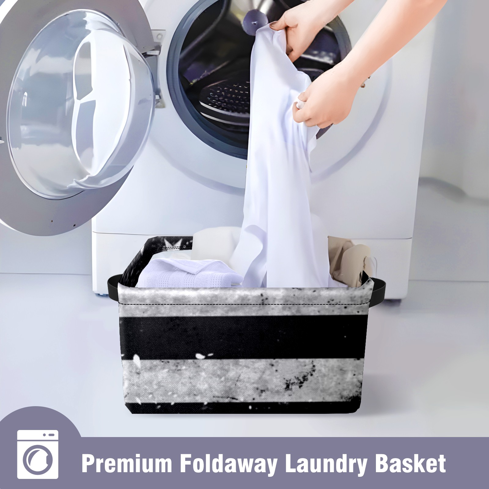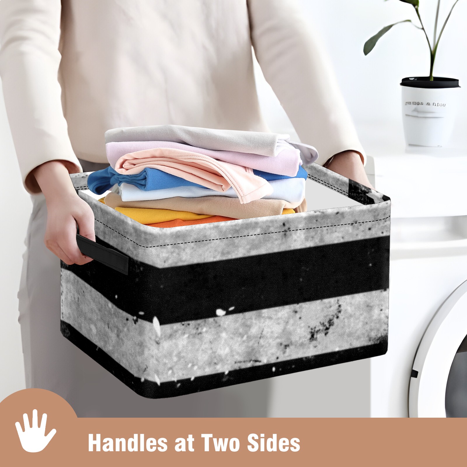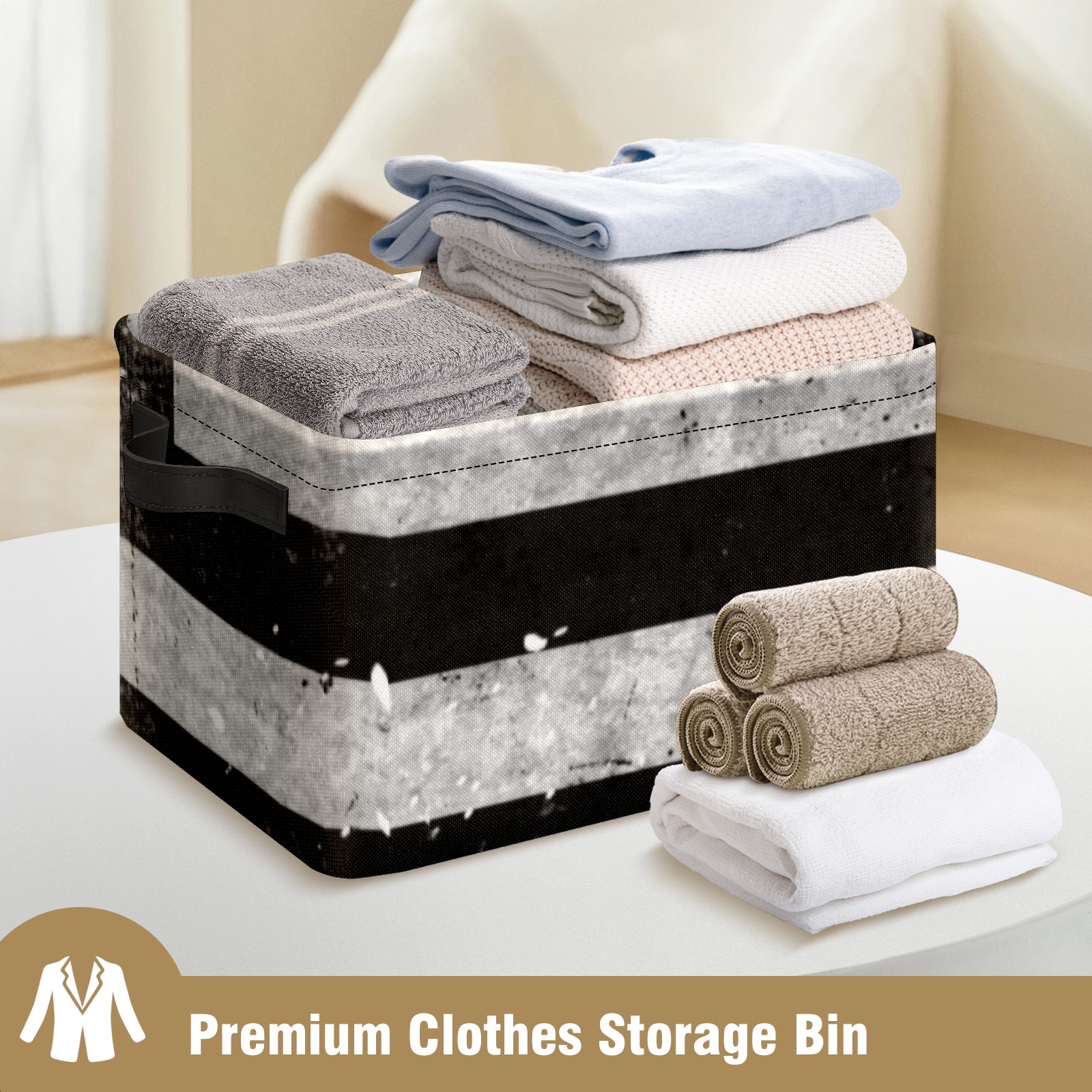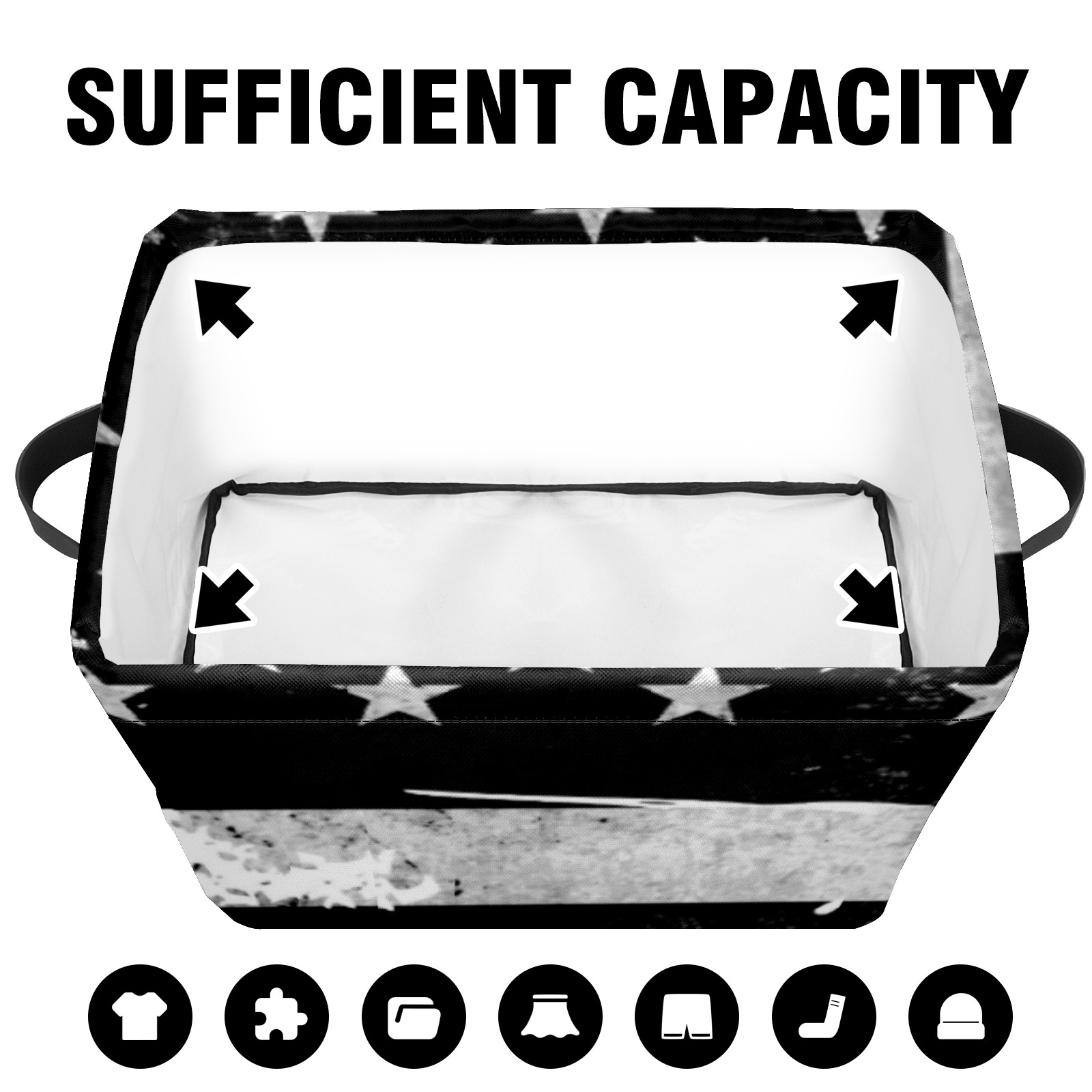 Collapsible 600D Oxford Storage Basket with Black White Grunge American Flag - Metal Frame 10"x14"x8" Reinforced Handles, Multi-Purpose Organizer