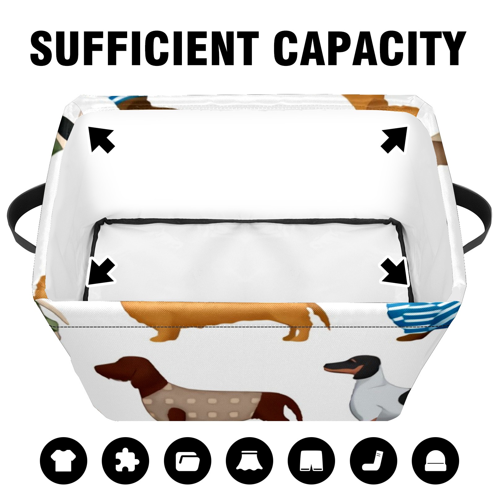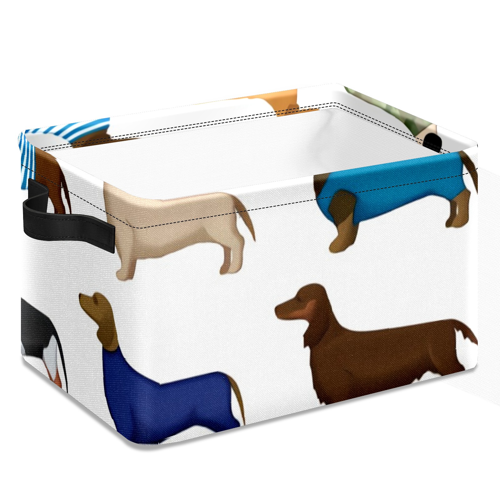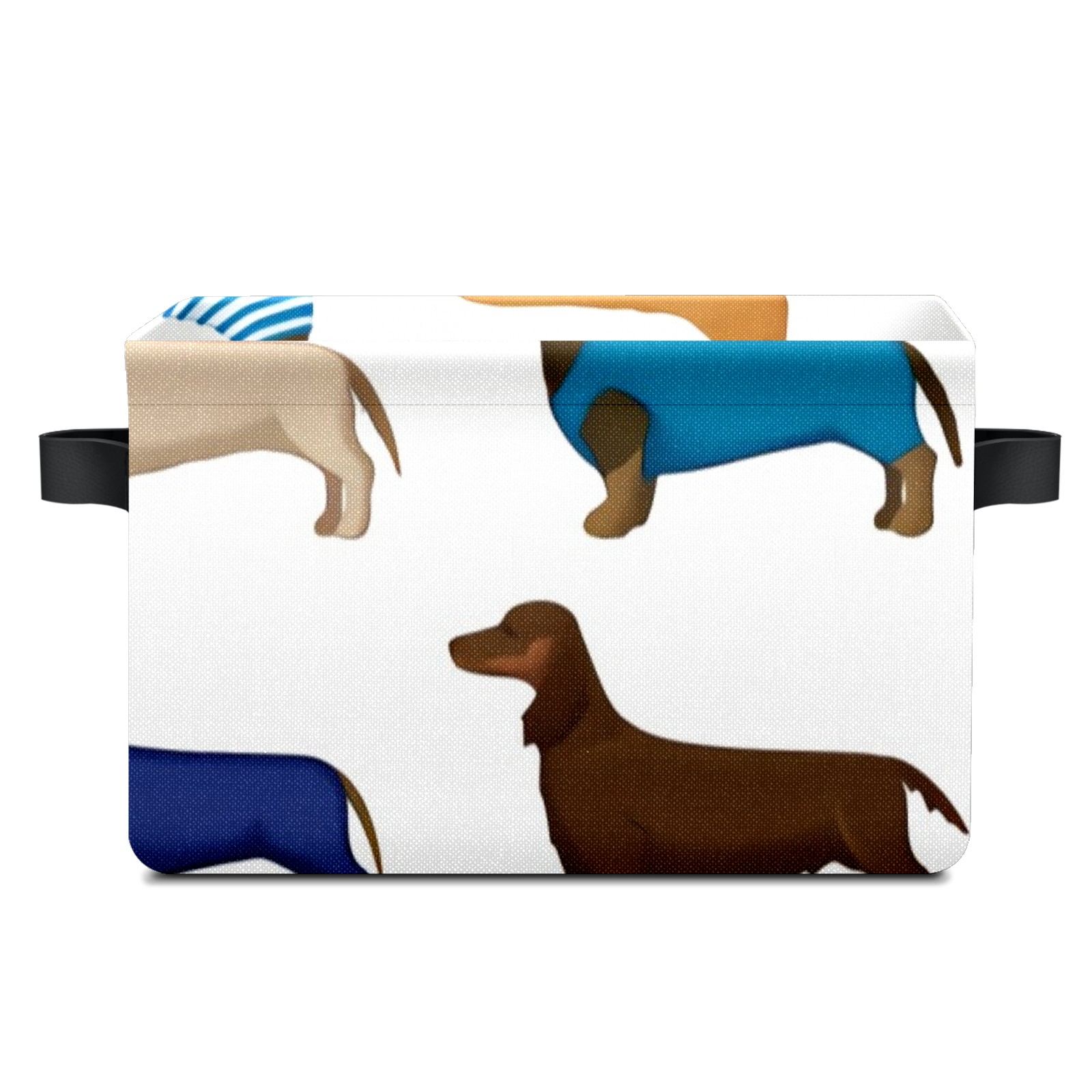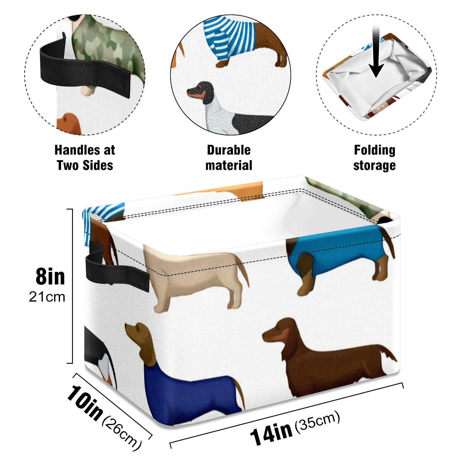 Collapsible 600D Oxford Storage Basket with Dachshund Cartoon Dog - Metal Frame 10"x14"x8" Reinforced Handles, Multi-Purpose Organizer
