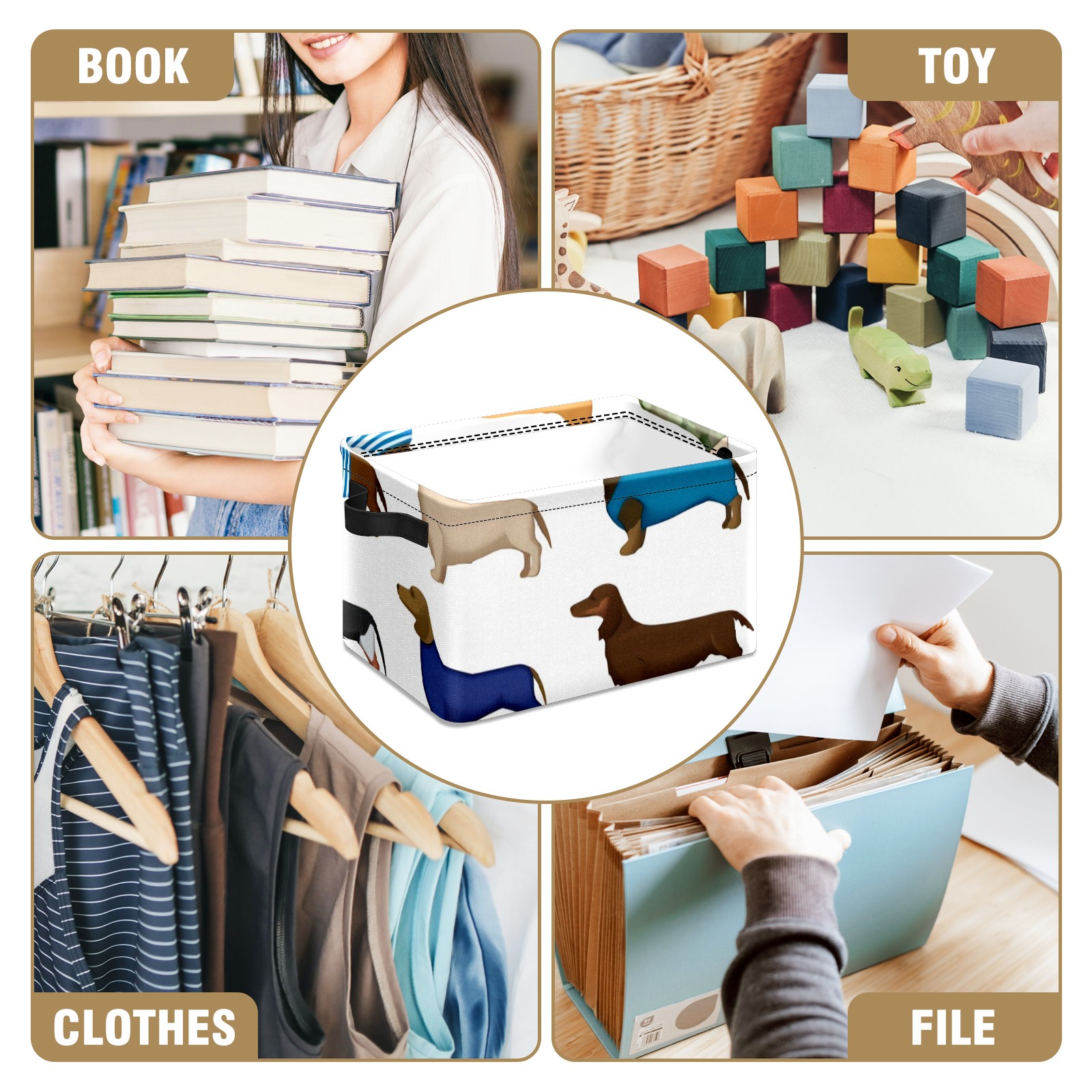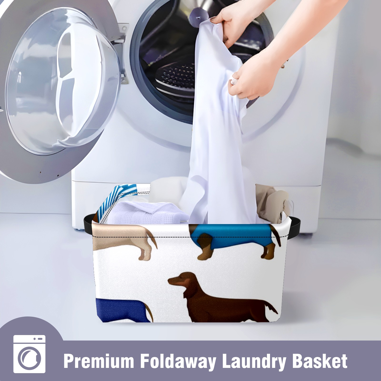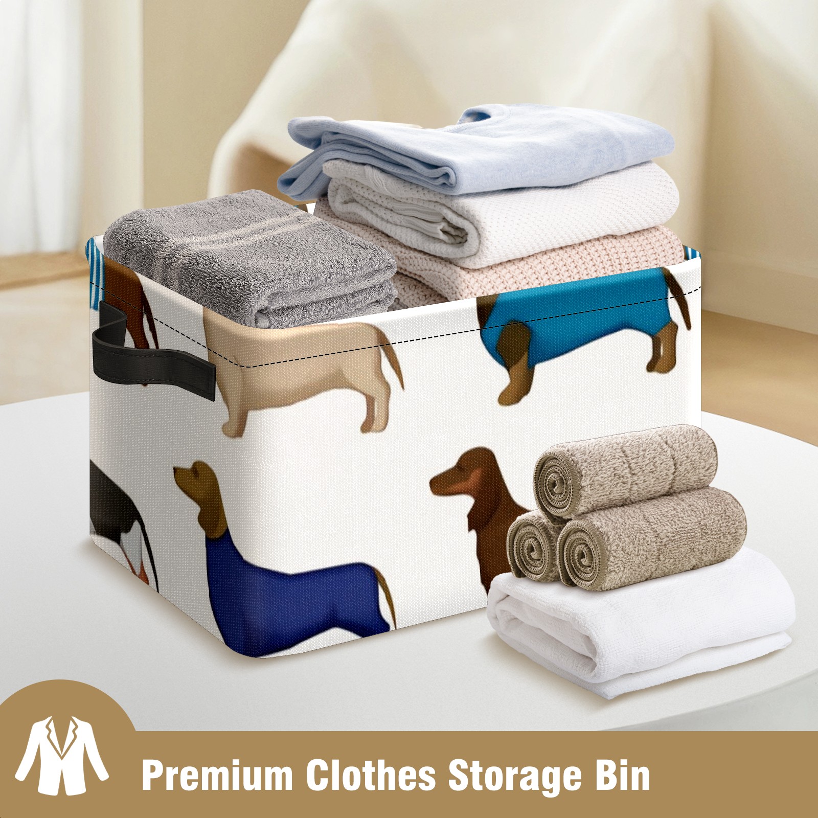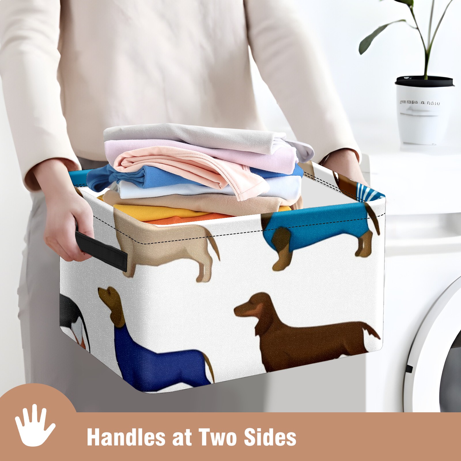Collapsible 600D Oxford Storage Basket with Dachshund Cartoon Dog - Metal Frame 10"x14"x8" Reinforced Handles, Multi-Purpose Organizer