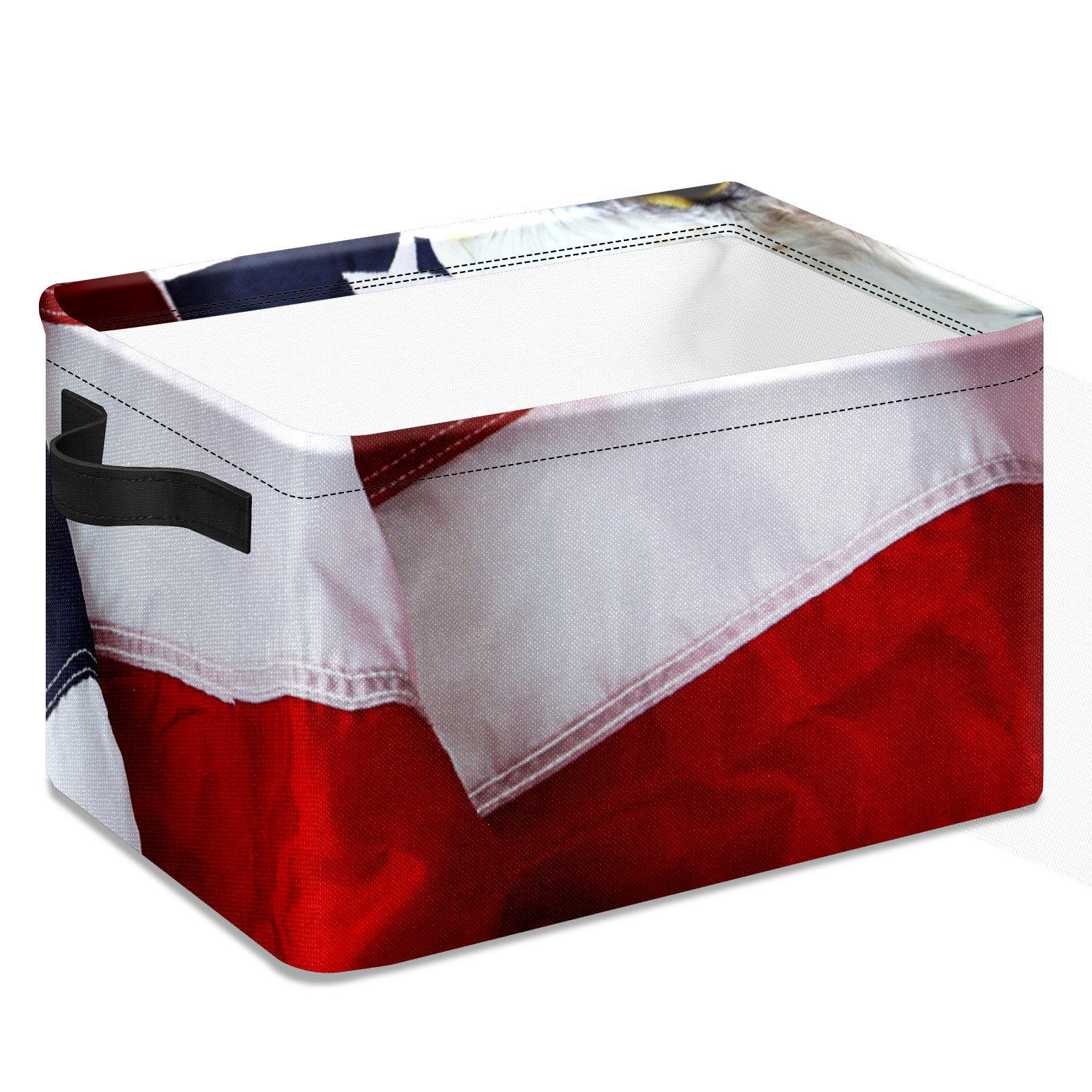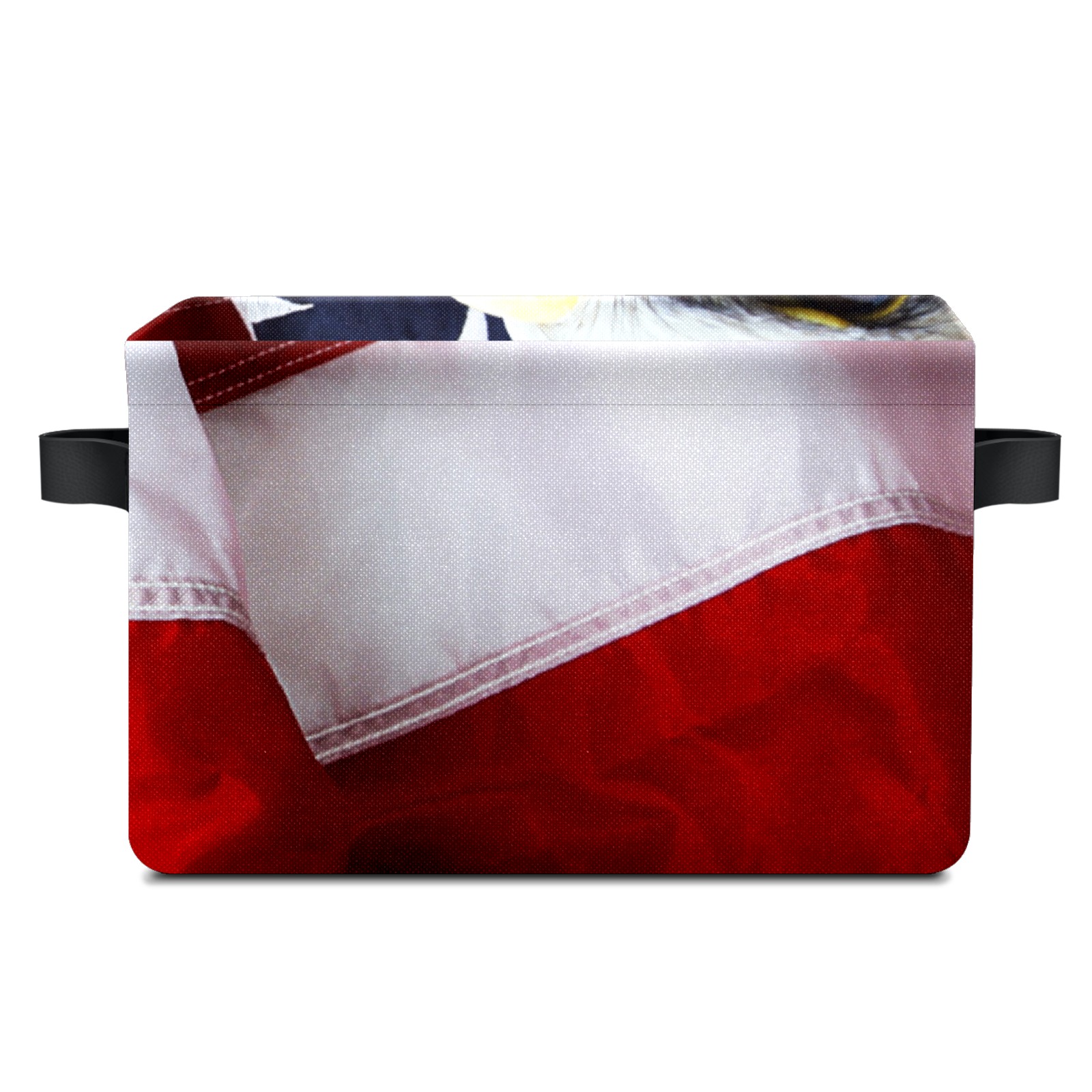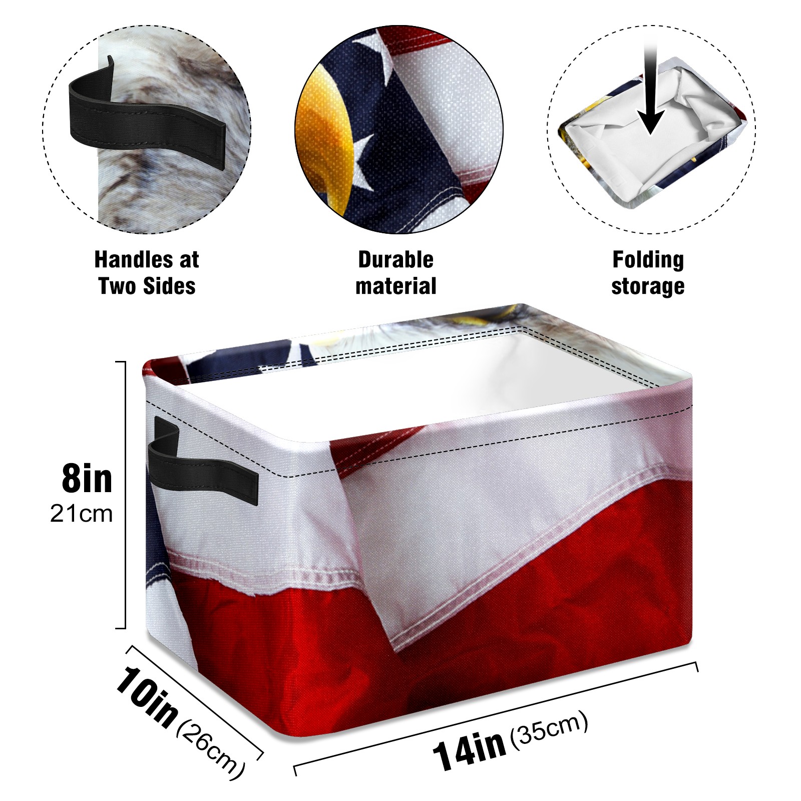 Collapsible 600D Oxford Storage Basket with Independence USA American Flag Bald Eagle - Metal Frame 10"x14"x8" Reinforced Handles, Multi-Purpose Organizer