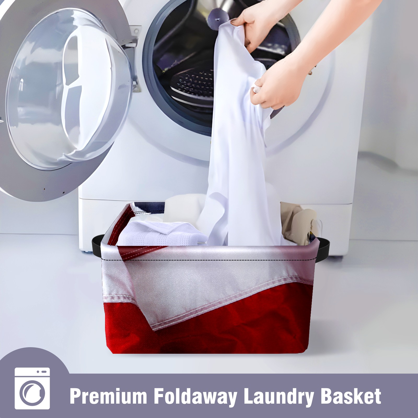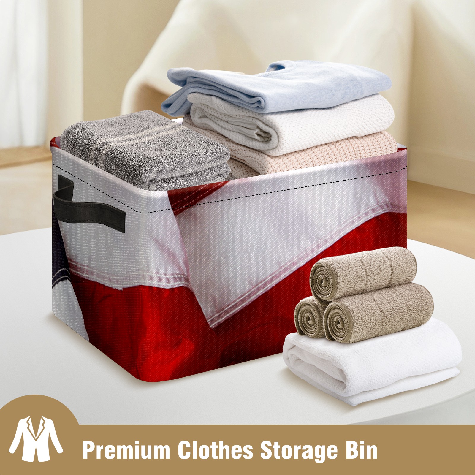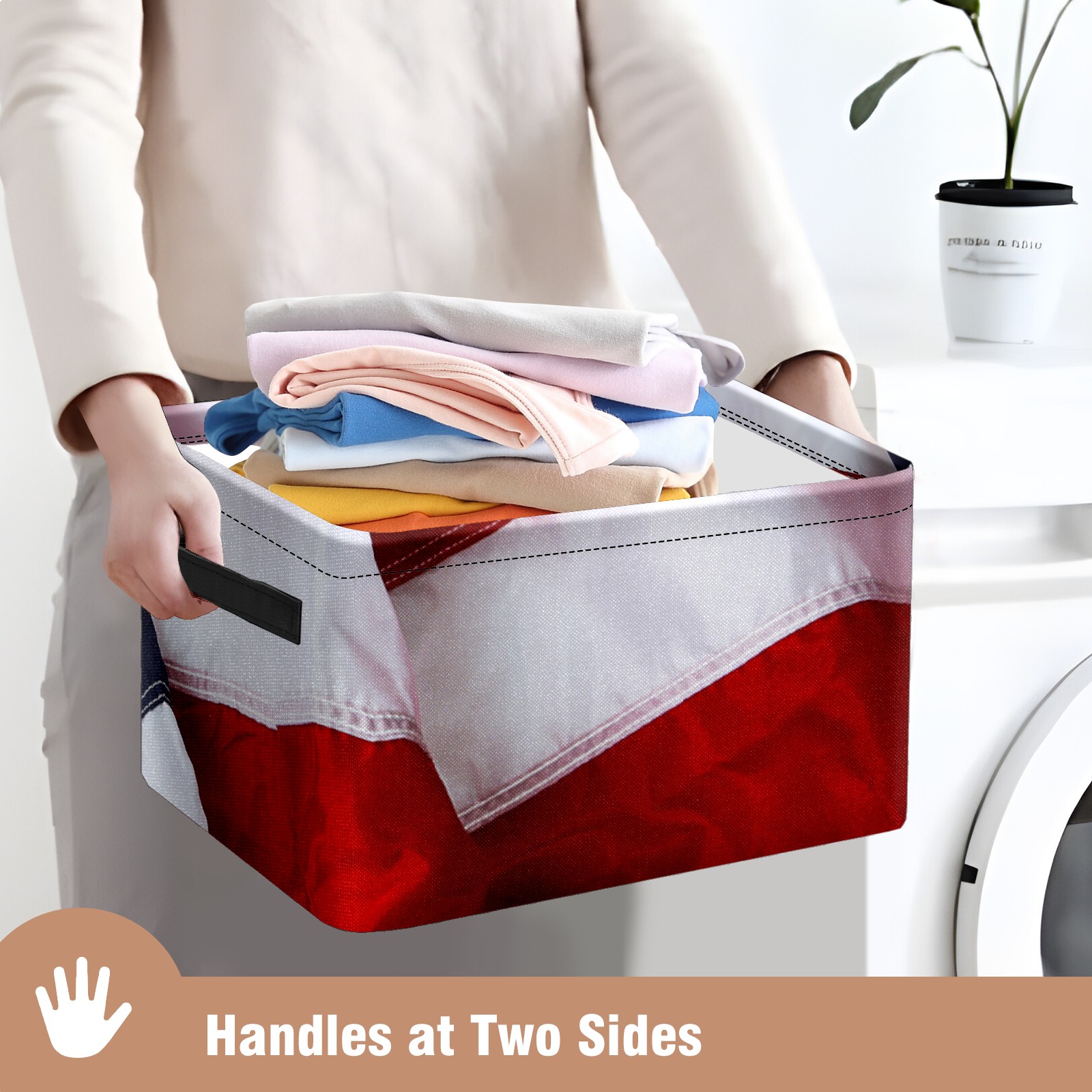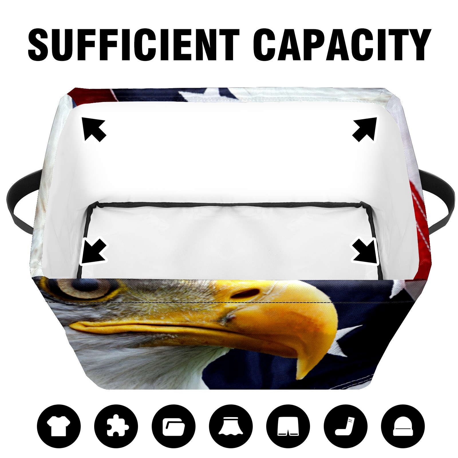 Collapsible 600D Oxford Storage Basket with Independence USA American Flag Bald Eagle - Metal Frame 10"x14"x8" Reinforced Handles, Multi-Purpose Organizer