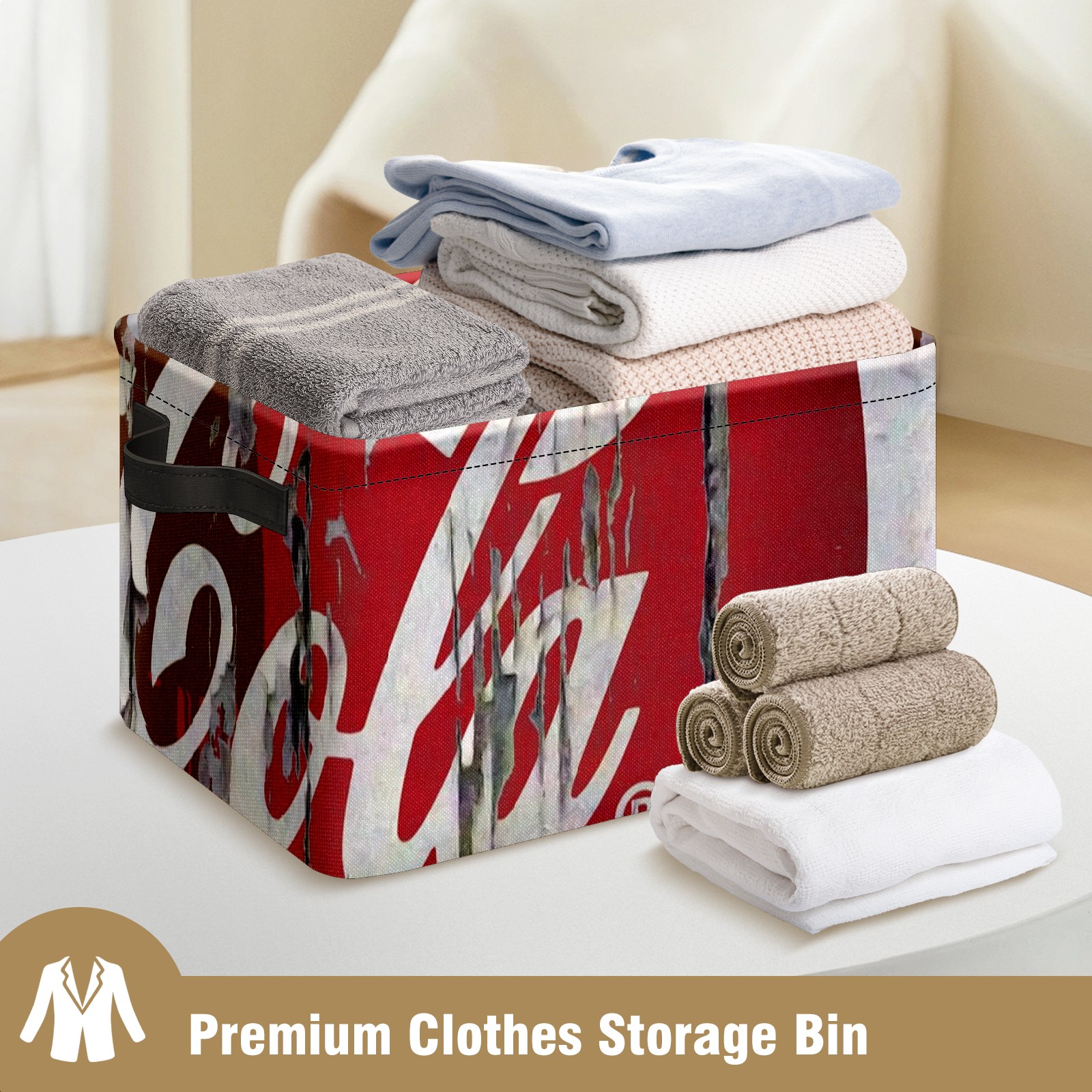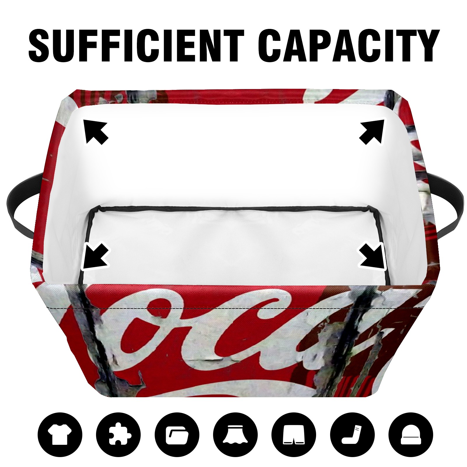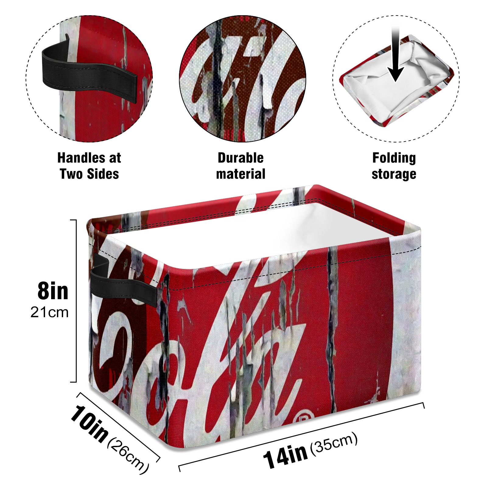 Collapsible 600D Oxford Storage Basket with OK Vintage Retro Style Coca Cola - Metal Frame 10"x14"x8" Reinforced Handles, Multi-Purpose Organizer