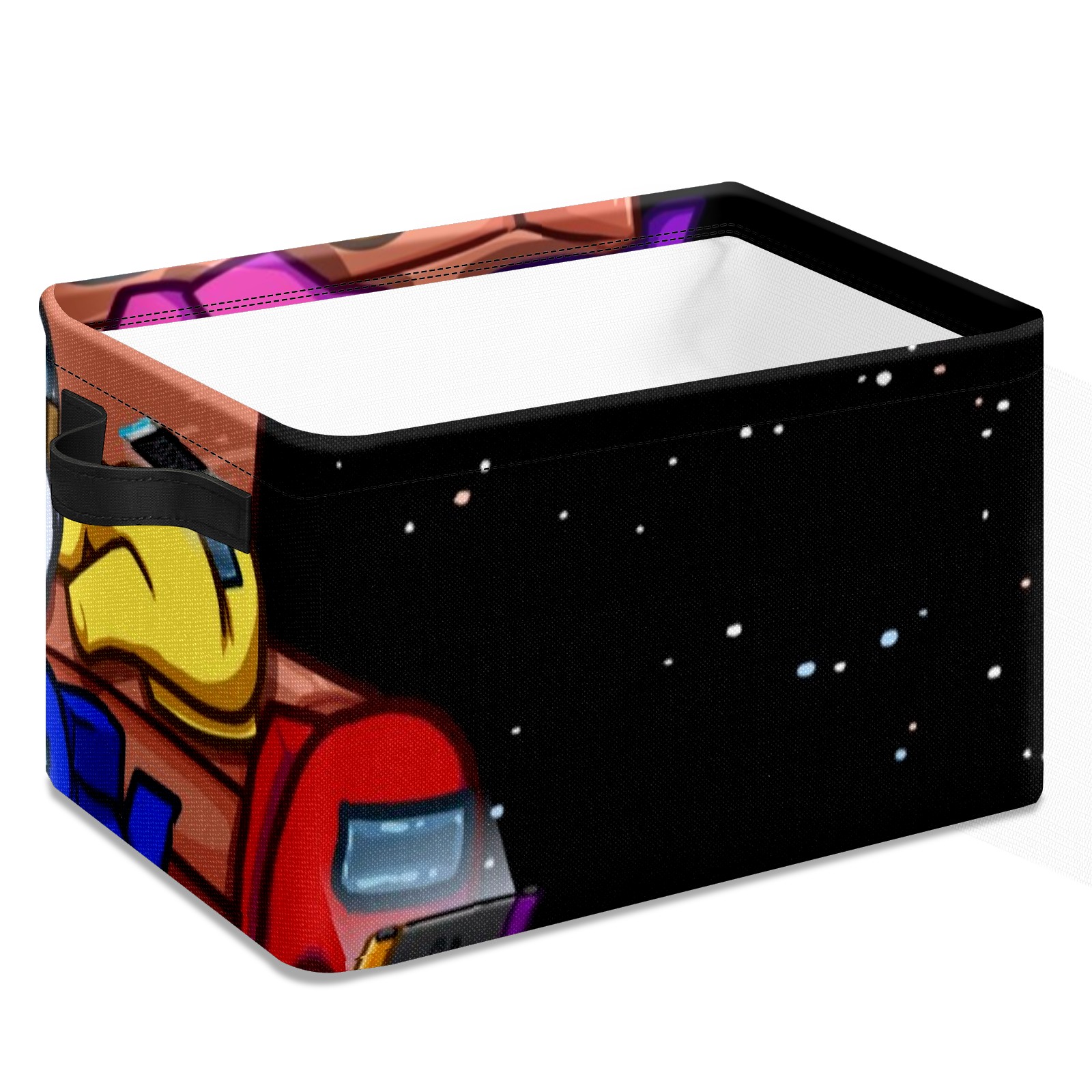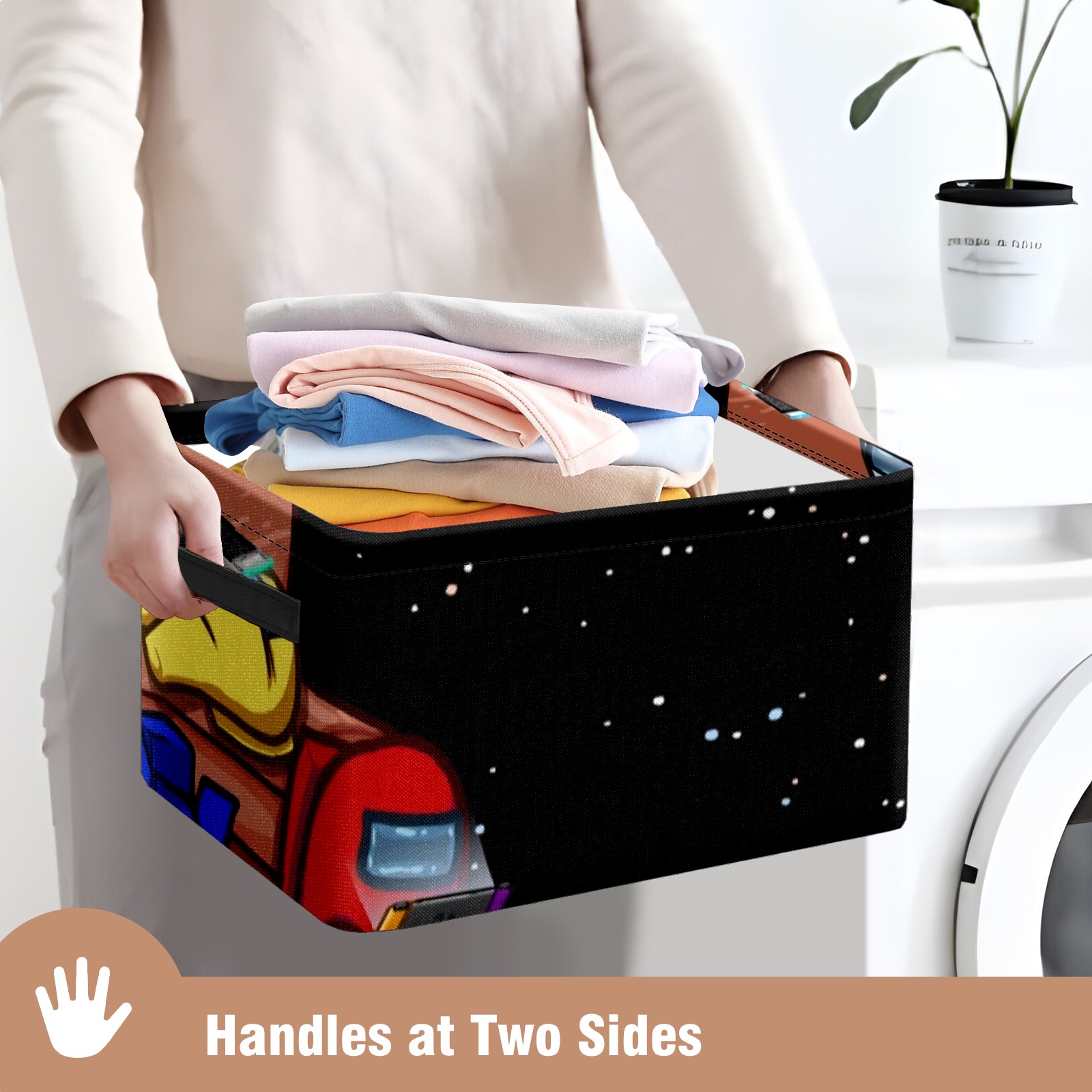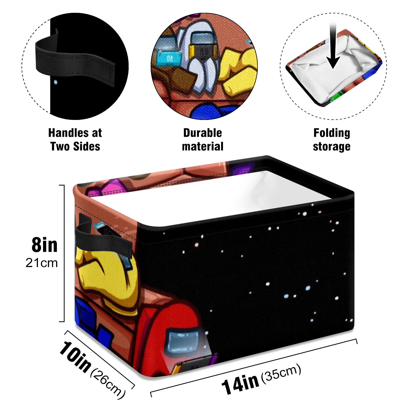 Collapsible 600D Oxford Storage Basket with Among-us Character - Metal Frame 10"x14"x8" Reinforced Handles, Multi-Purpose Organizer