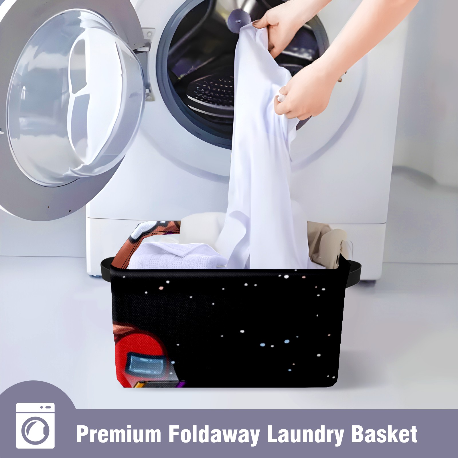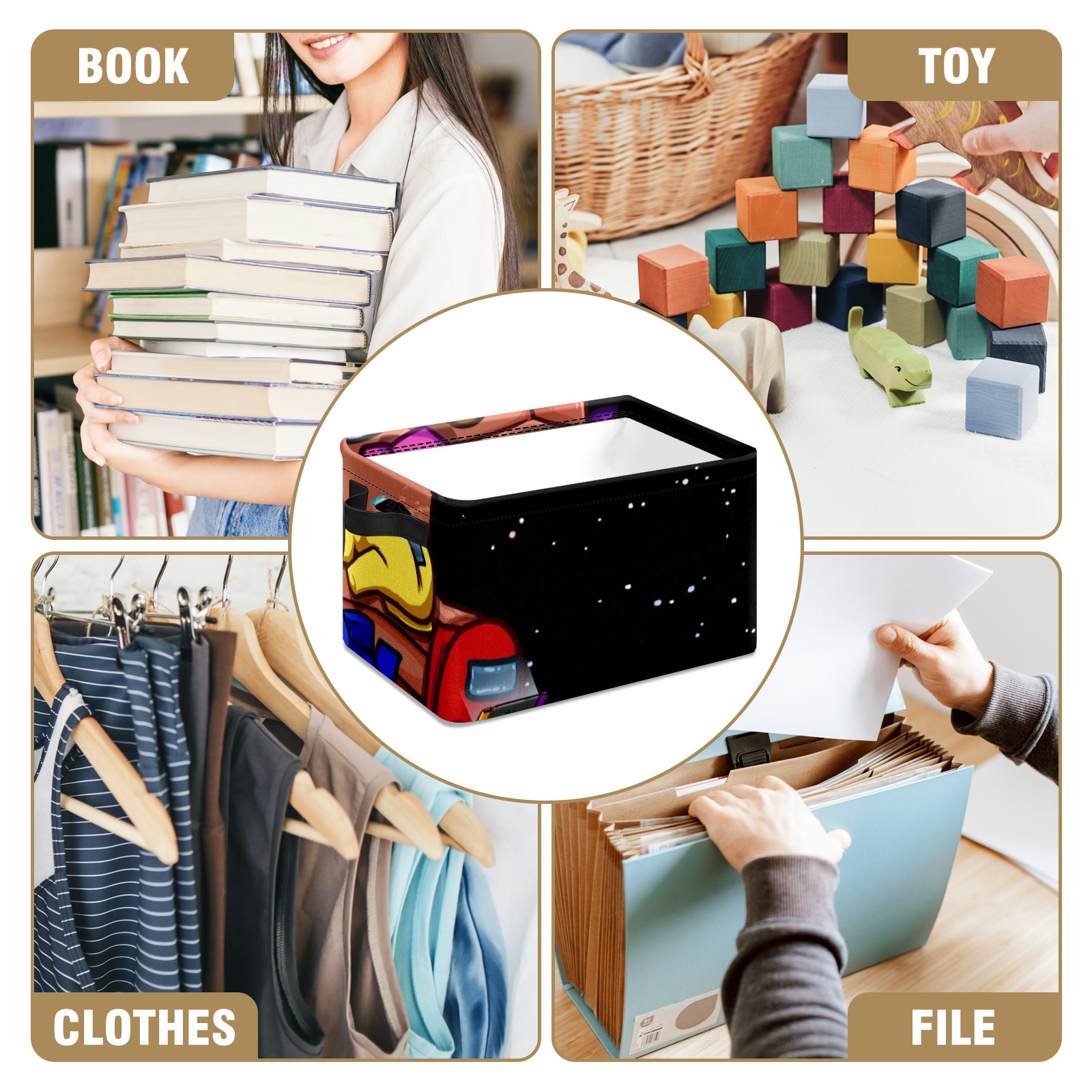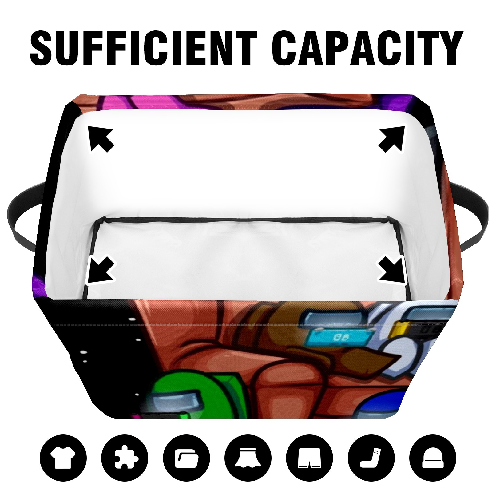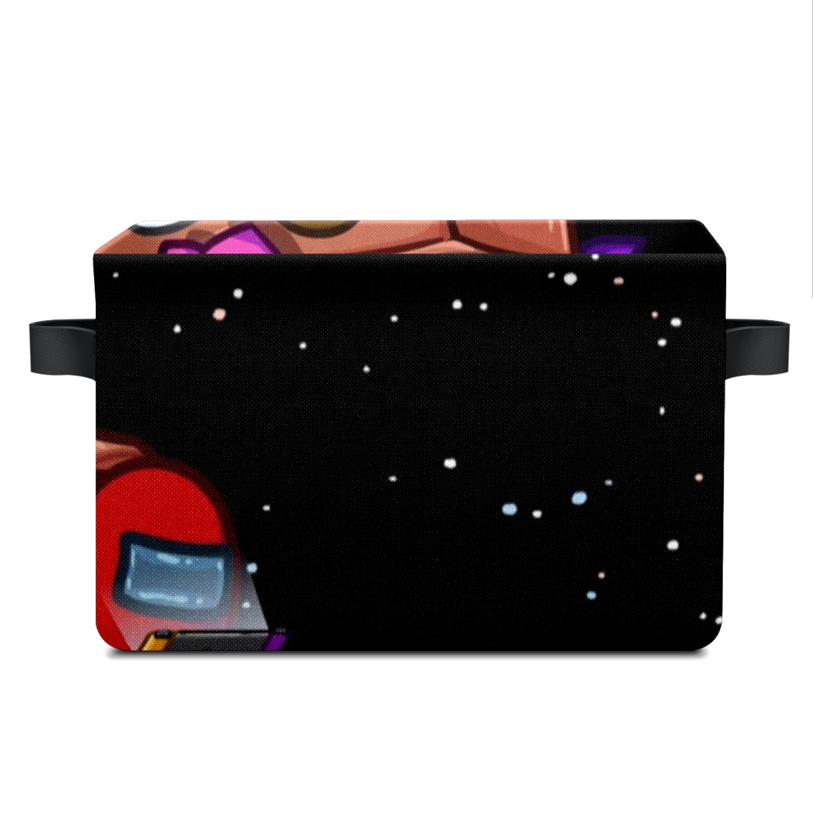 Collapsible 600D Oxford Storage Basket with Among-us Character - Metal Frame 10"x14"x8" Reinforced Handles, Multi-Purpose Organizer
