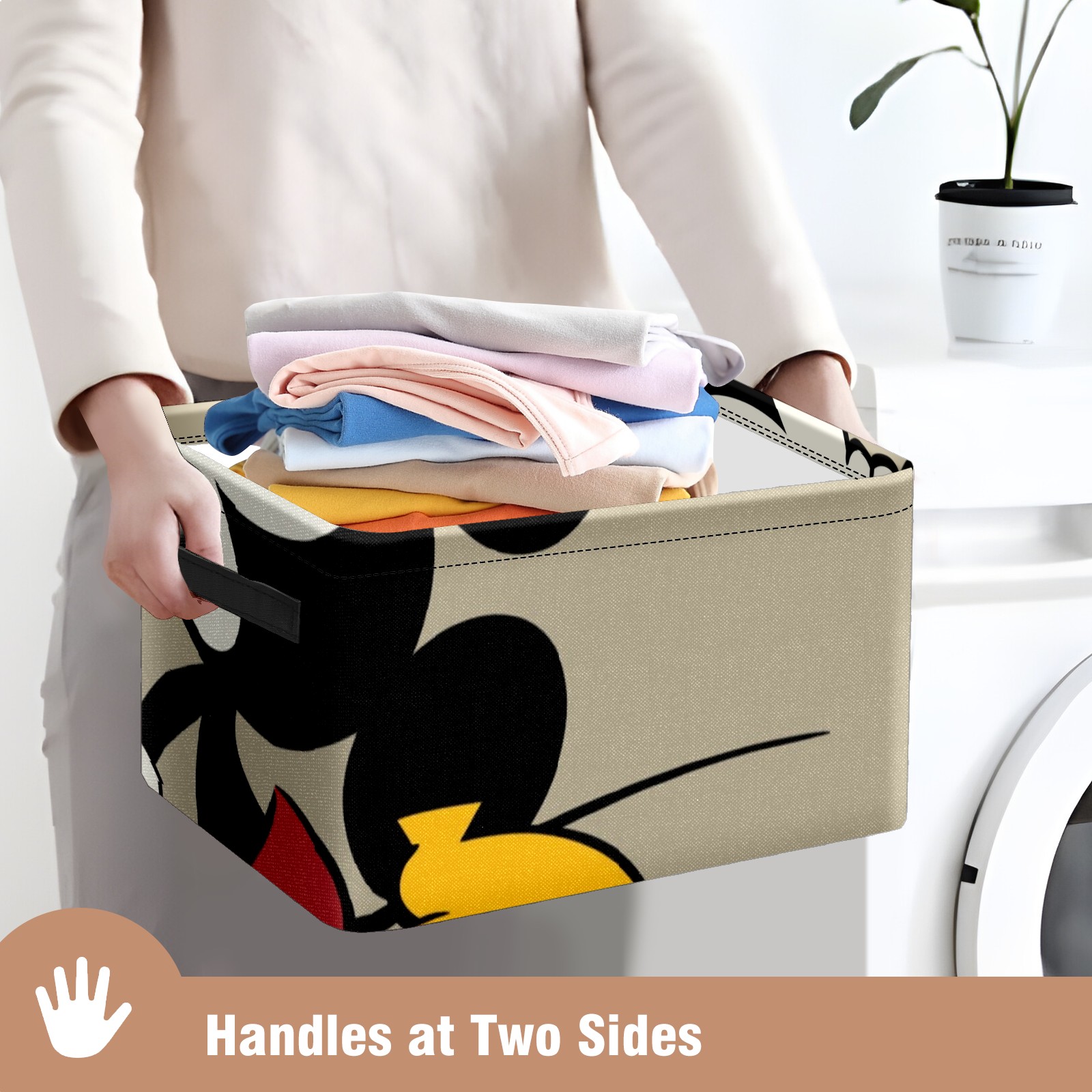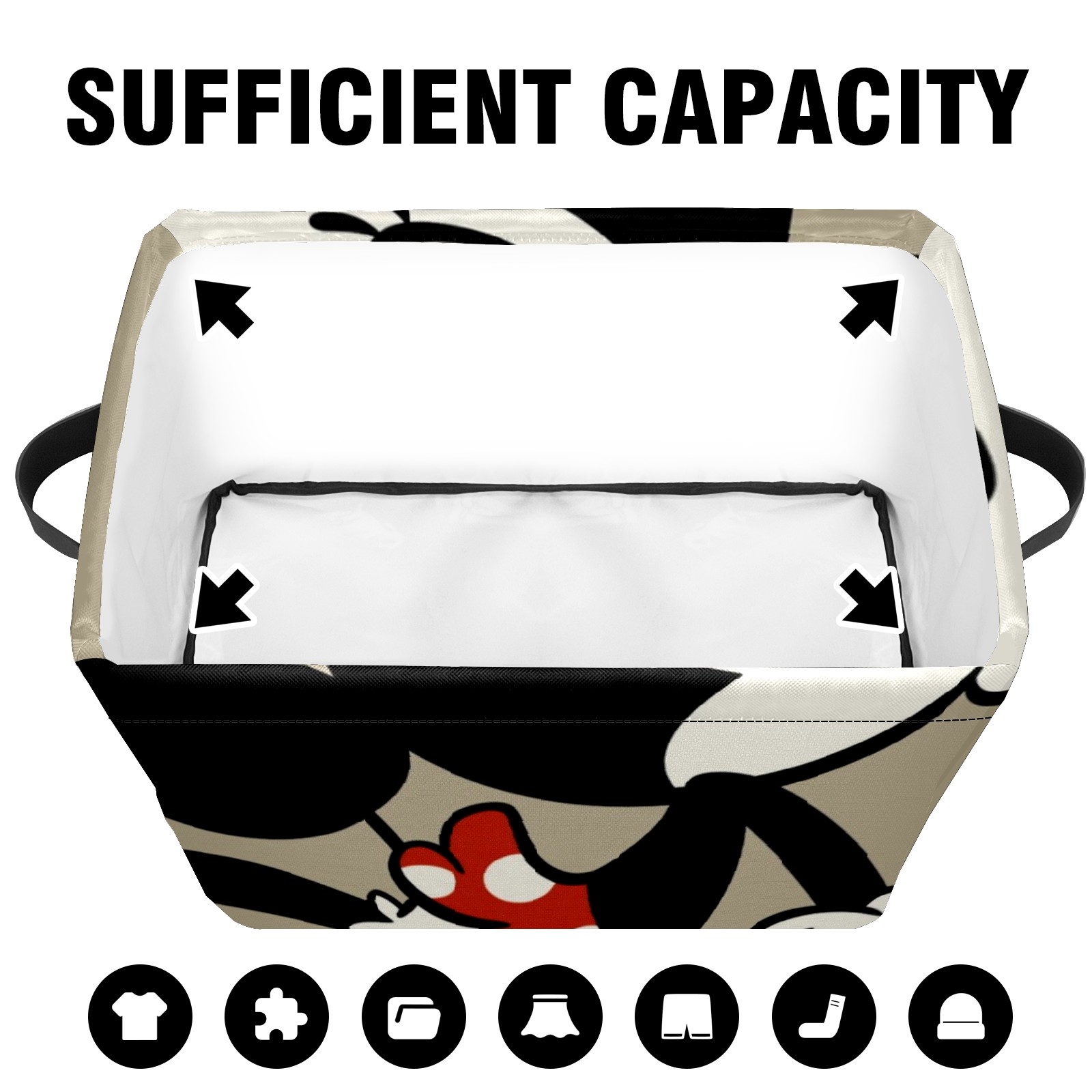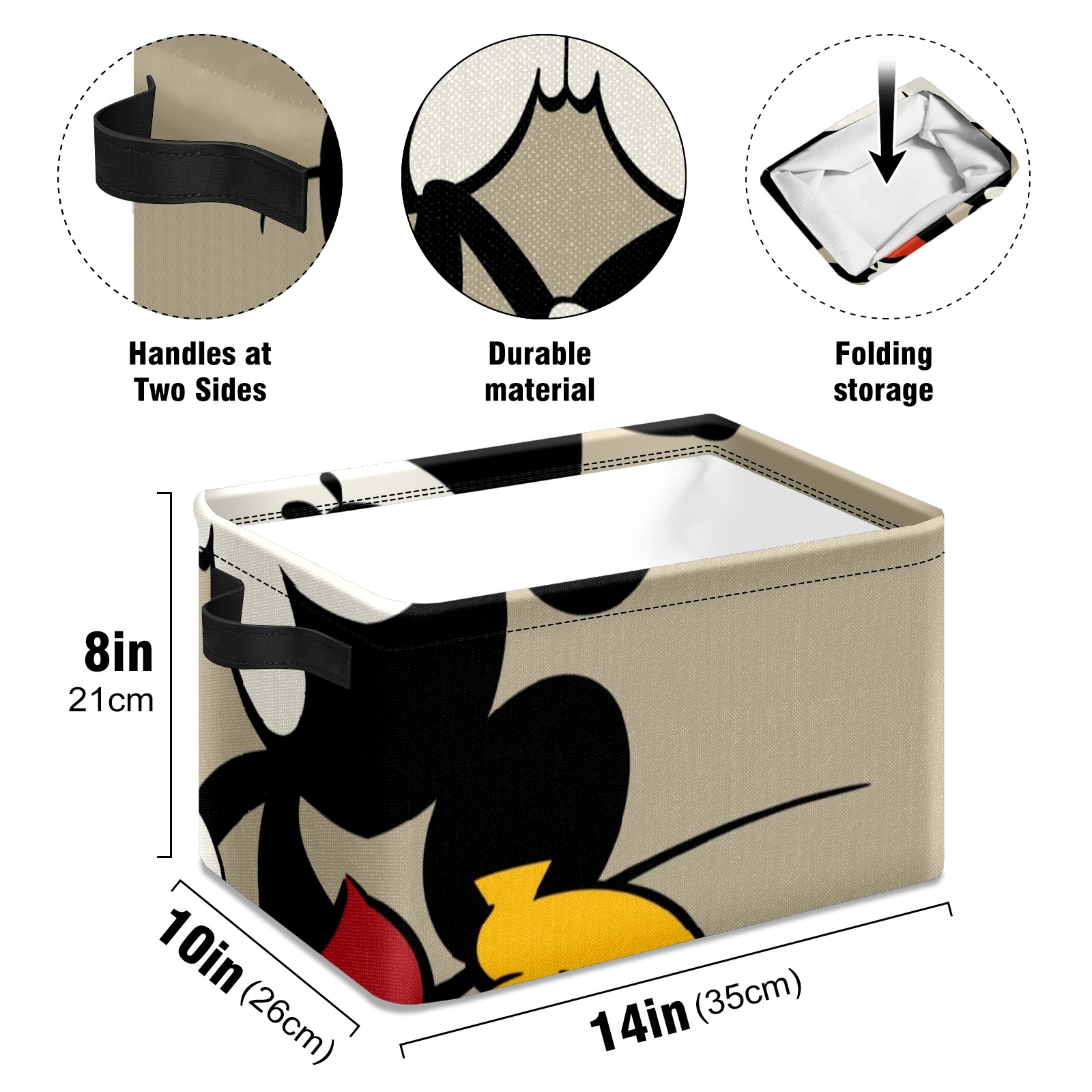 Collapsible 600D Oxford Storage Basket with Cartoon Minnie Kissing Mickey Mouse - Metal Frame 10"x14"x8" Reinforced Handles, Multi-Purpose Organizer