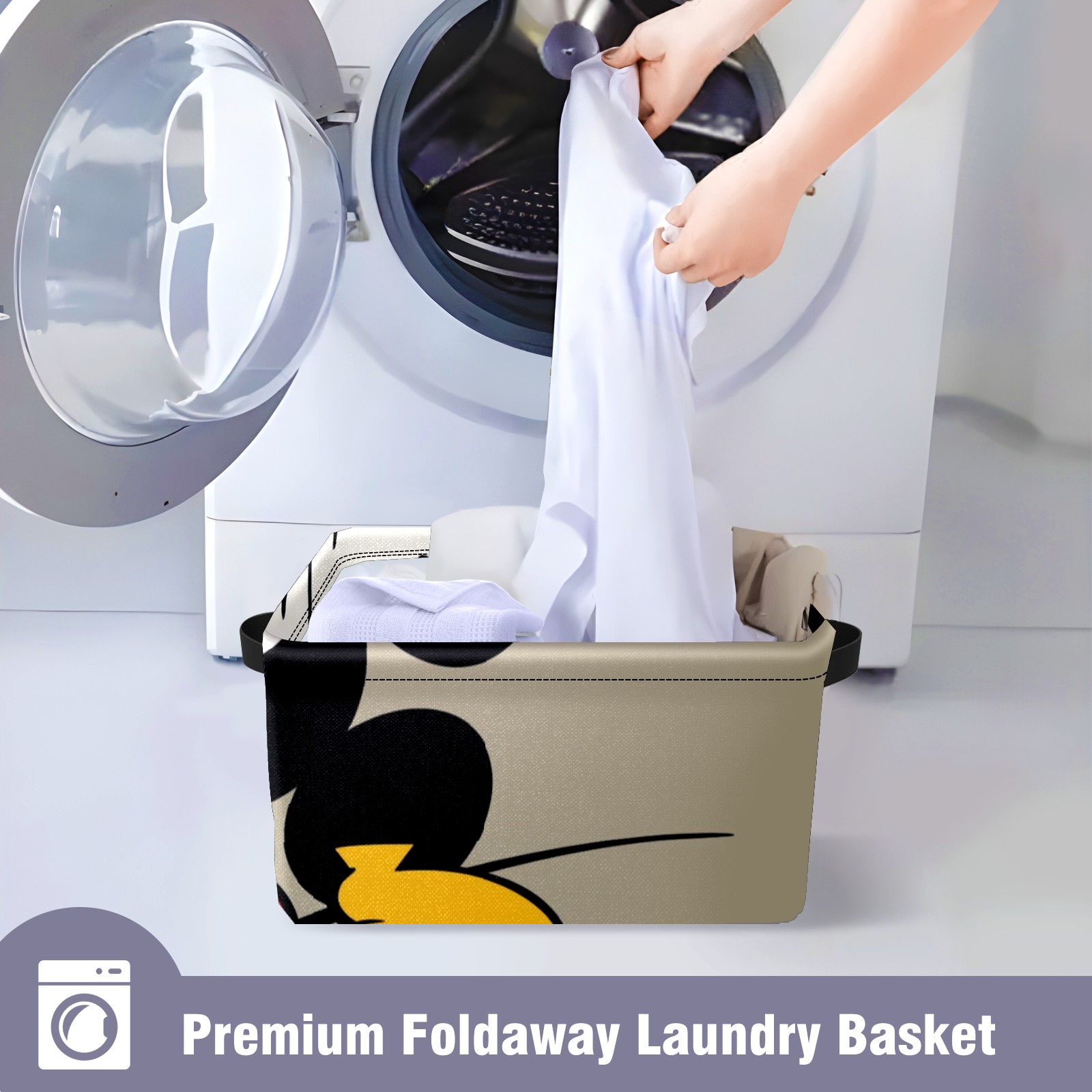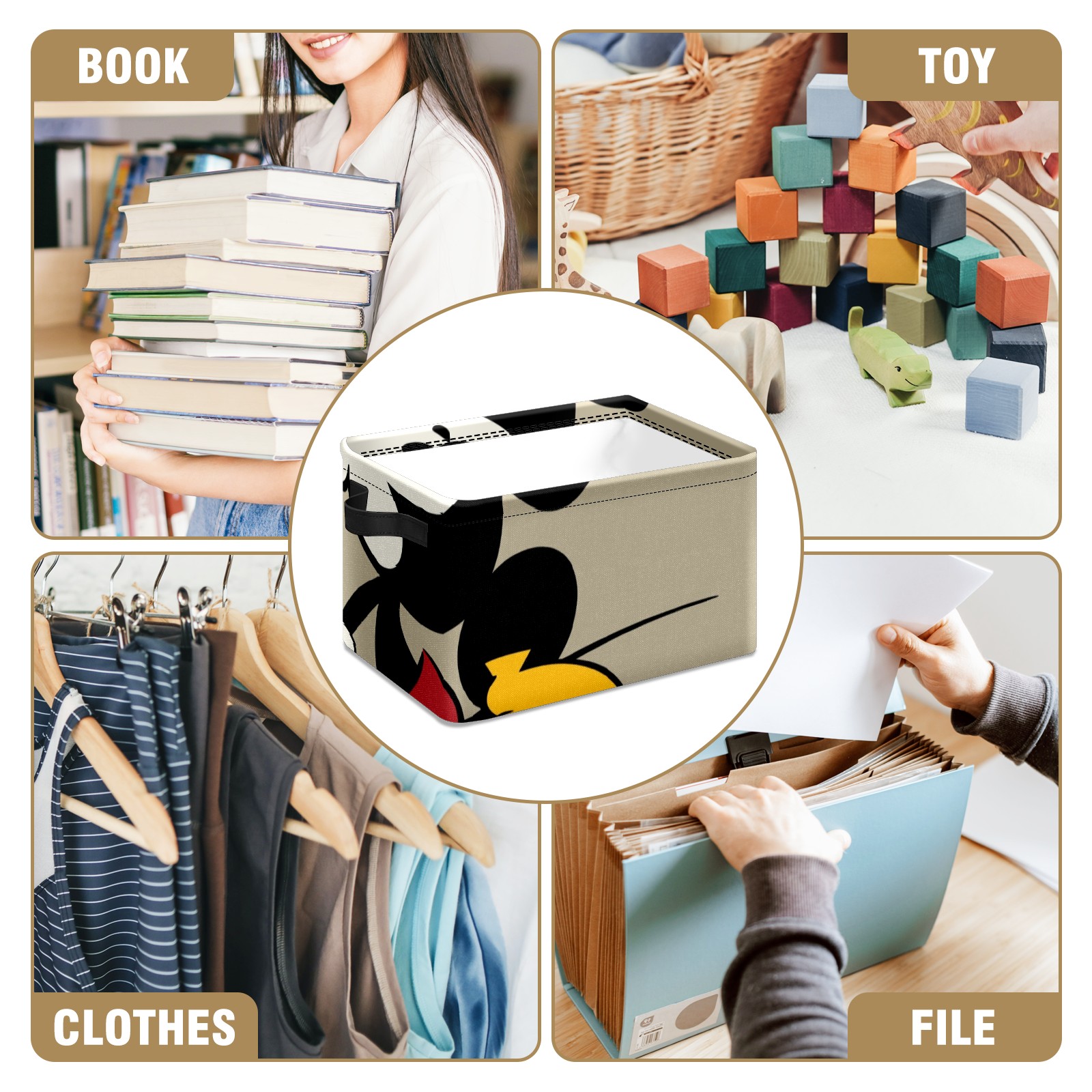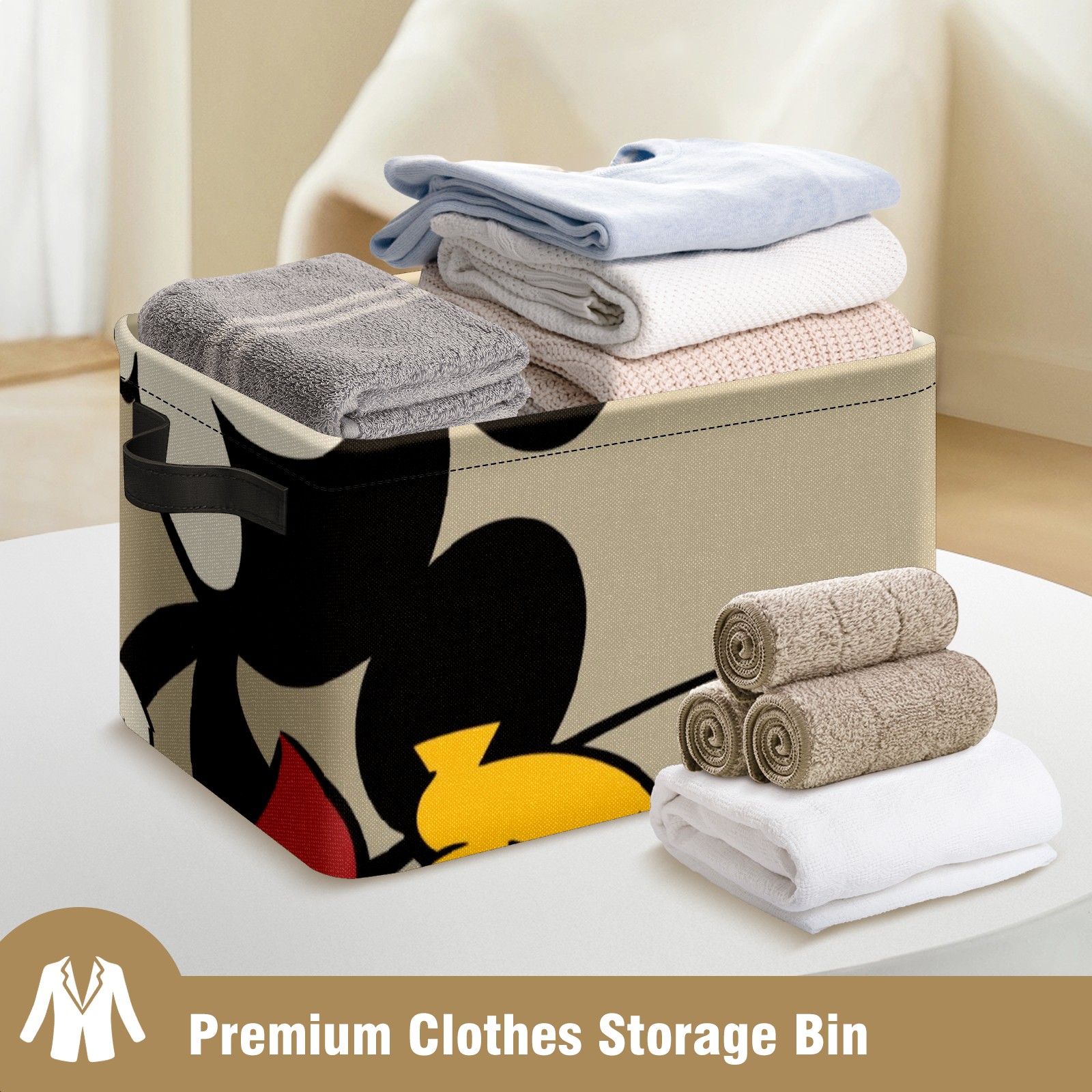 Collapsible 600D Oxford Storage Basket with Cartoon Minnie Kissing Mickey Mouse - Metal Frame 10"x14"x8" Reinforced Handles, Multi-Purpose Organizer