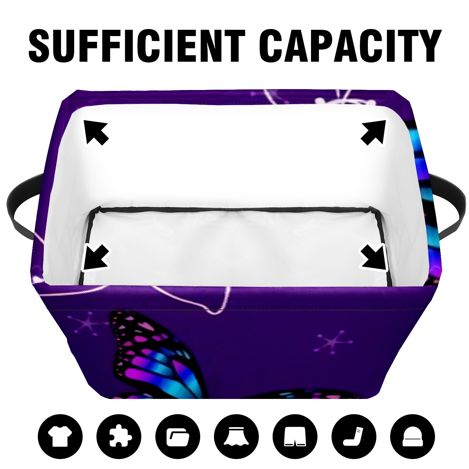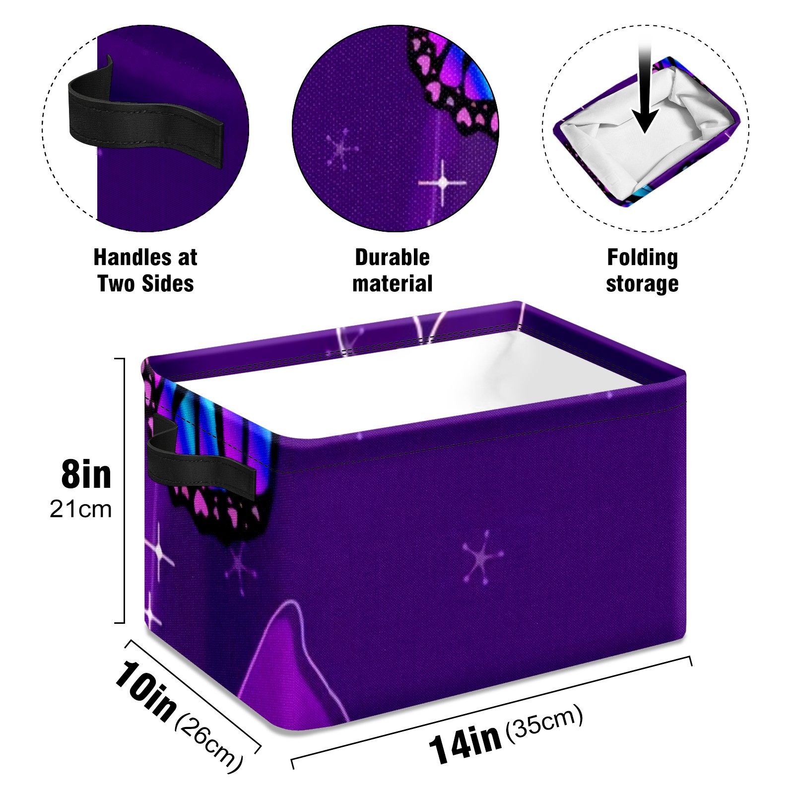 Collapsible 600D Oxford Storage Basket with Blue Butterfly Floral - Metal Frame 10"x14"x8" Reinforced Handles, Multi-Purpose Organizer