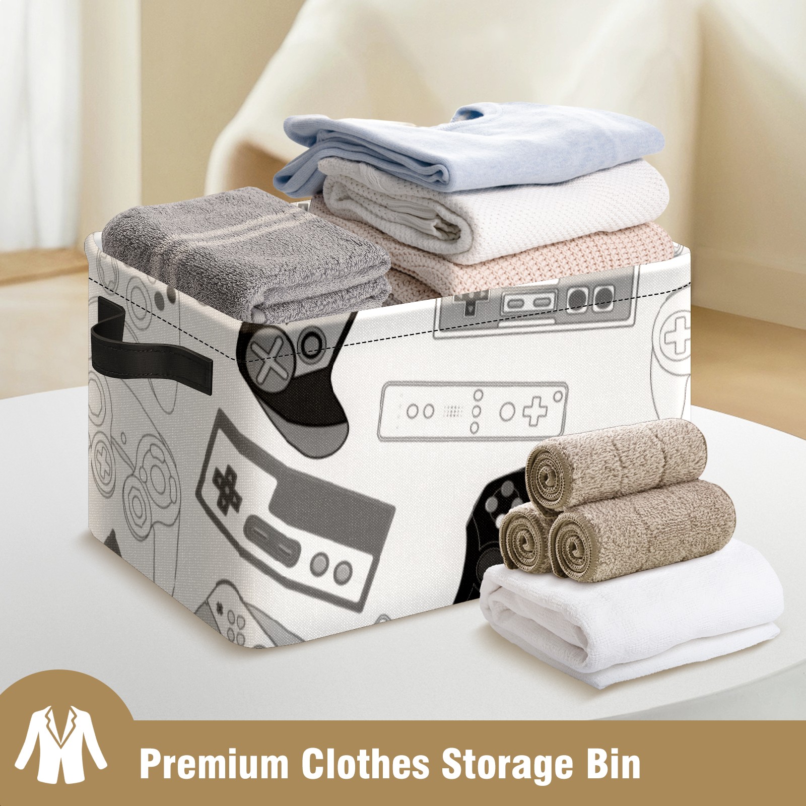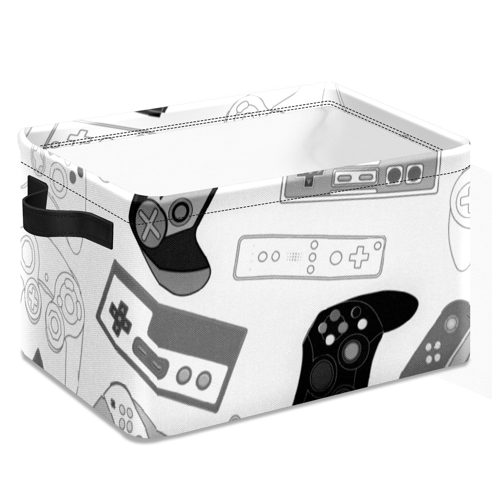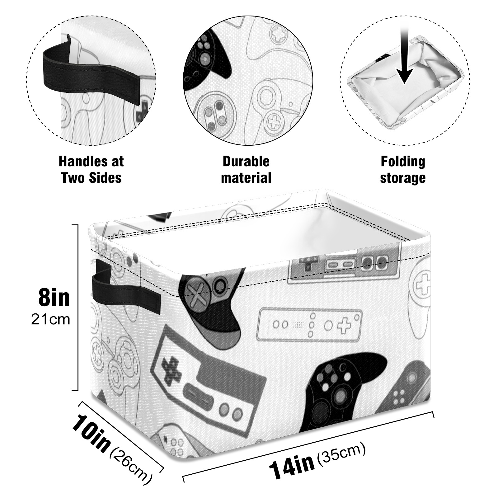 Collapsible 600D Oxford Storage Basket with Video Game Controller - Metal Frame 10"x14"x8" Reinforced Handles, Multi-Purpose Organizer