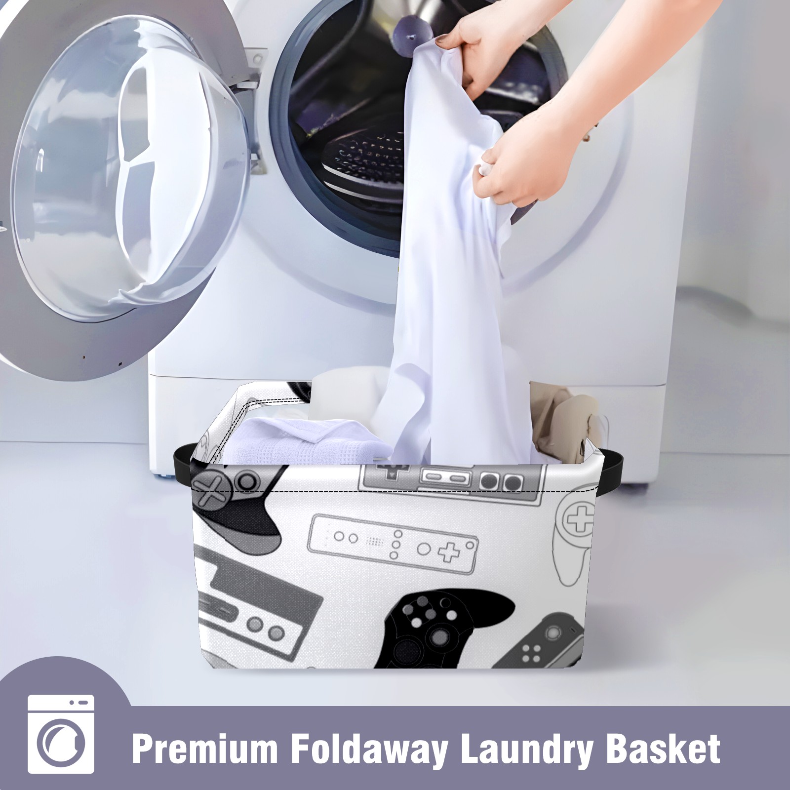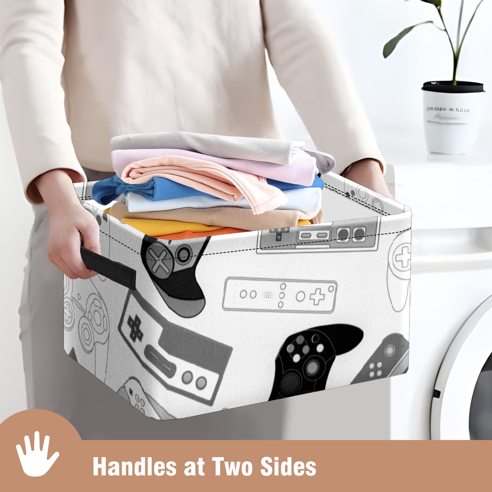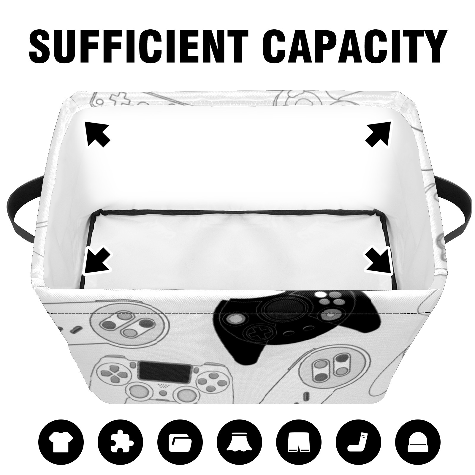 Collapsible 600D Oxford Storage Basket with Video Game Controller - Metal Frame 10"x14"x8" Reinforced Handles, Multi-Purpose Organizer