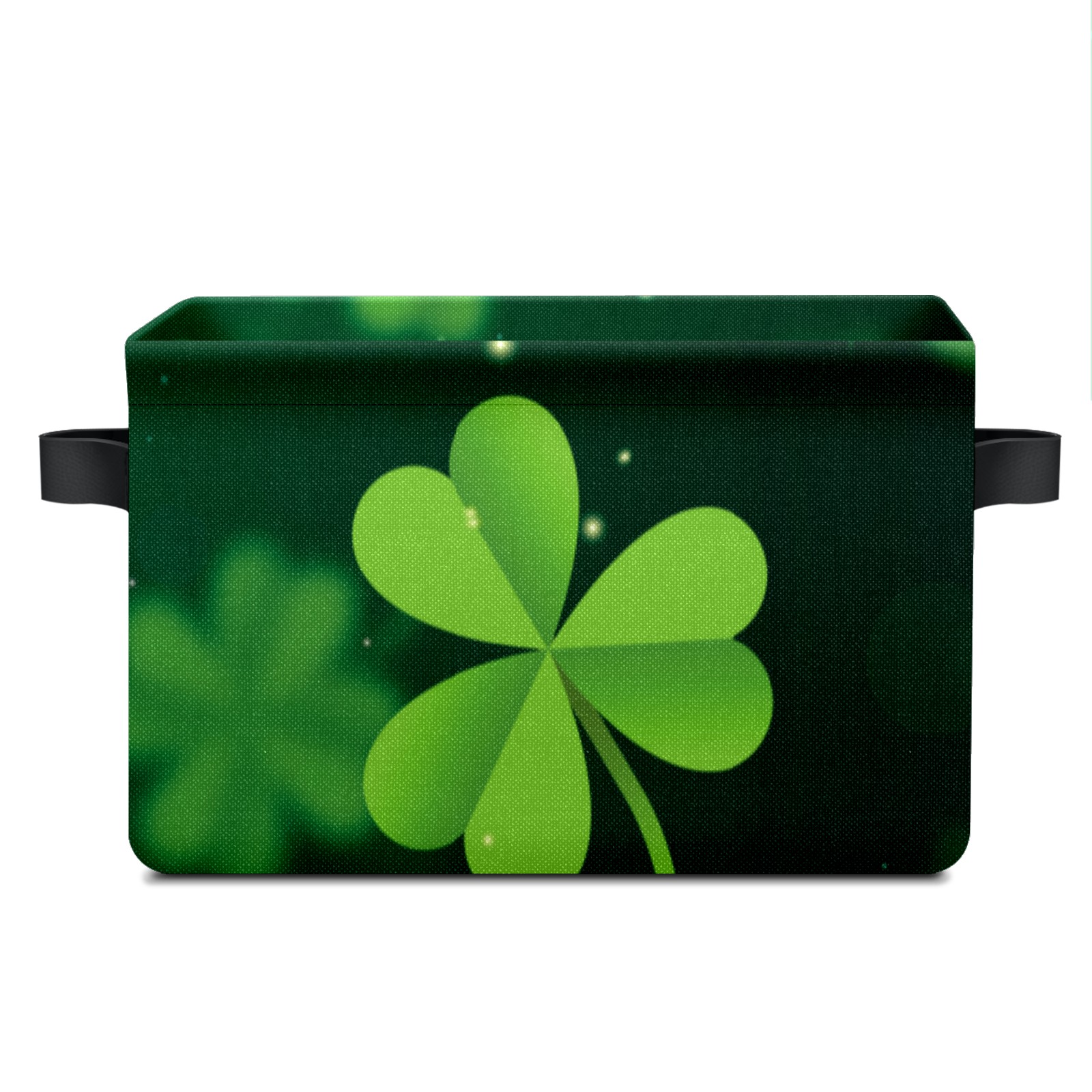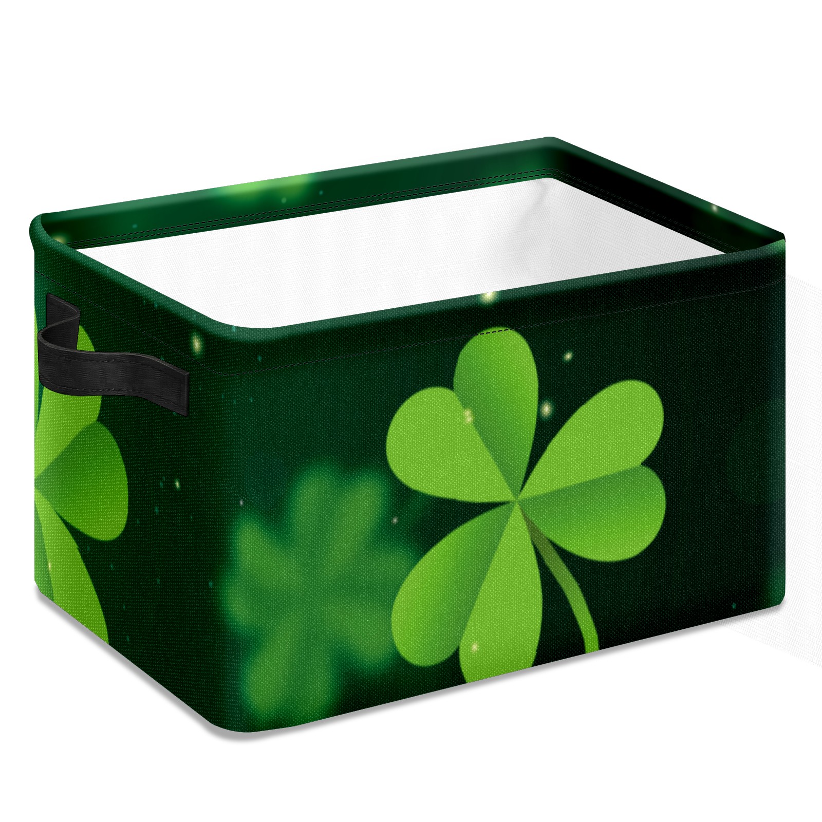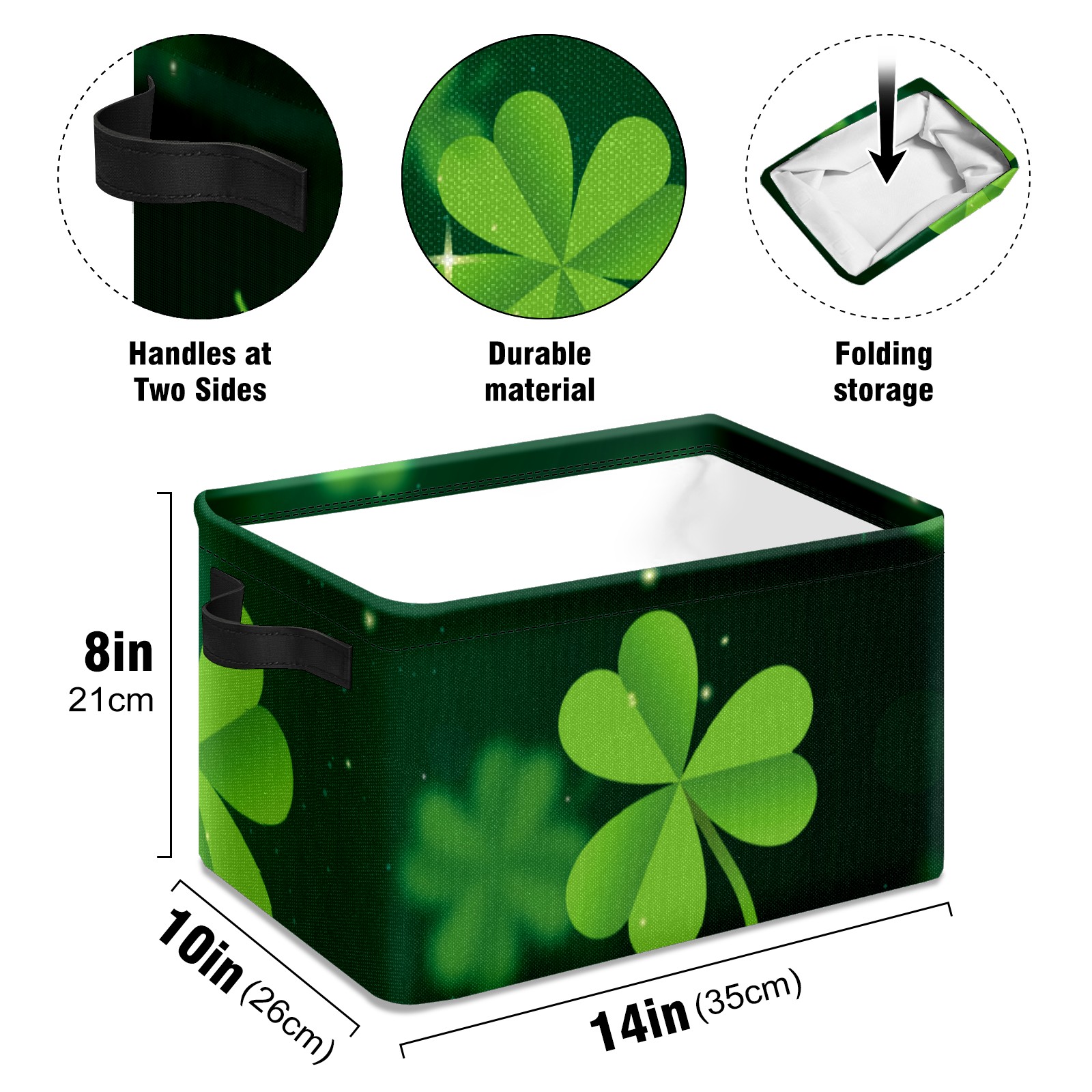 Collapsible 600D Oxford Storage Basket with Green Clover Happy St. Patrick's Day - Metal Frame 10"x14"x8" Reinforced Handles, Multi-Purpose Organizer