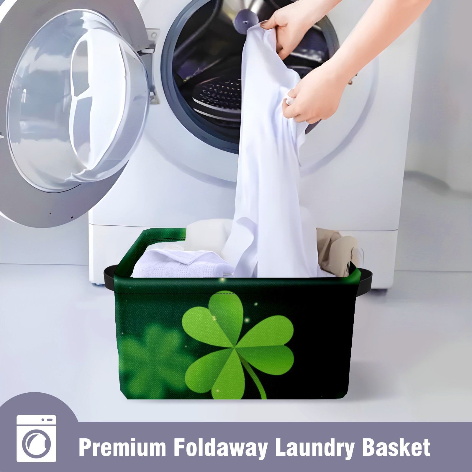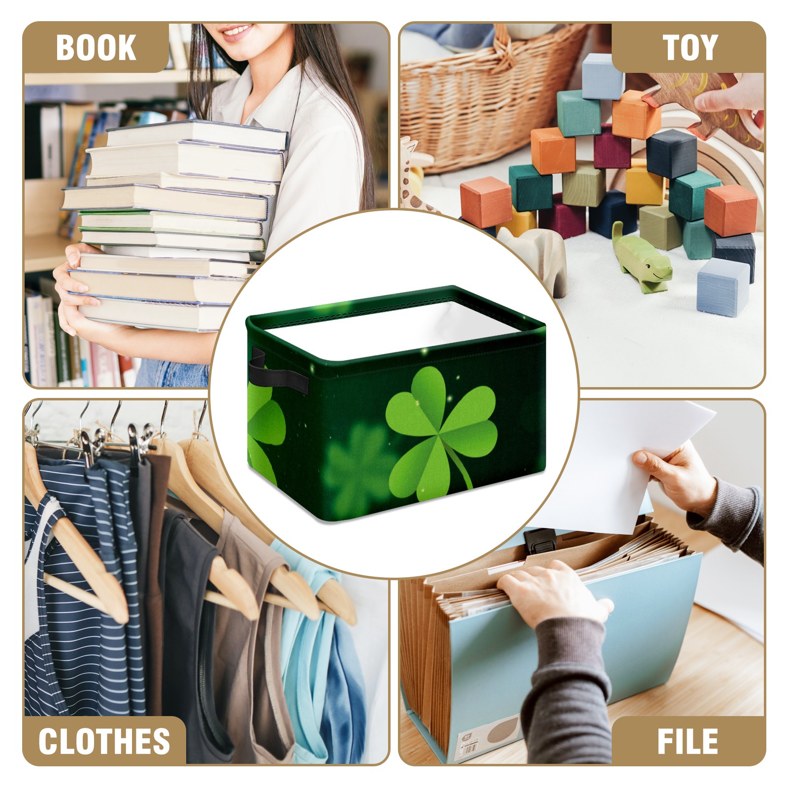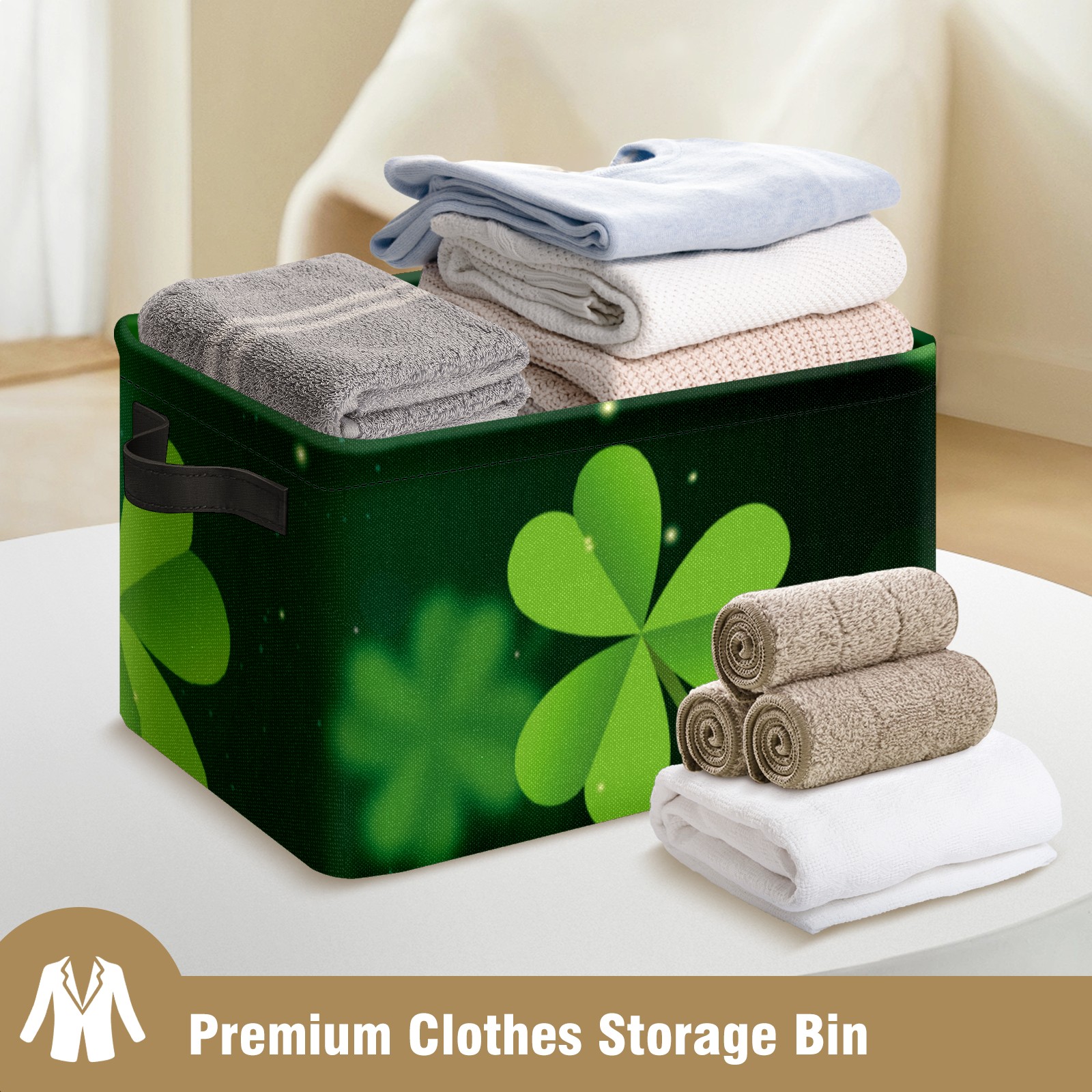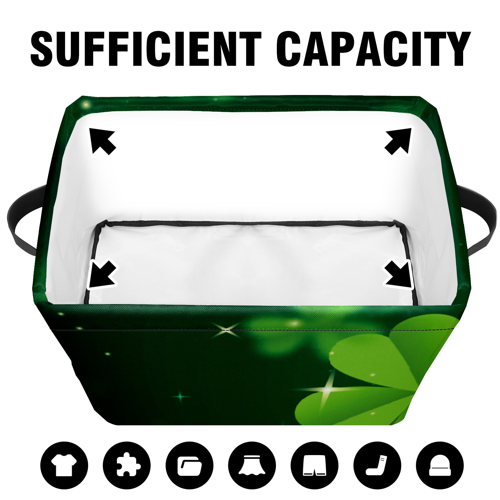 Collapsible 600D Oxford Storage Basket with Green Clover Happy St. Patrick's Day - Metal Frame 10"x14"x8" Reinforced Handles, Multi-Purpose Organizer