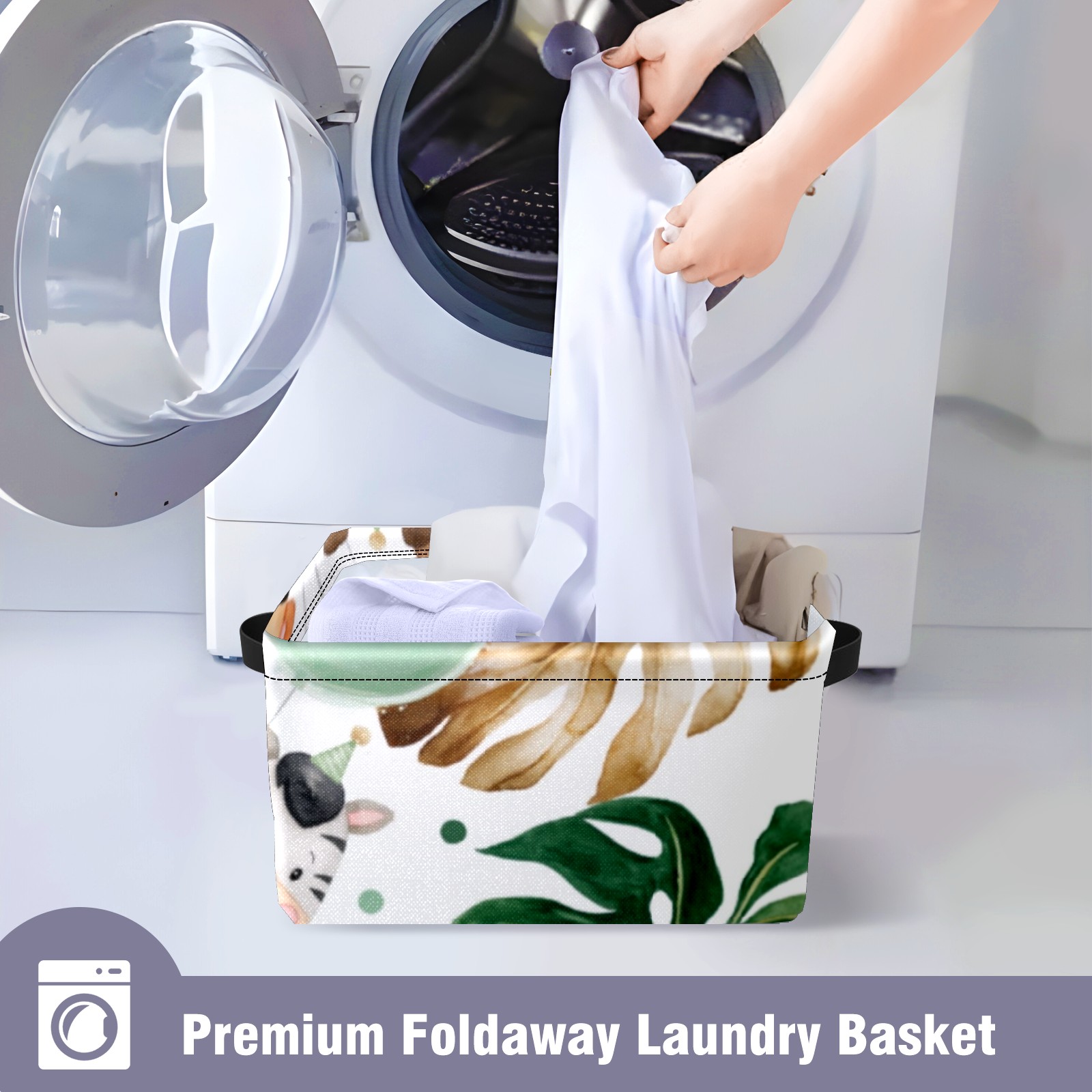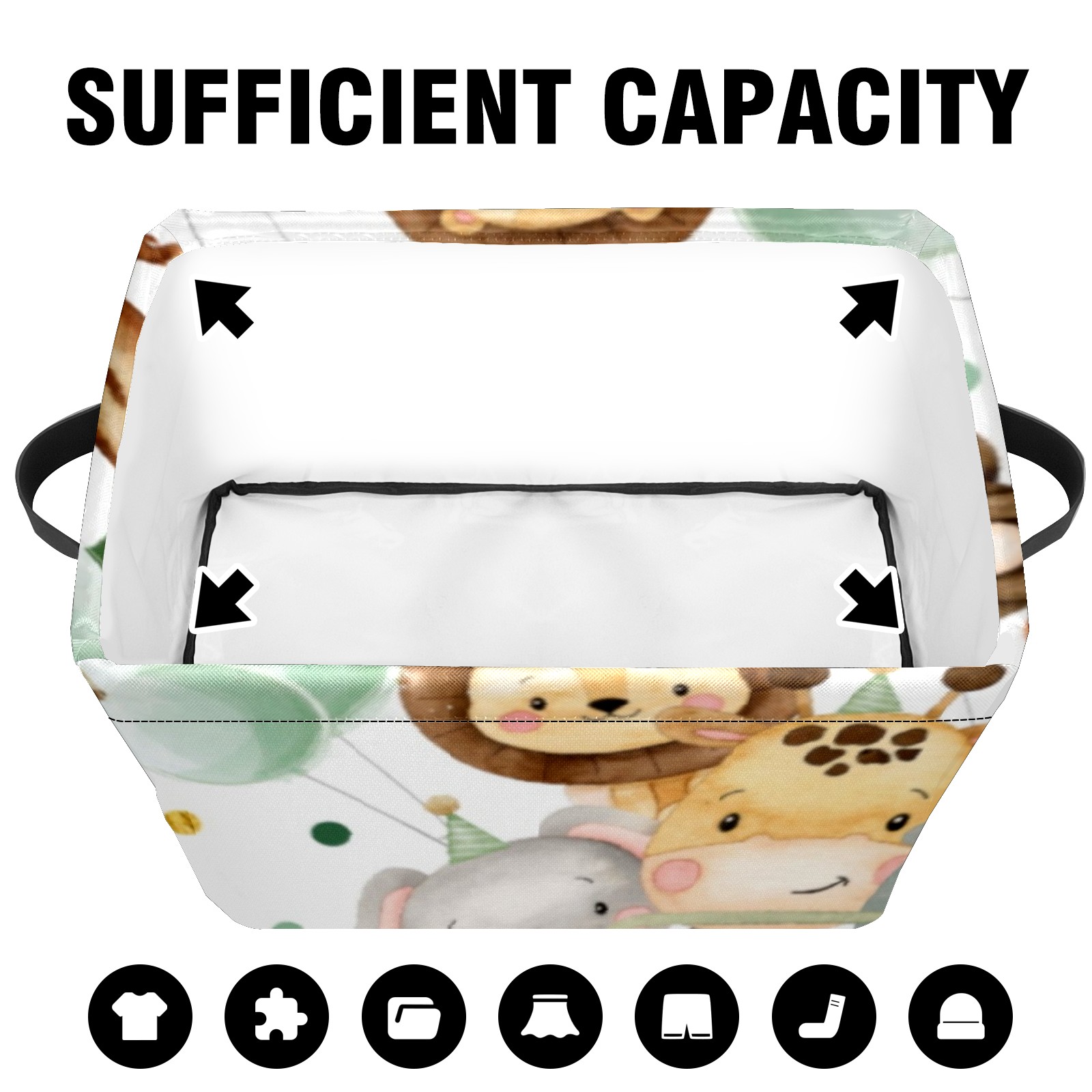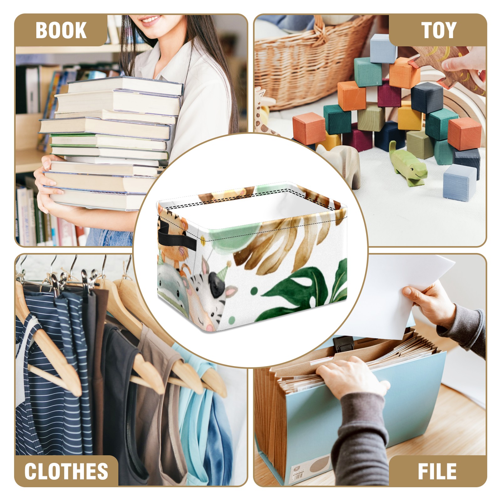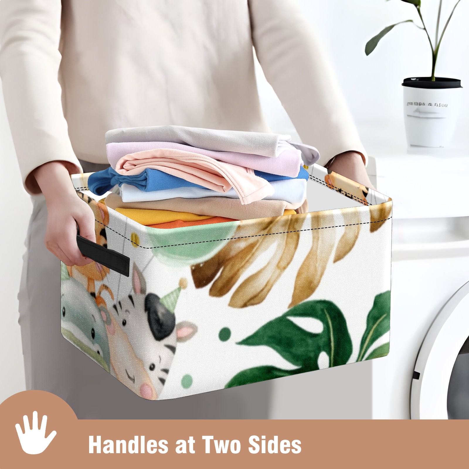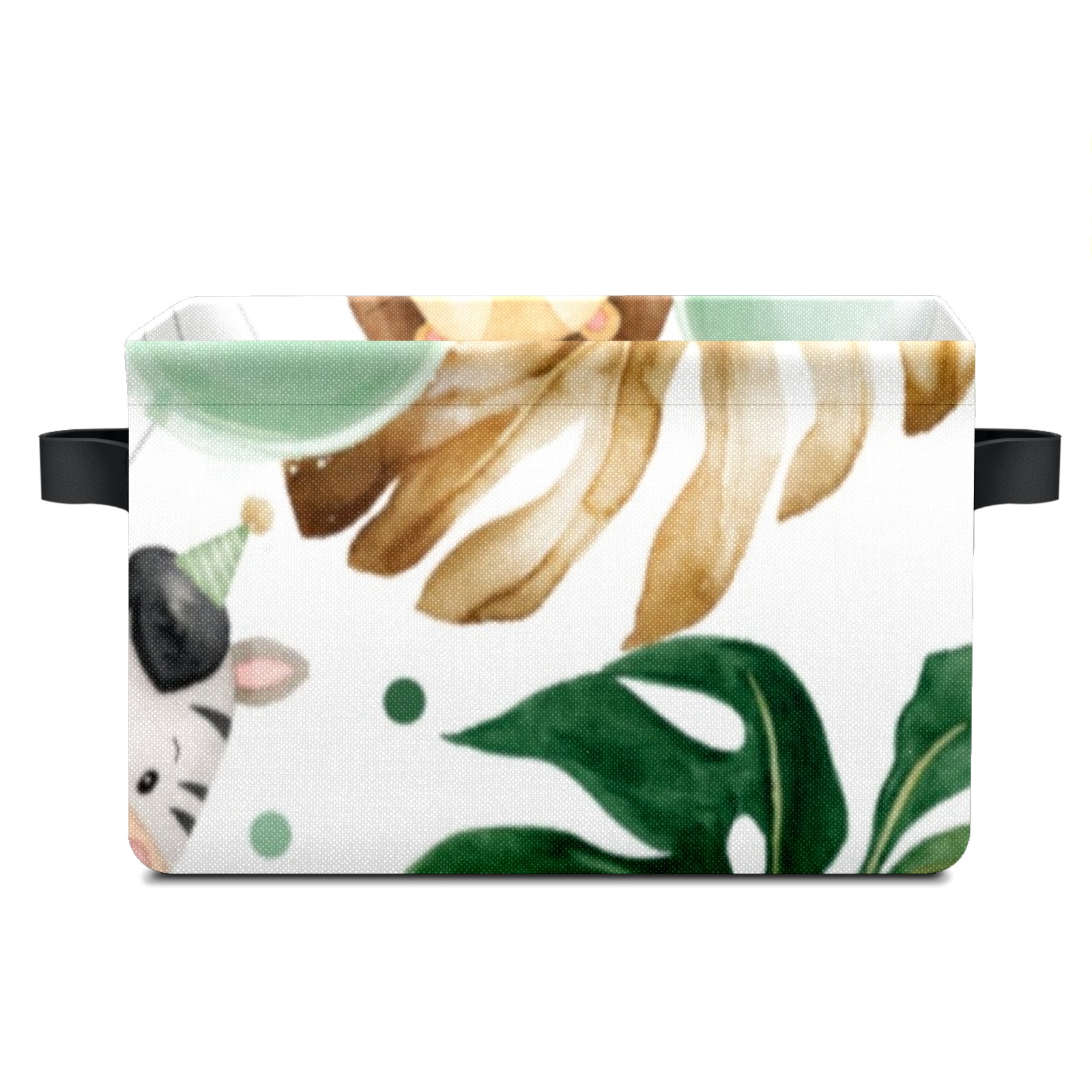 Collapsible 600D Oxford Storage Basket with Cute Watercolor Safari - Metal Frame 10"x14"x8" Reinforced Handles, Multi-Purpose Organizer