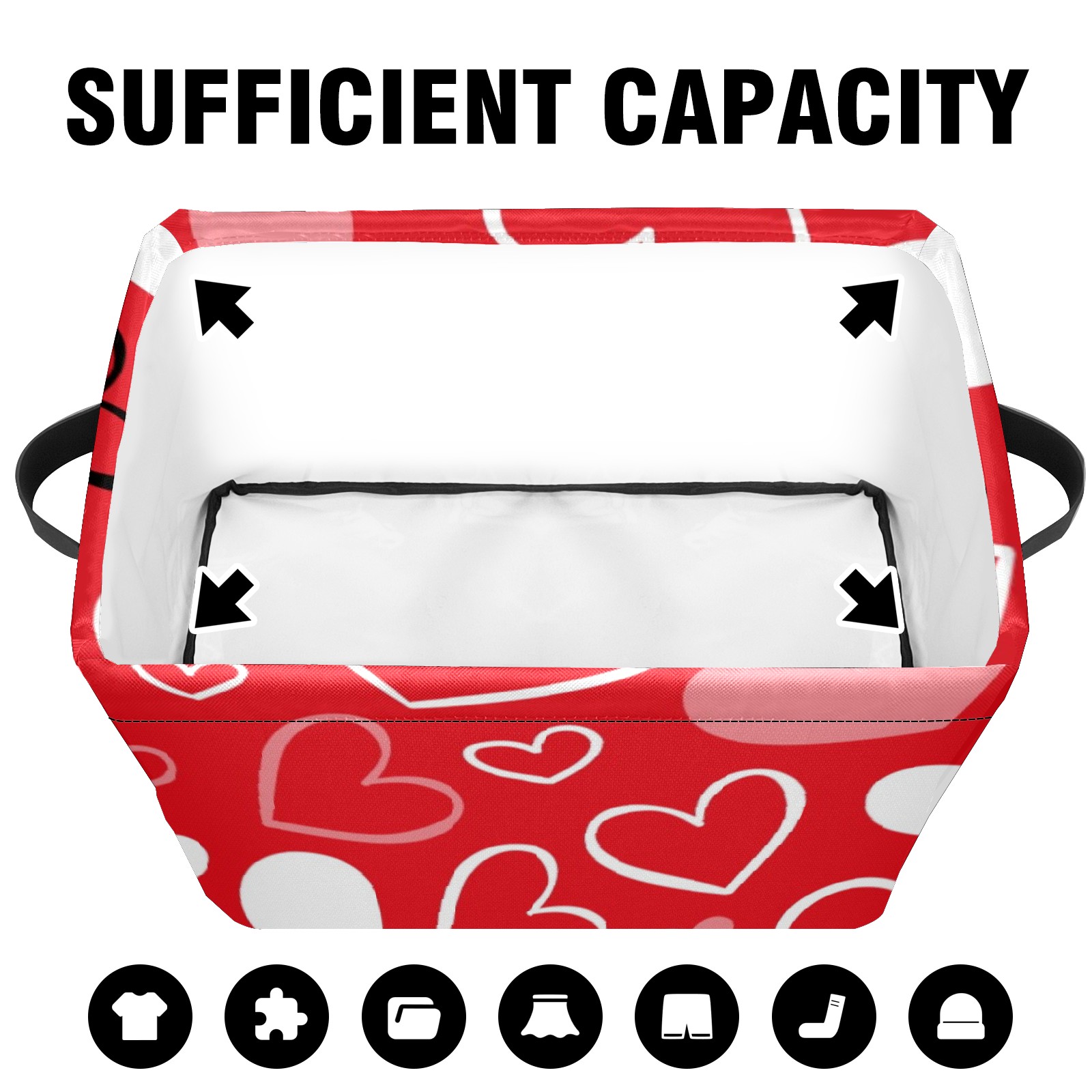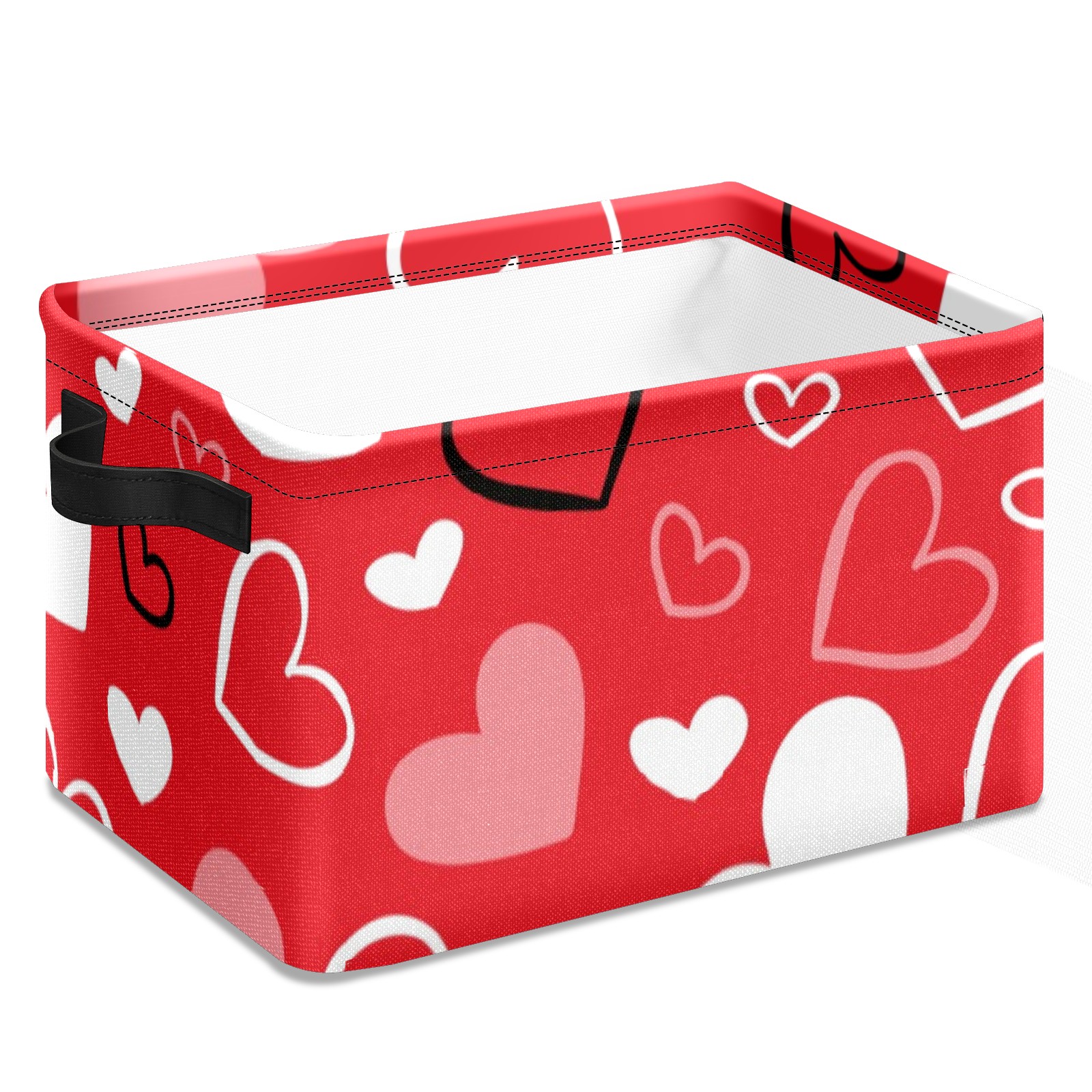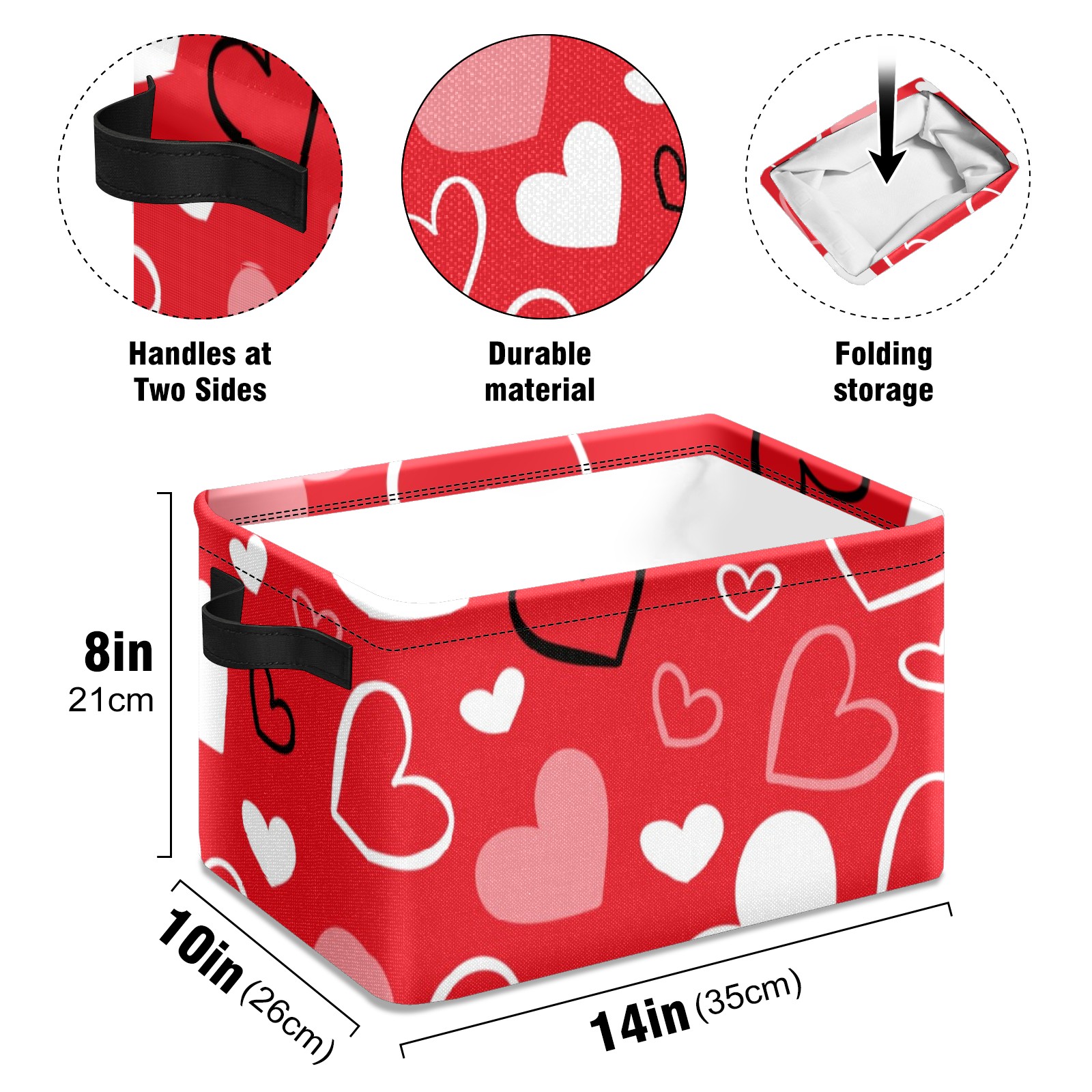 Collapsible 600D Oxford Storage Basket with Valentines Day Red Heart - Metal Frame 10"x14"x8" Reinforced Handles, Multi-Purpose Organizer