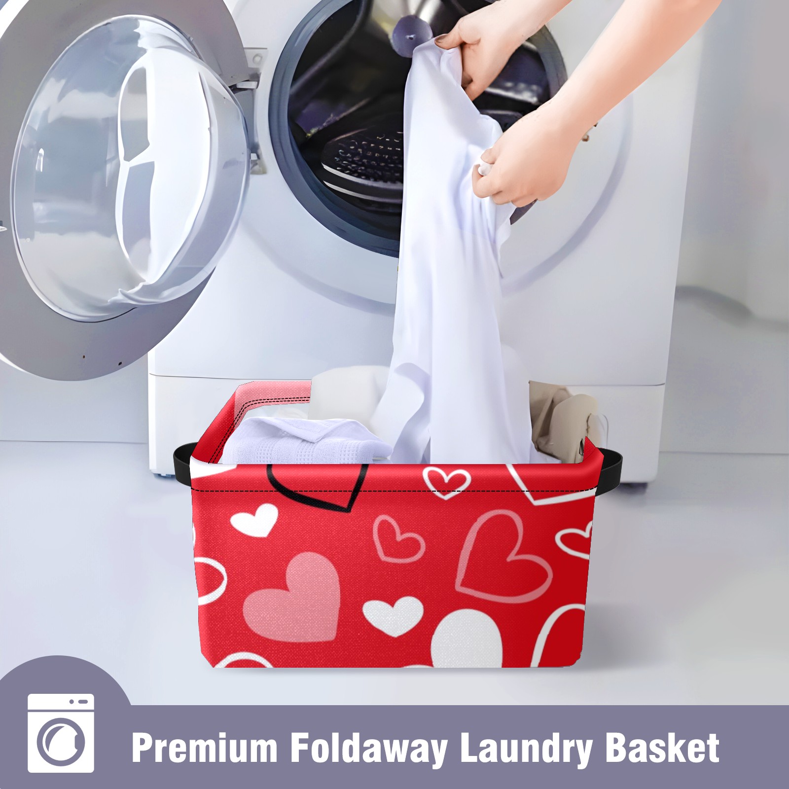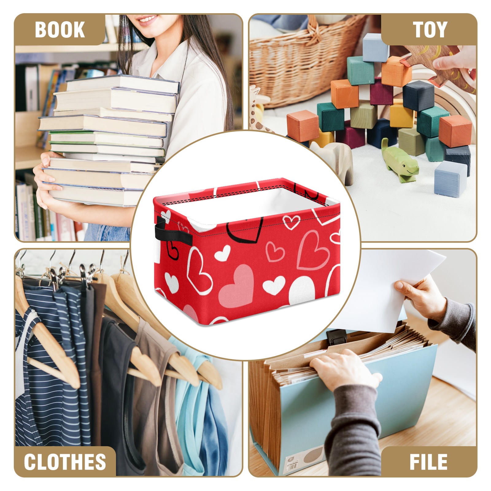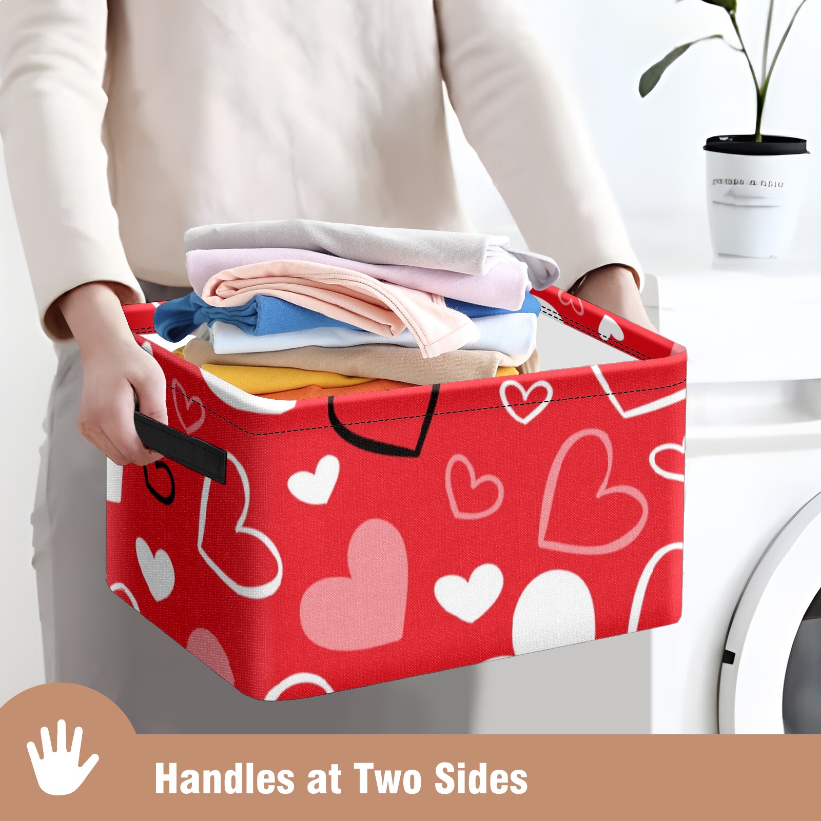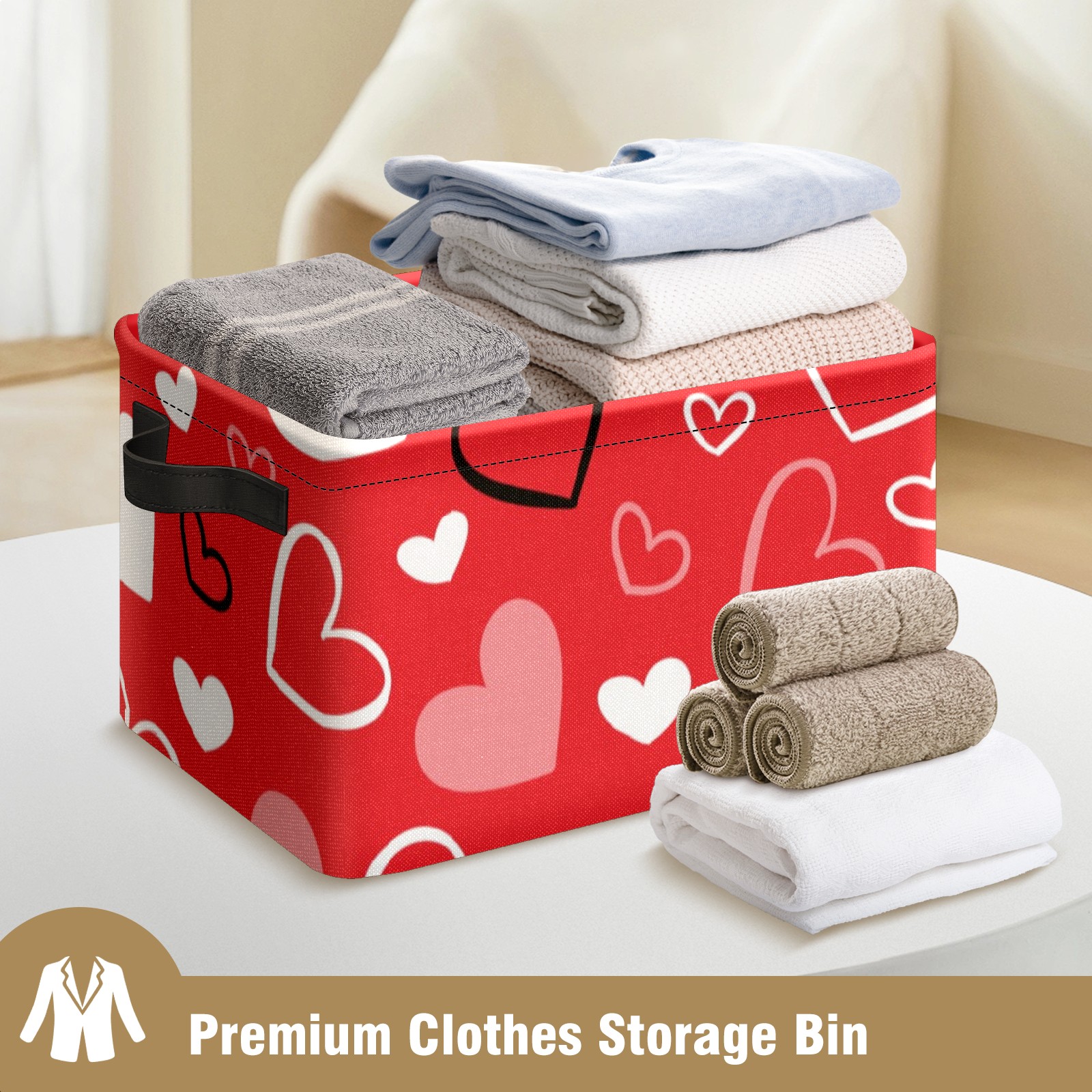 Collapsible 600D Oxford Storage Basket with Valentines Day Red Heart - Metal Frame 10"x14"x8" Reinforced Handles, Multi-Purpose Organizer