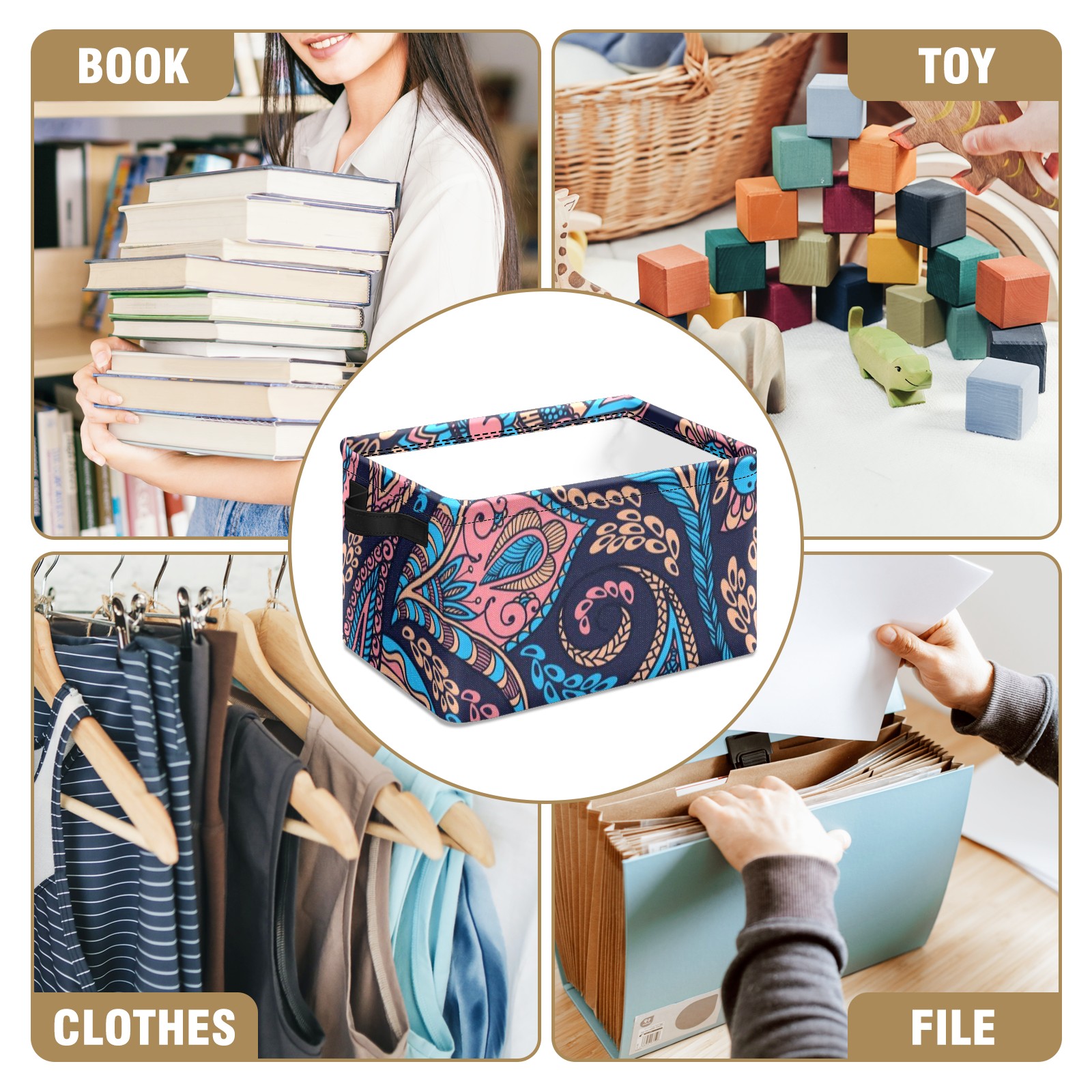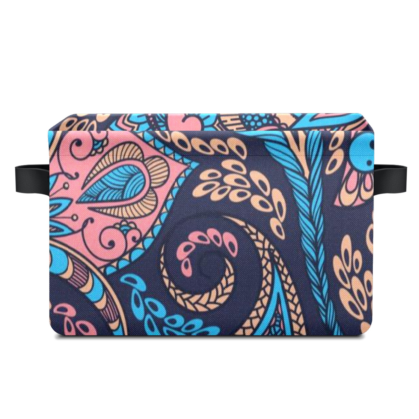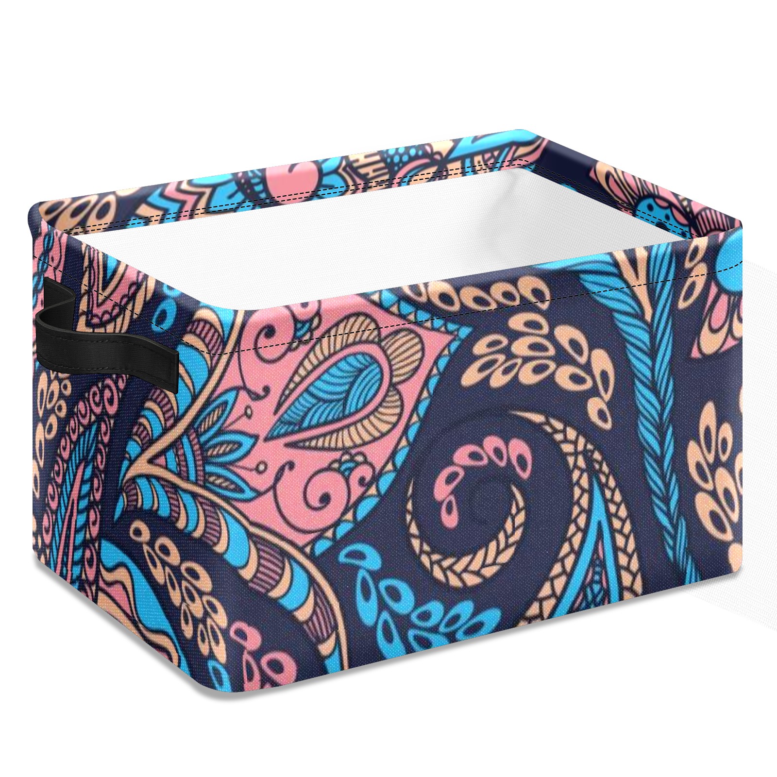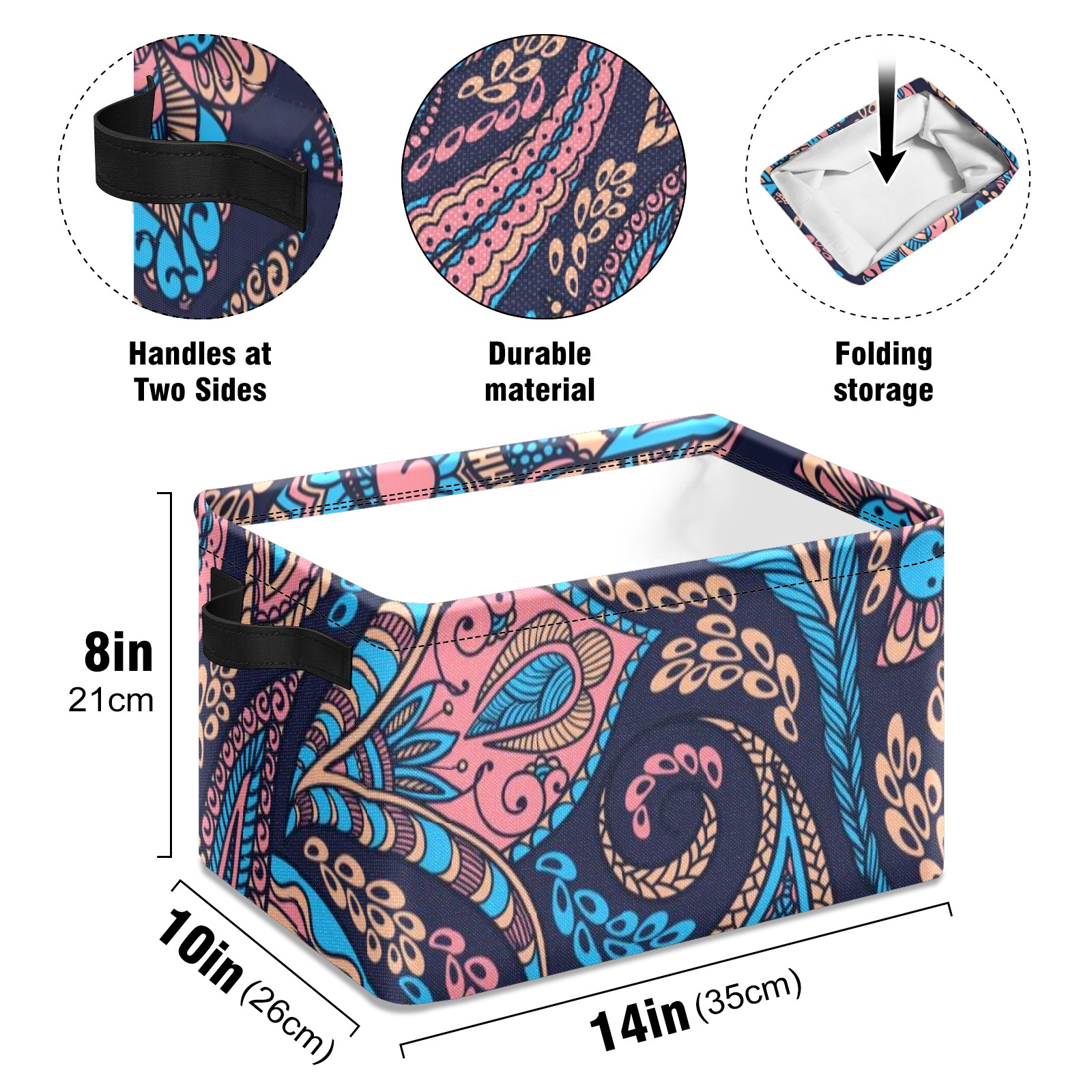Collapsible 600D Oxford Storage Basket with Paisley-blue-and-pink-seamless-pattern-vector - Metal Frame 10"x14"x8" Reinforced Handles, Multi-Purpose Organizer