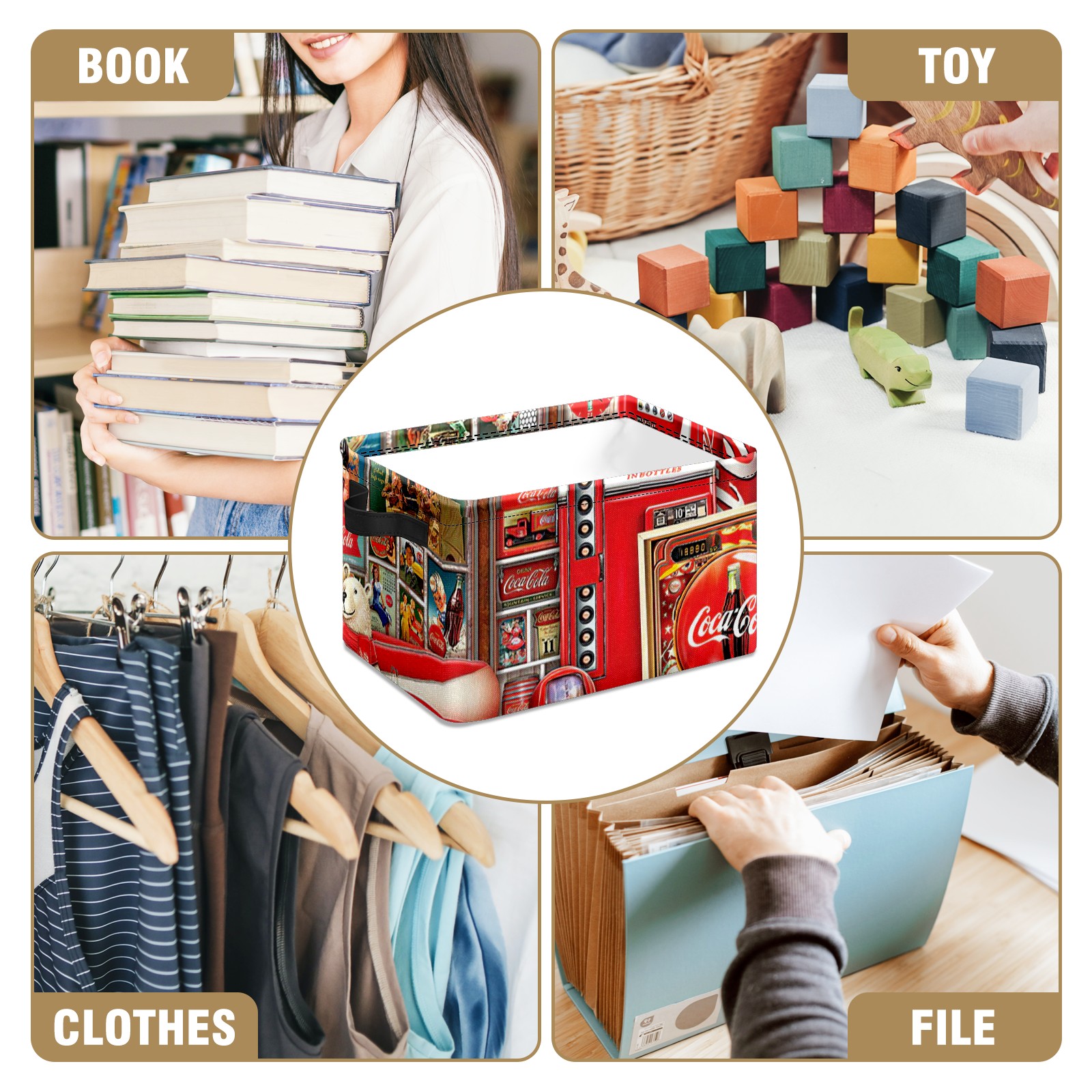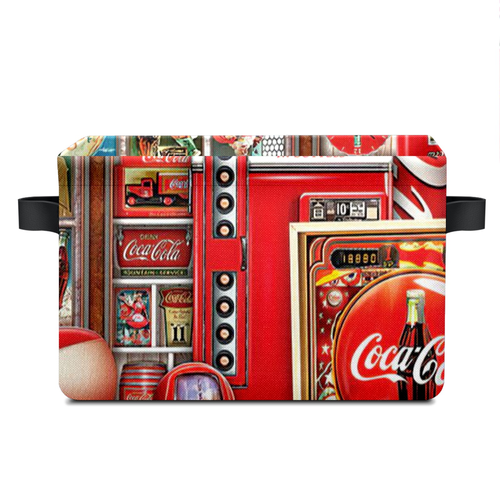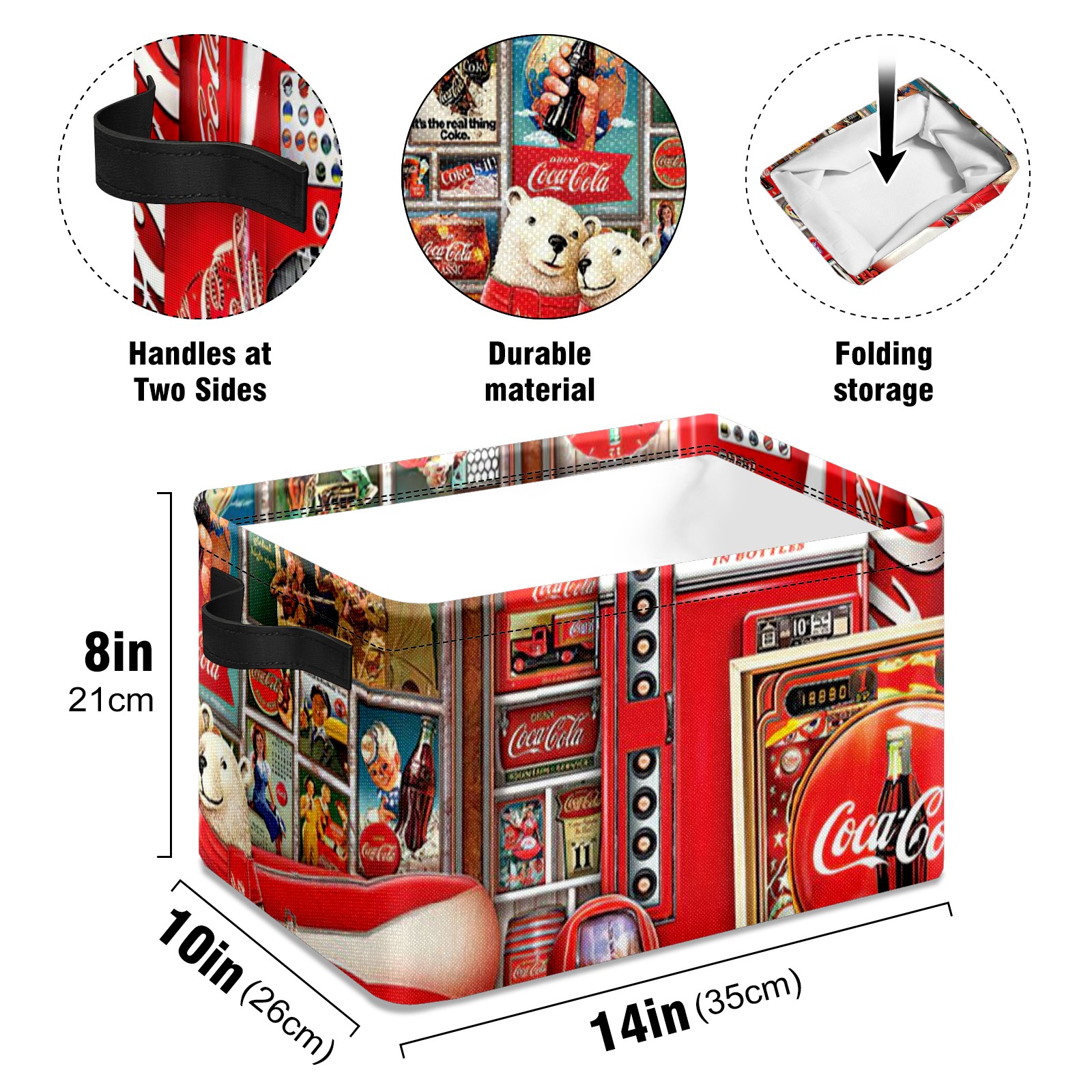 Collapsible 600D Oxford Storage Basket with Coke Decades - Metal Frame 10"x14"x8" Reinforced Handles, Multi-Purpose Organizer