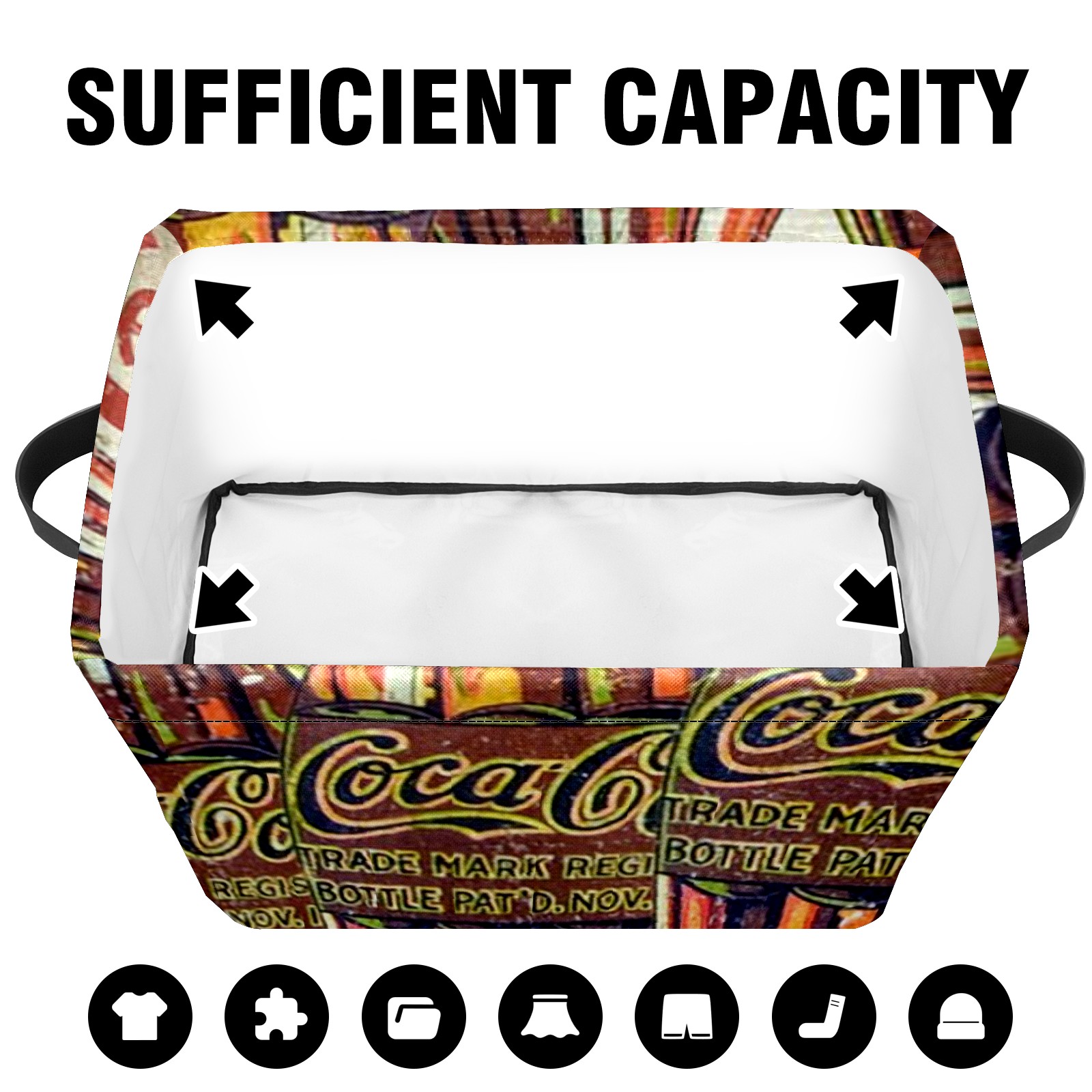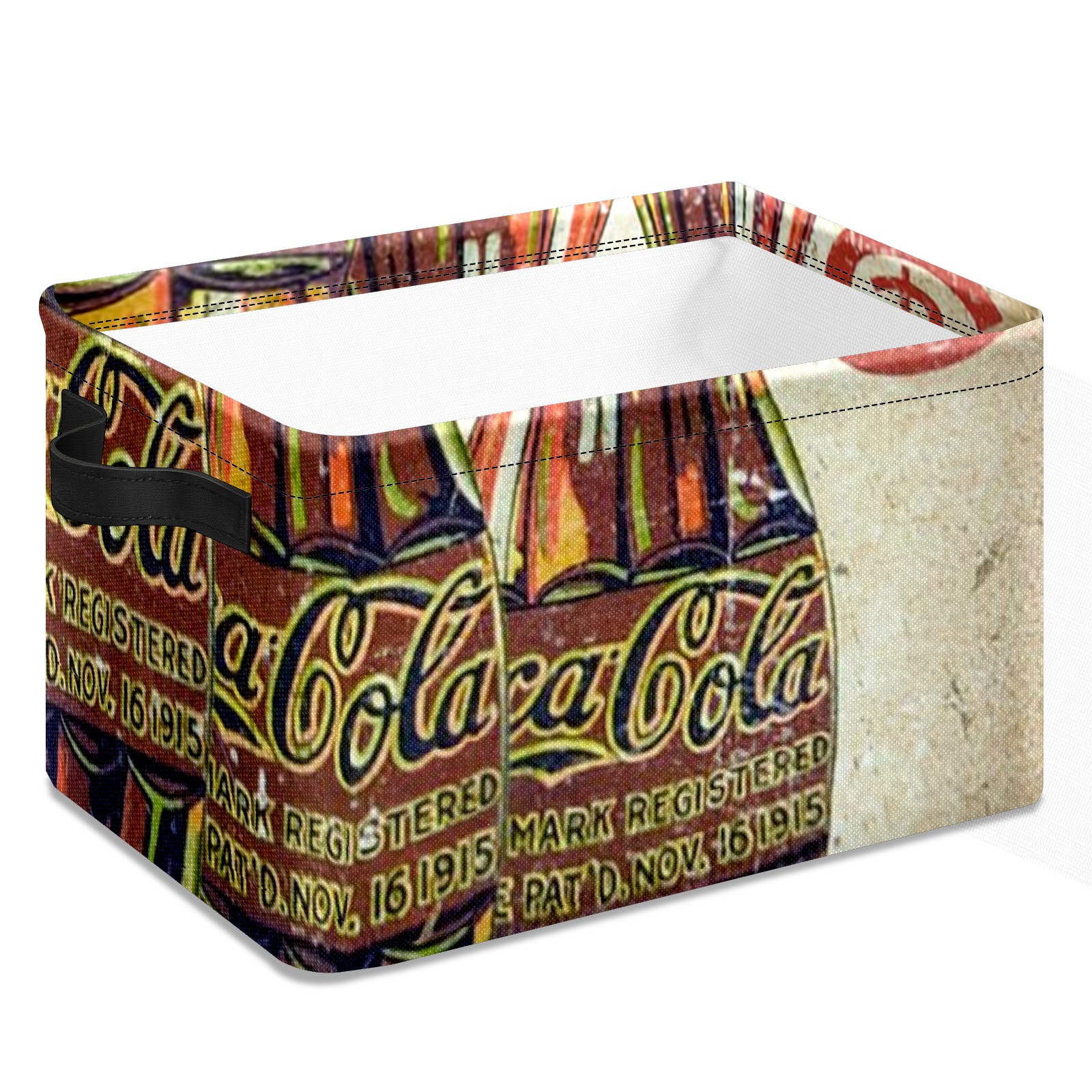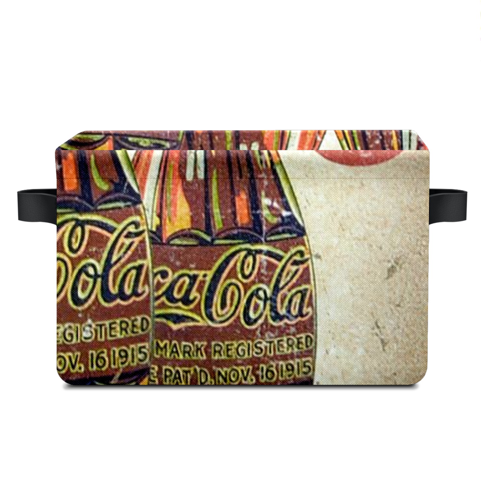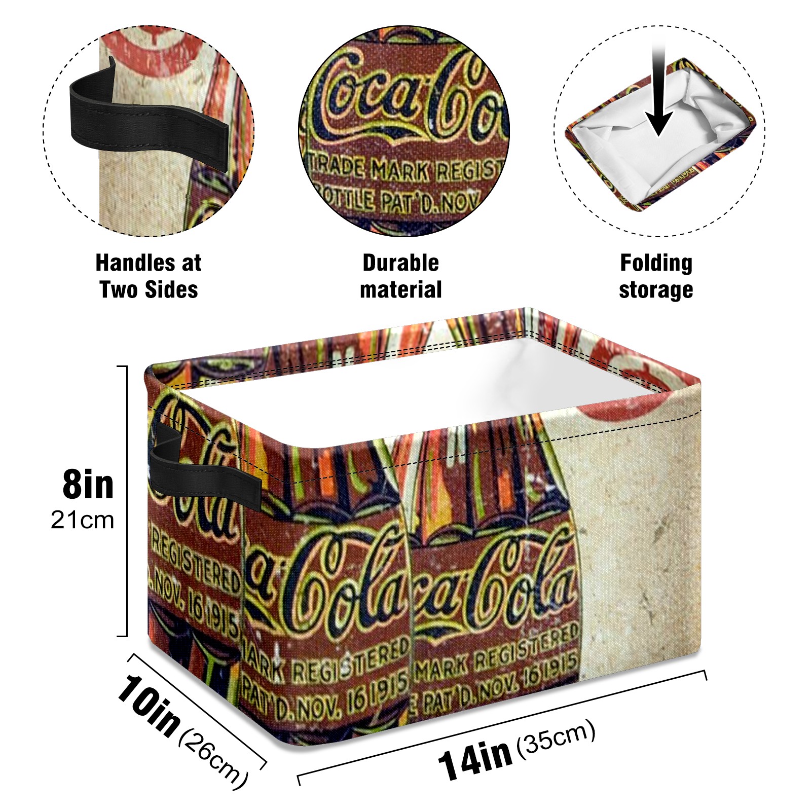 Collapsible 600D Oxford Storage Basket with Coke Printing - Metal Frame 10"x14"x8" Reinforced Handles, Multi-Purpose Organizer