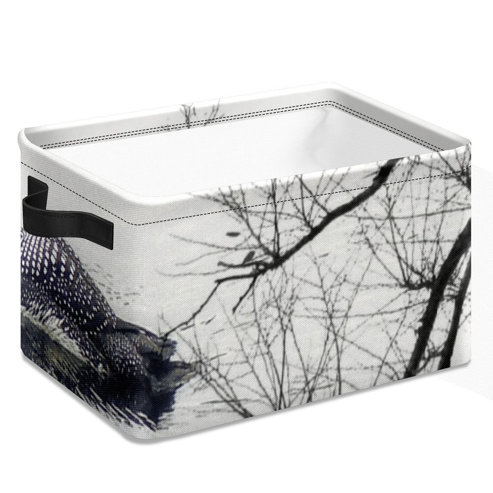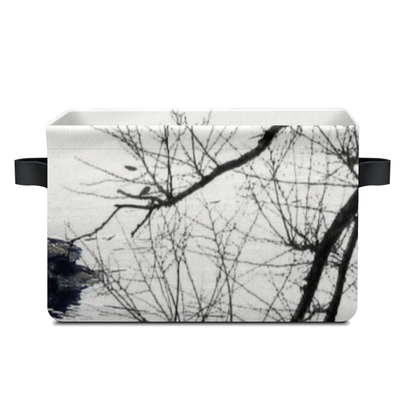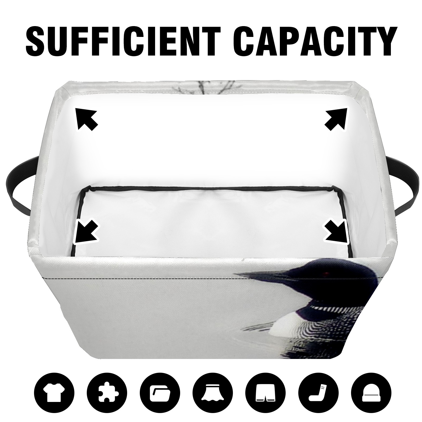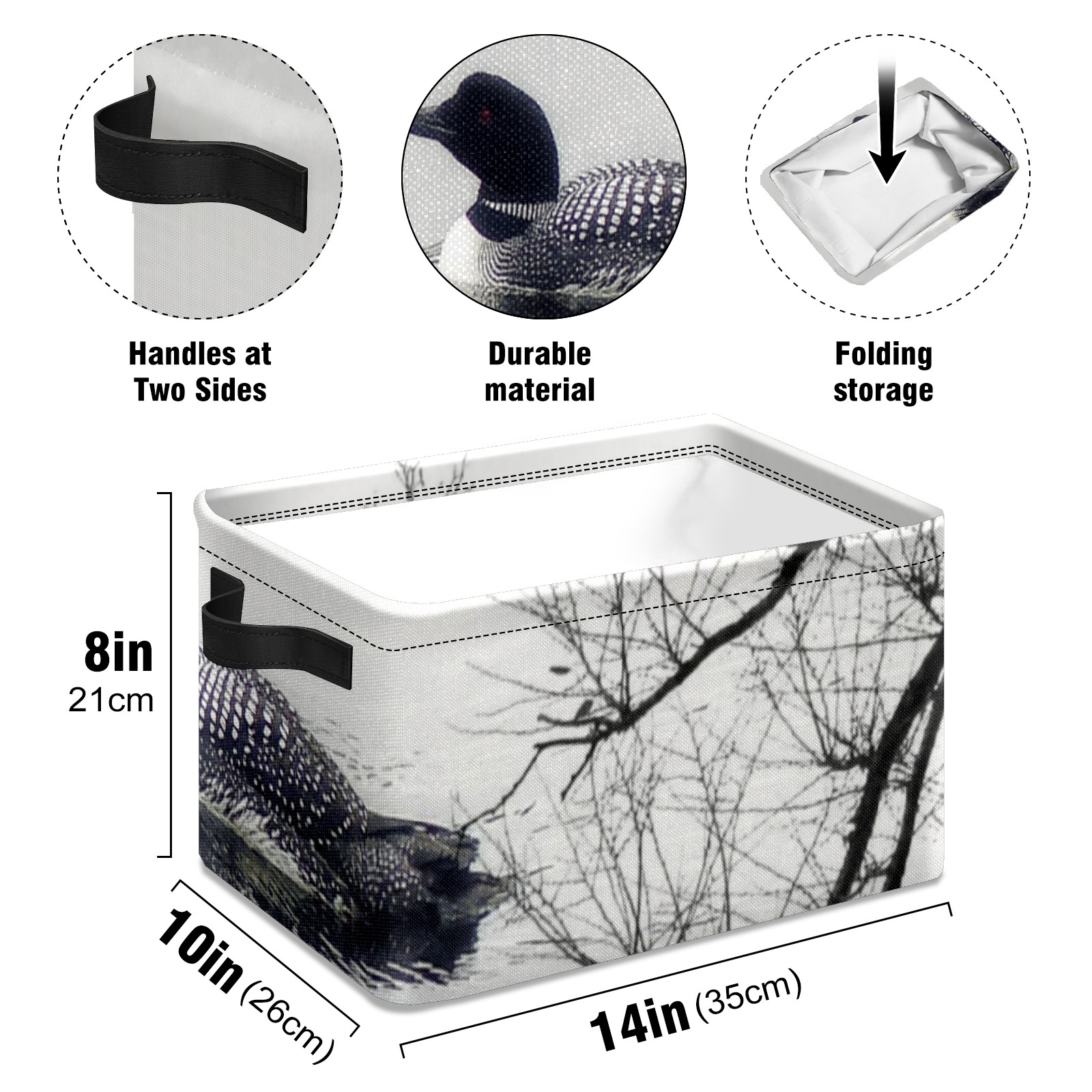 Collapsible 600D Oxford Storage Basket with Black And White Loon On A Lake - Metal Frame 10"x14"x8" Reinforced Handles, Multi-Purpose Organizer