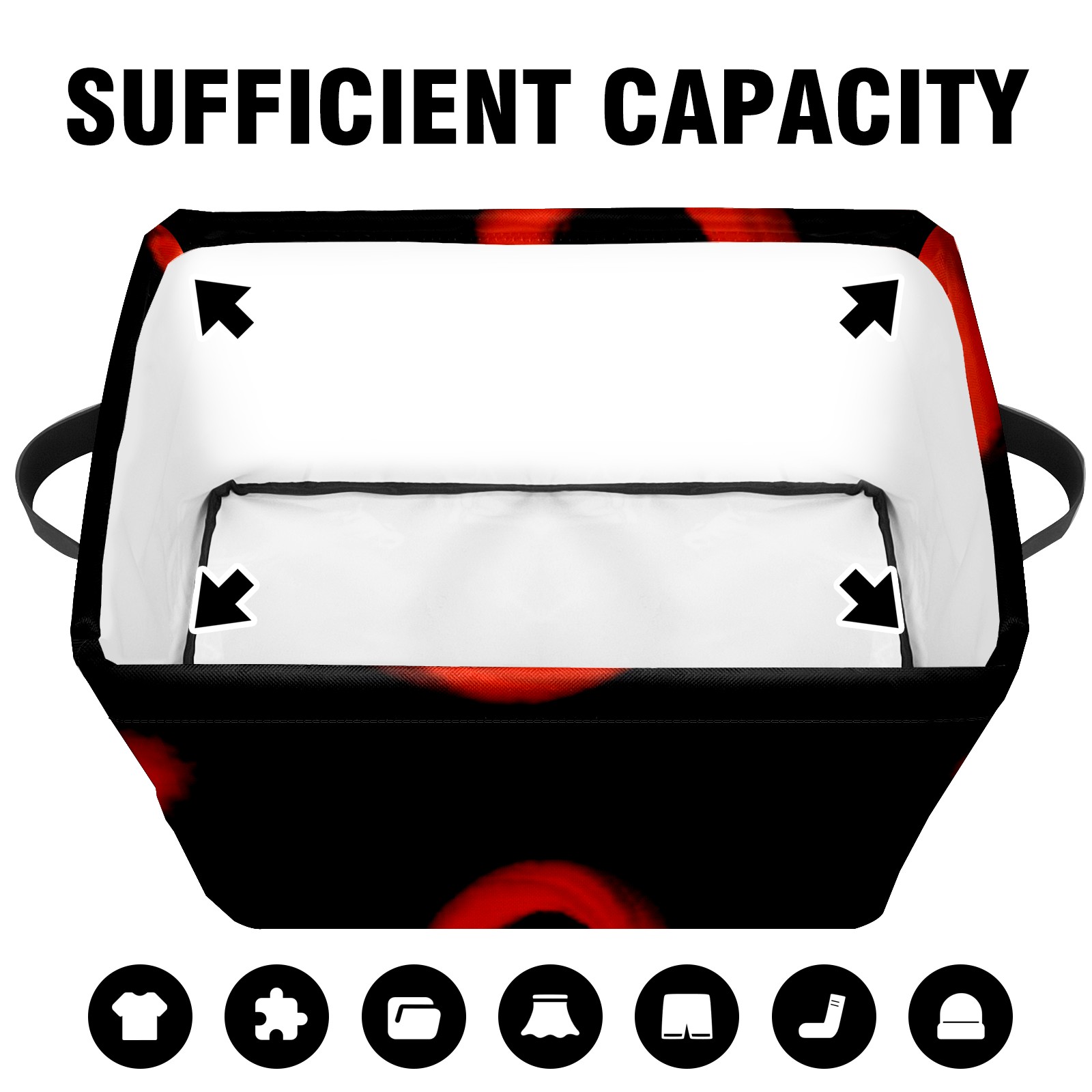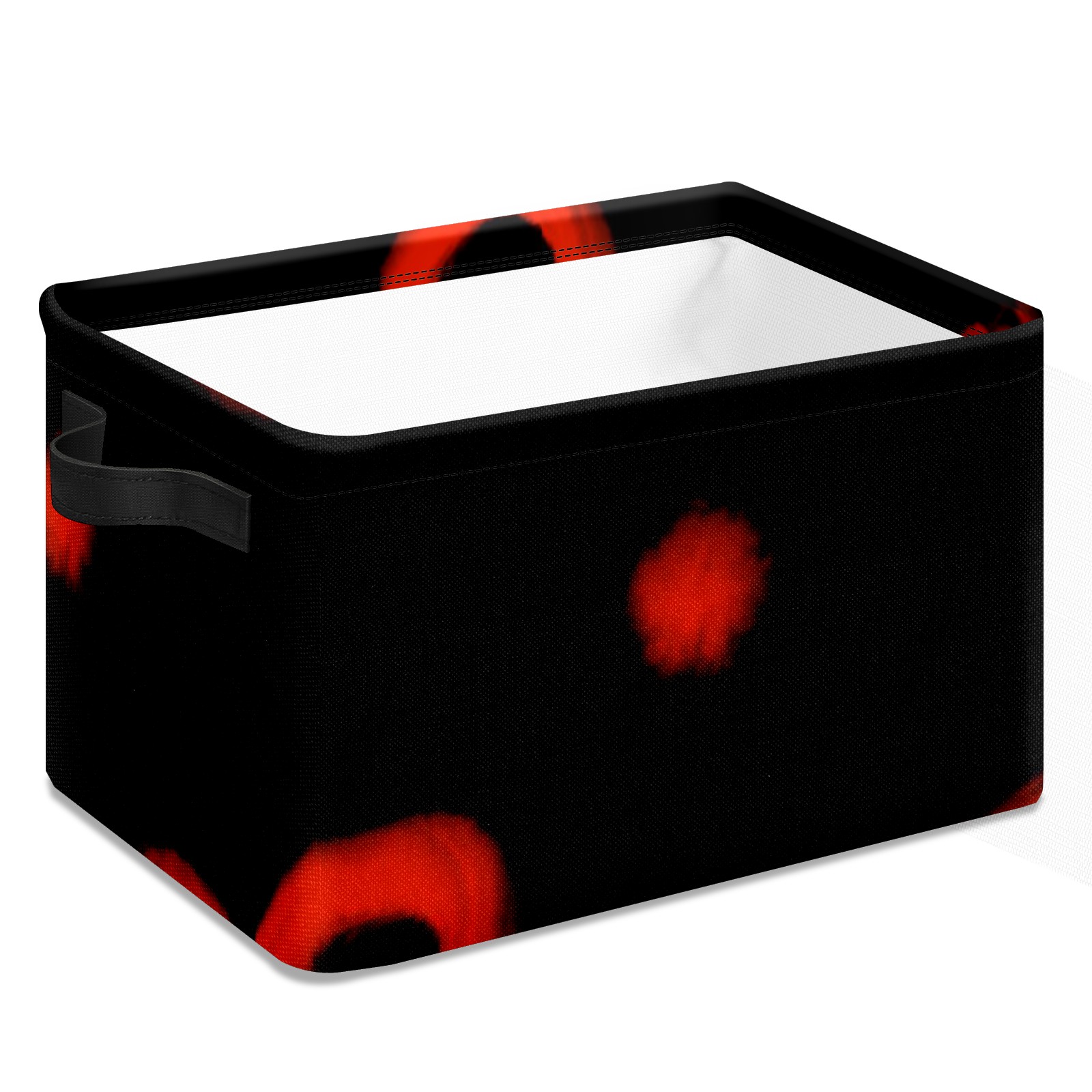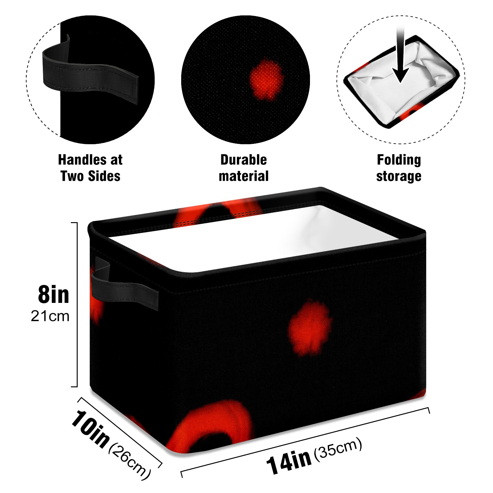 Collapsible 600D Oxford Storage Basket with Black And Red Valentines Day Hearts - Metal Frame 10"x14"x8" Reinforced Handles, Multi-Purpose Organizer