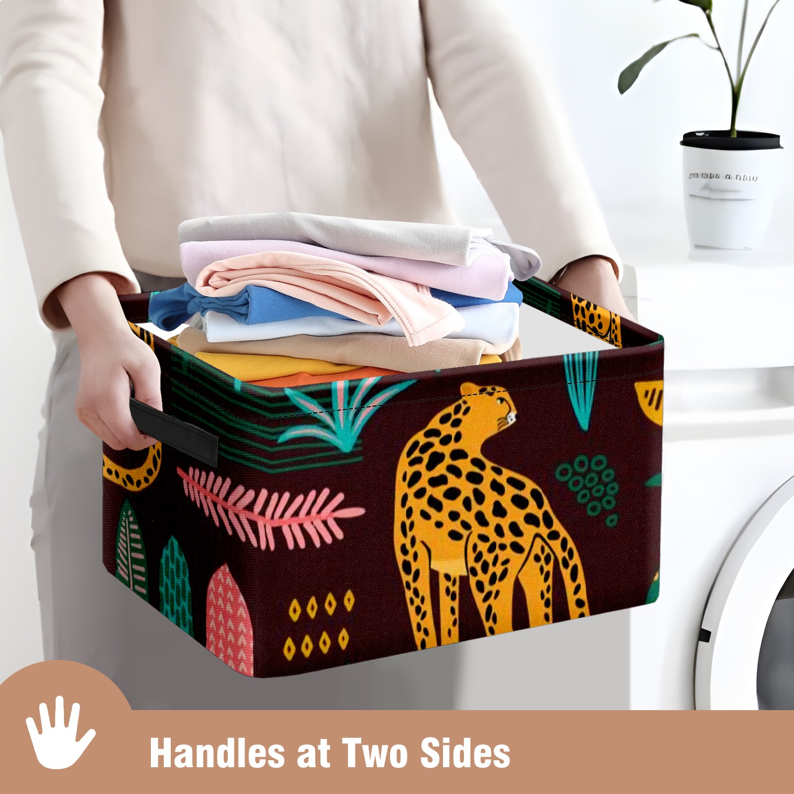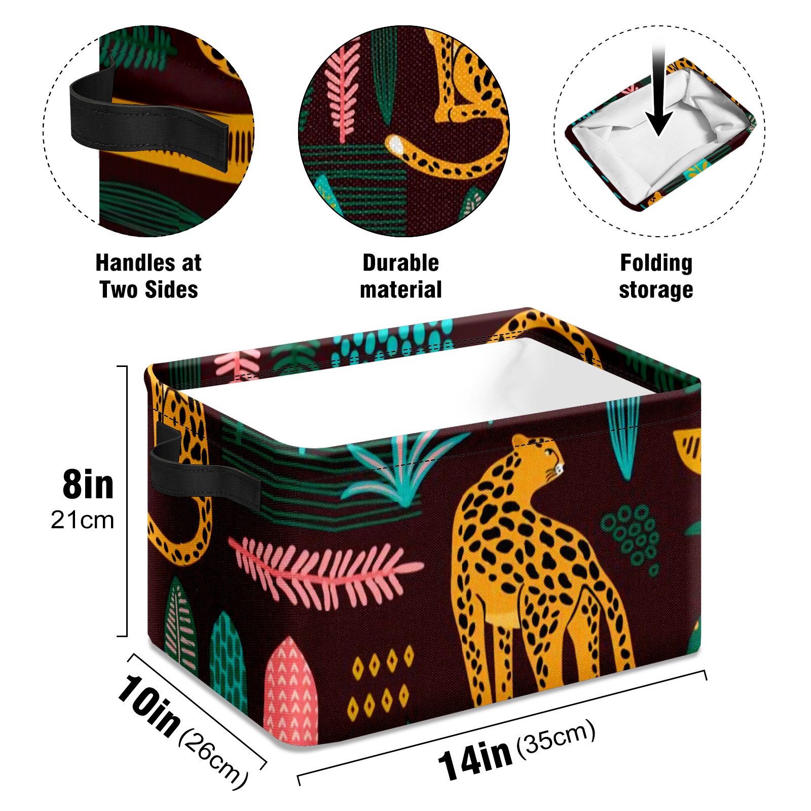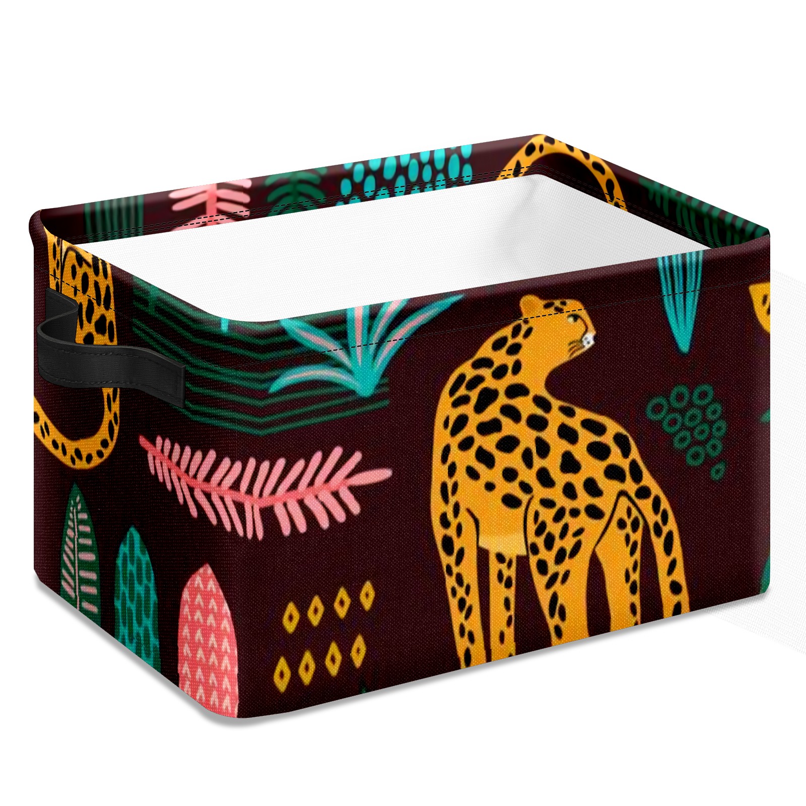 Collapsible 600D Oxford Storage Basket with Vestor-seamless-pattern-with-leopards-and-abstract-tropical-leaves-vector(noise_scale)(Level1)(x4.000000) - Metal Frame 10"x14"x8" Reinforced Handles, Multi-Purpose Organizer
