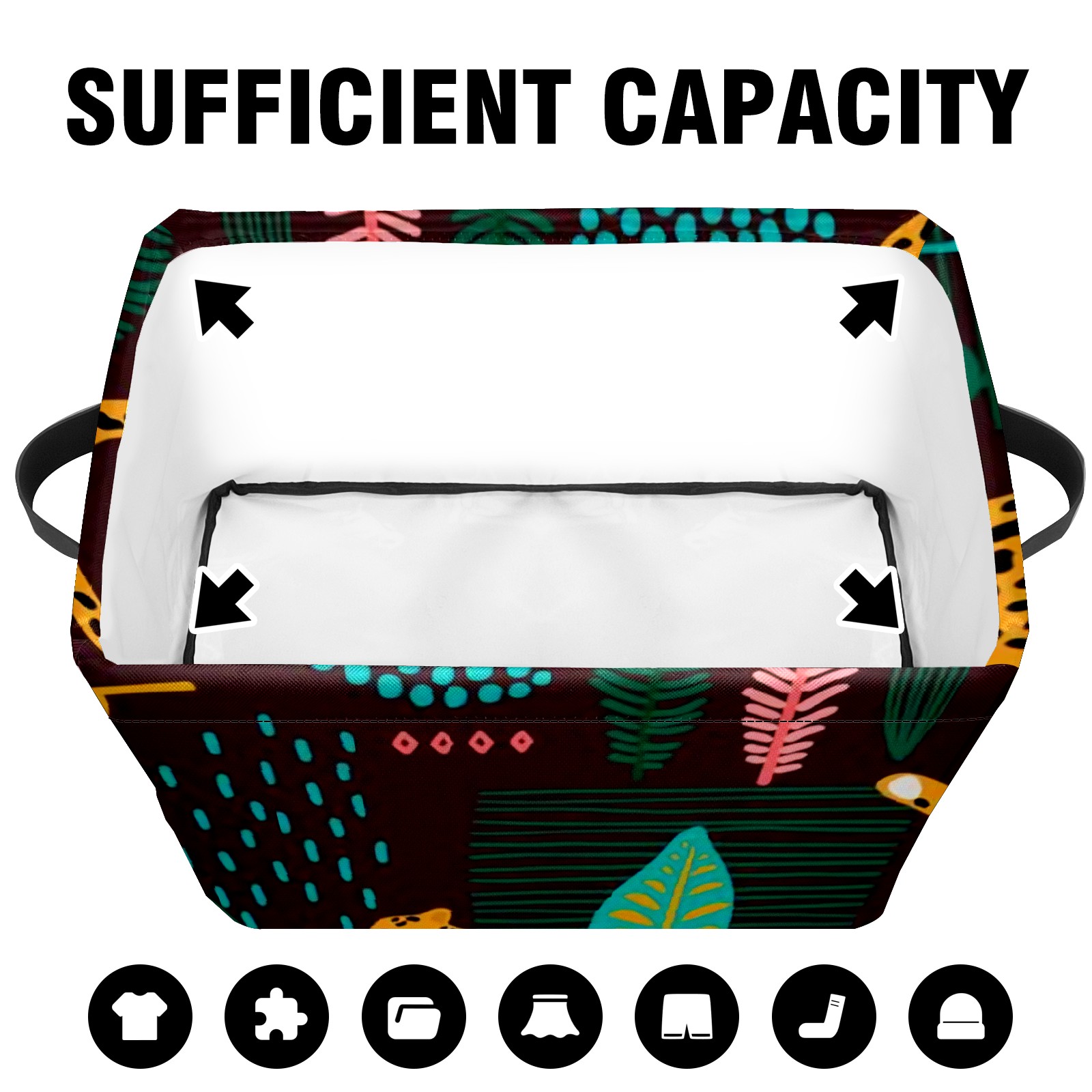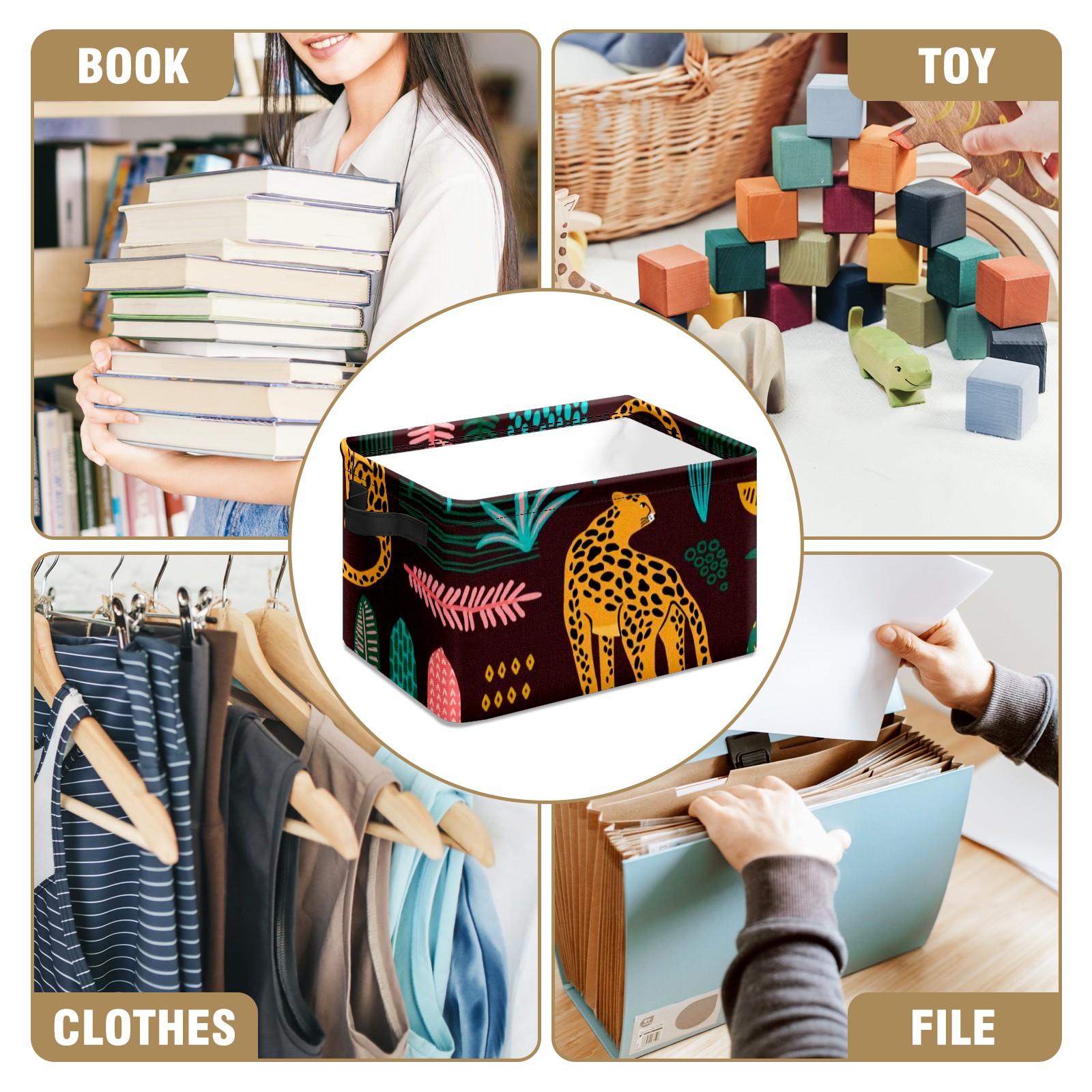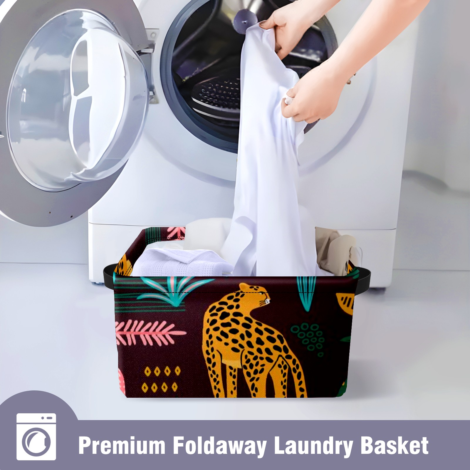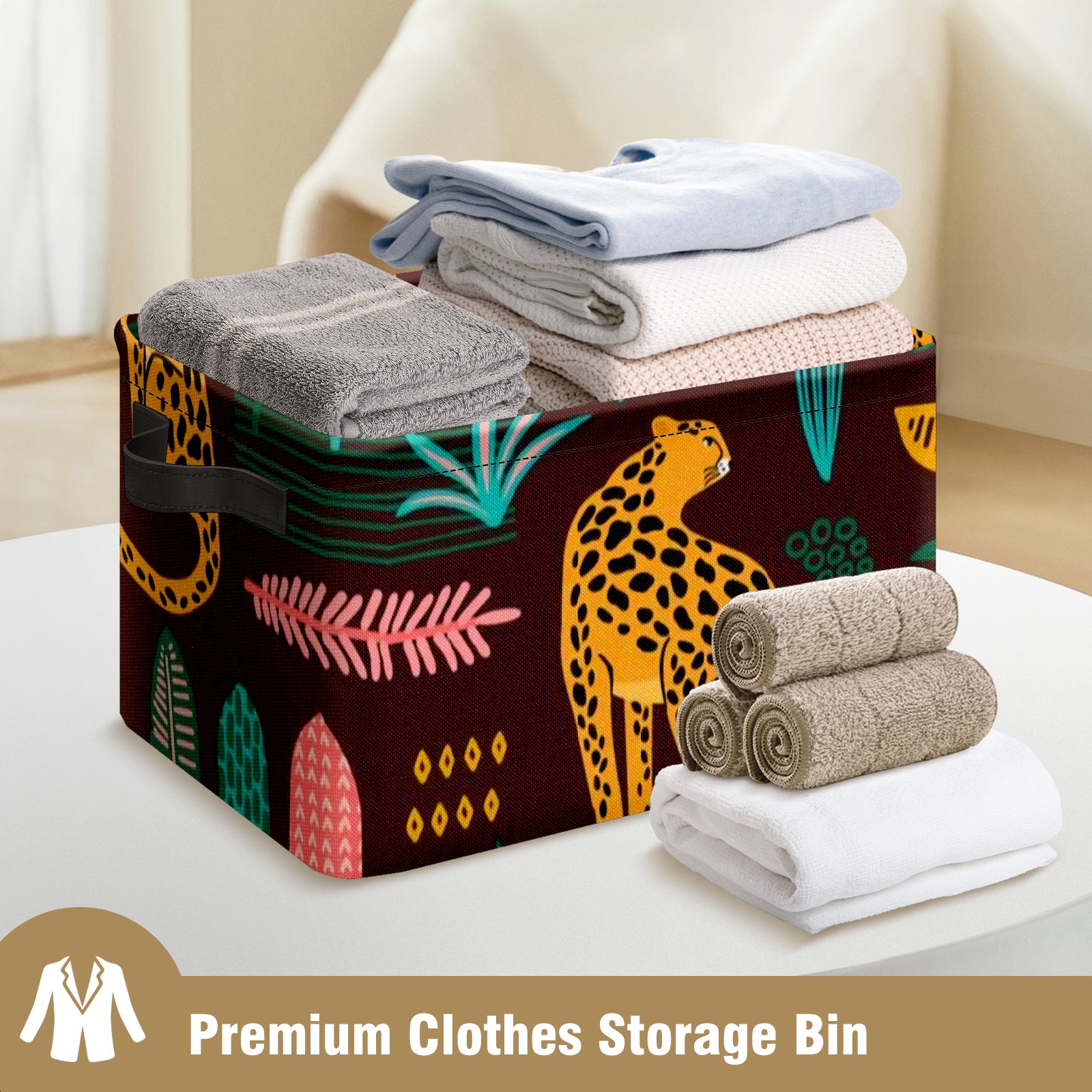 Collapsible 600D Oxford Storage Basket with Vestor-seamless-pattern-with-leopards-and-abstract-tropical-leaves-vector(noise_scale)(Level1)(x4.000000) - Metal Frame 10"x14"x8" Reinforced Handles, Multi-Purpose Organizer