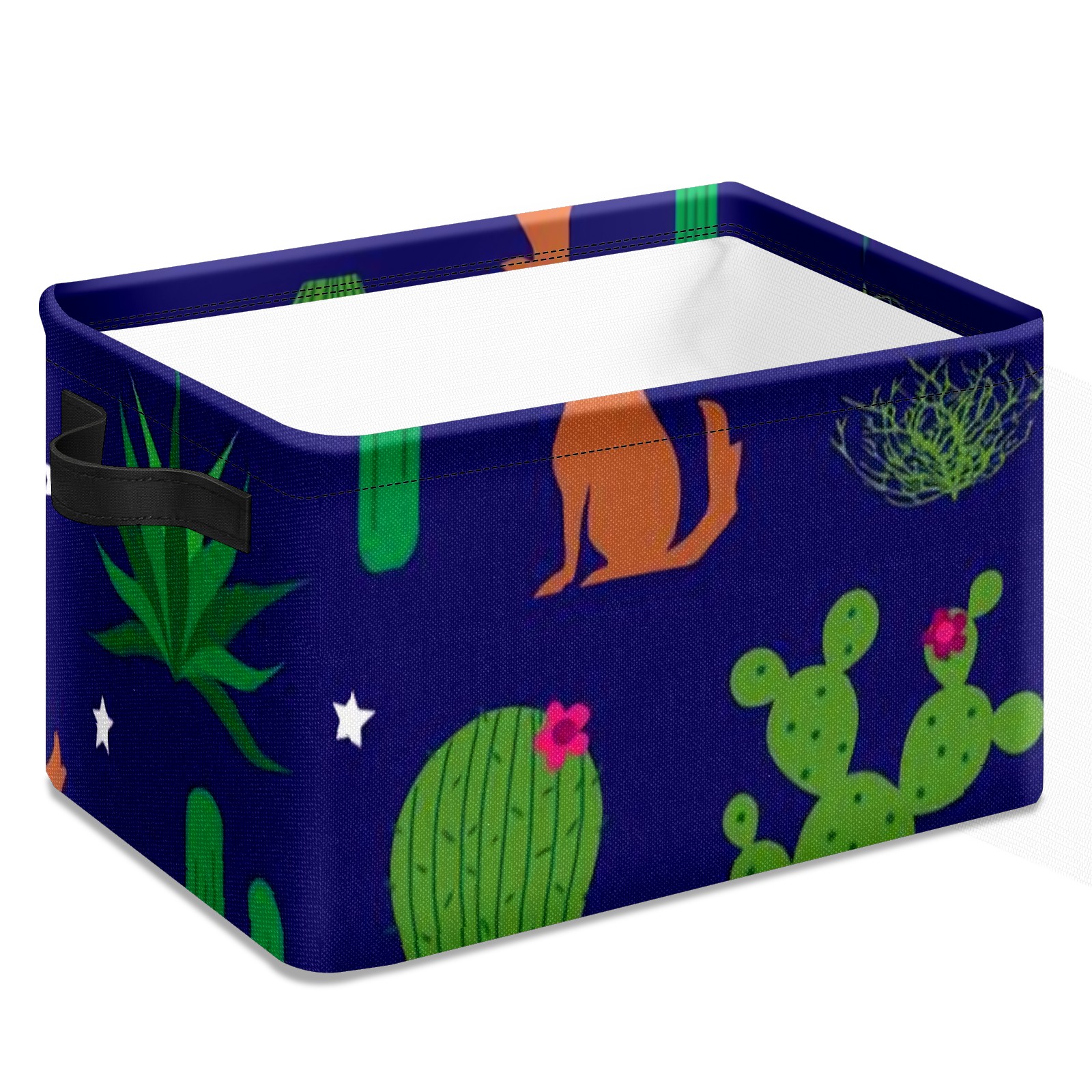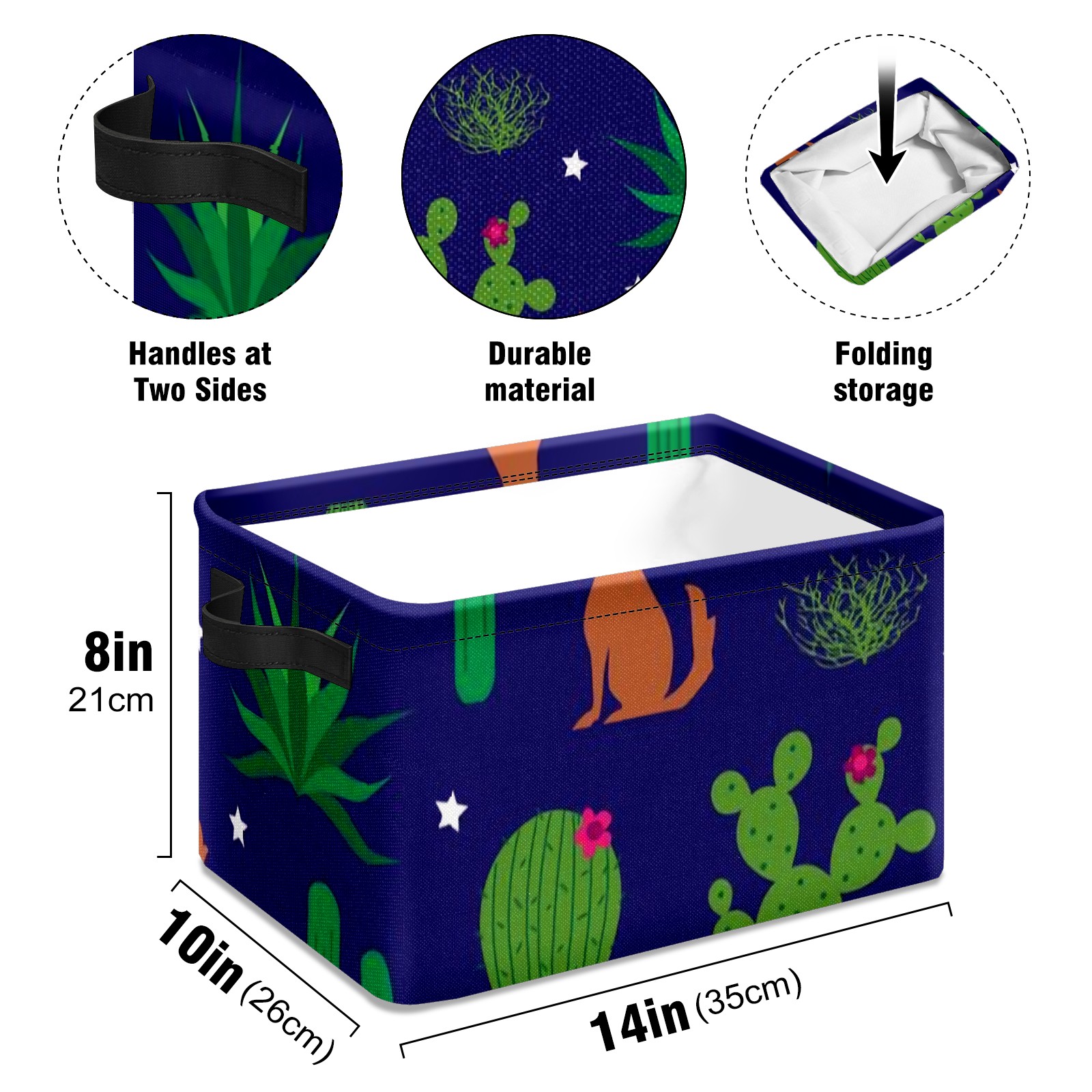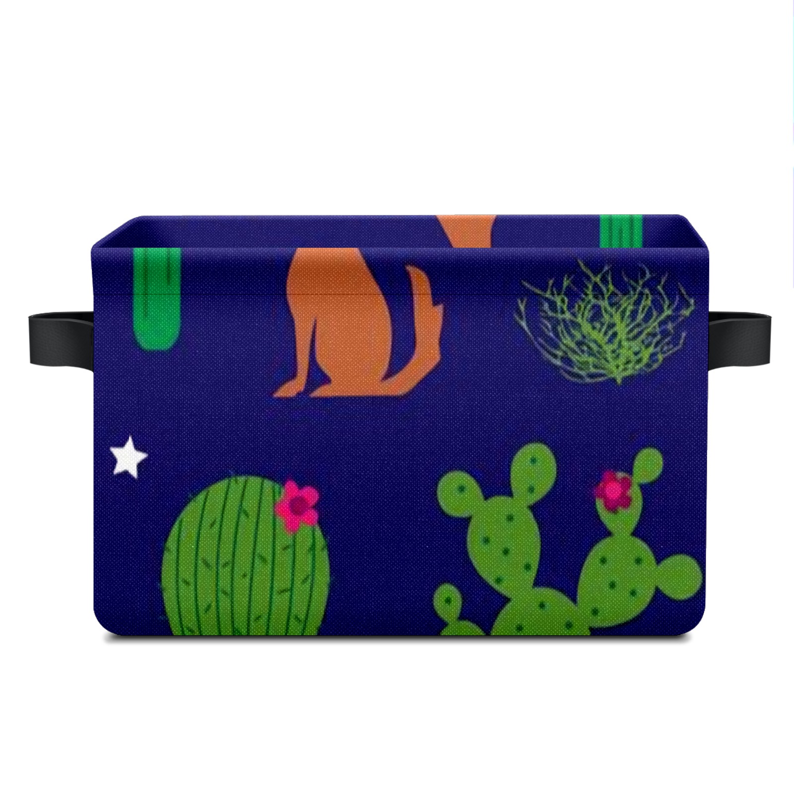 Collapsible 600D Oxford Storage Basket with Coyote-and-cactus-pattern-vector(noise_scale)(Level1)(x4.000000) - Metal Frame 10"x14"x8" Reinforced Handles, Multi-Purpose Organizer