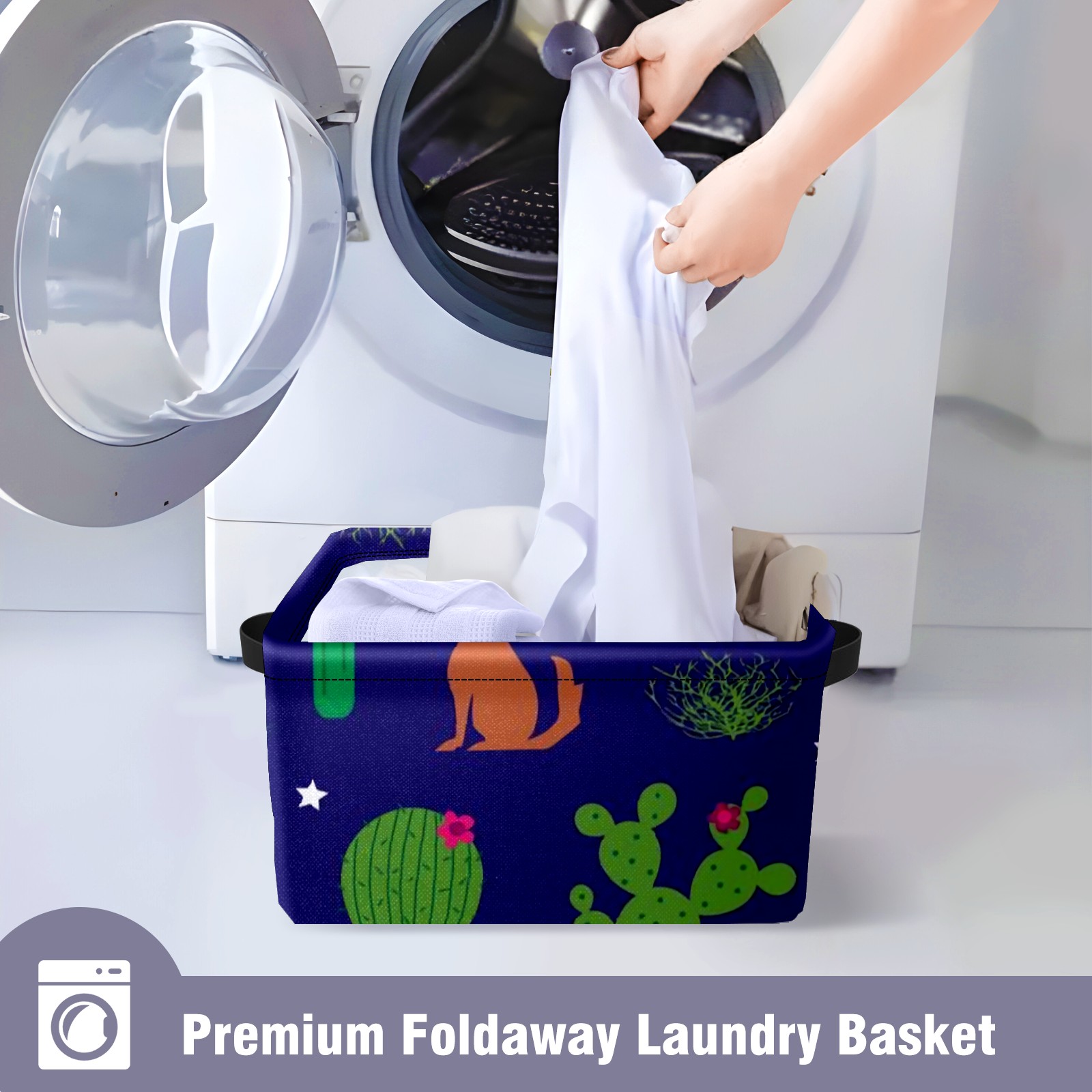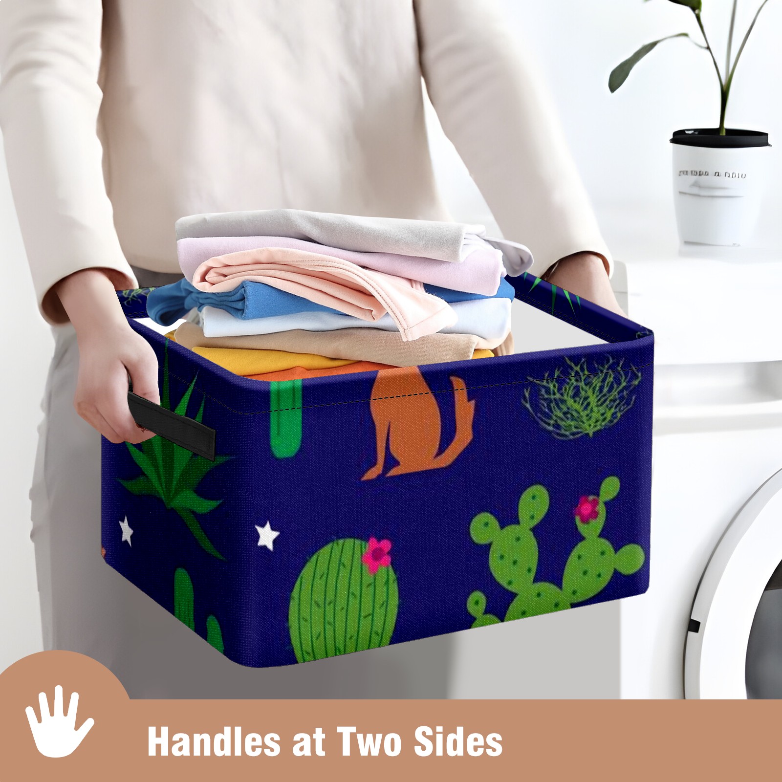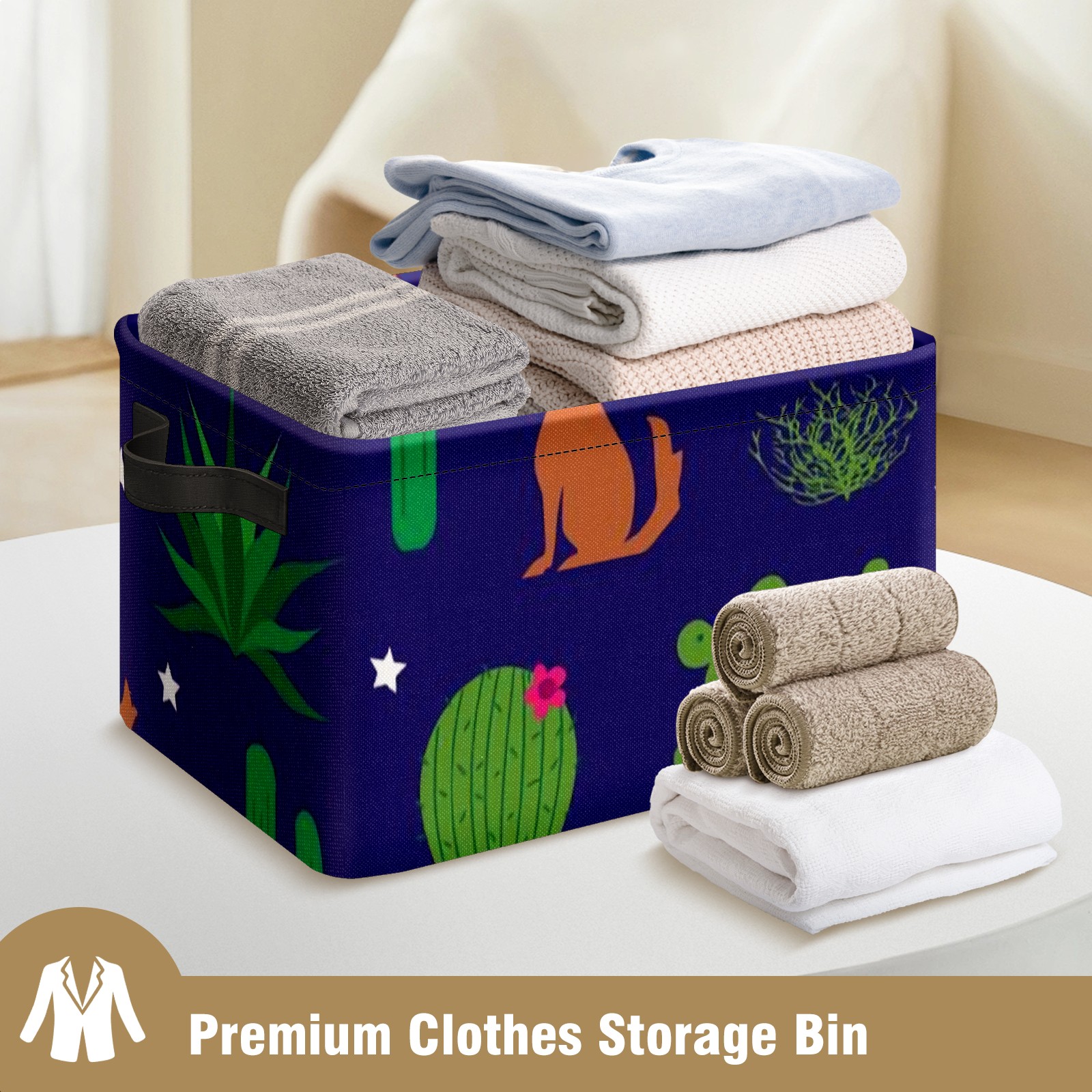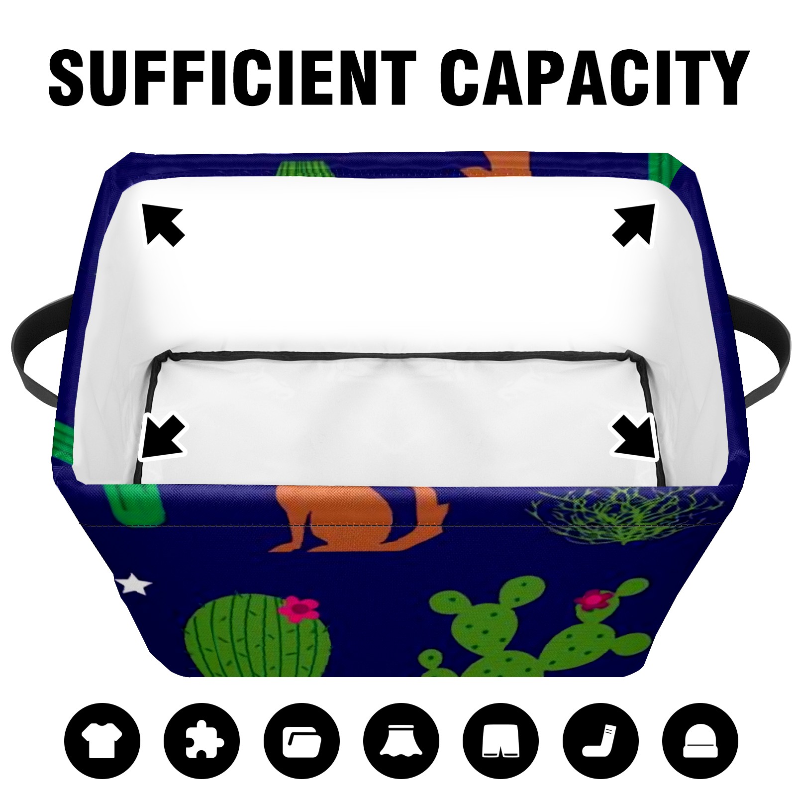 Collapsible 600D Oxford Storage Basket with Coyote-and-cactus-pattern-vector(noise_scale)(Level1)(x4.000000) - Metal Frame 10"x14"x8" Reinforced Handles, Multi-Purpose Organizer