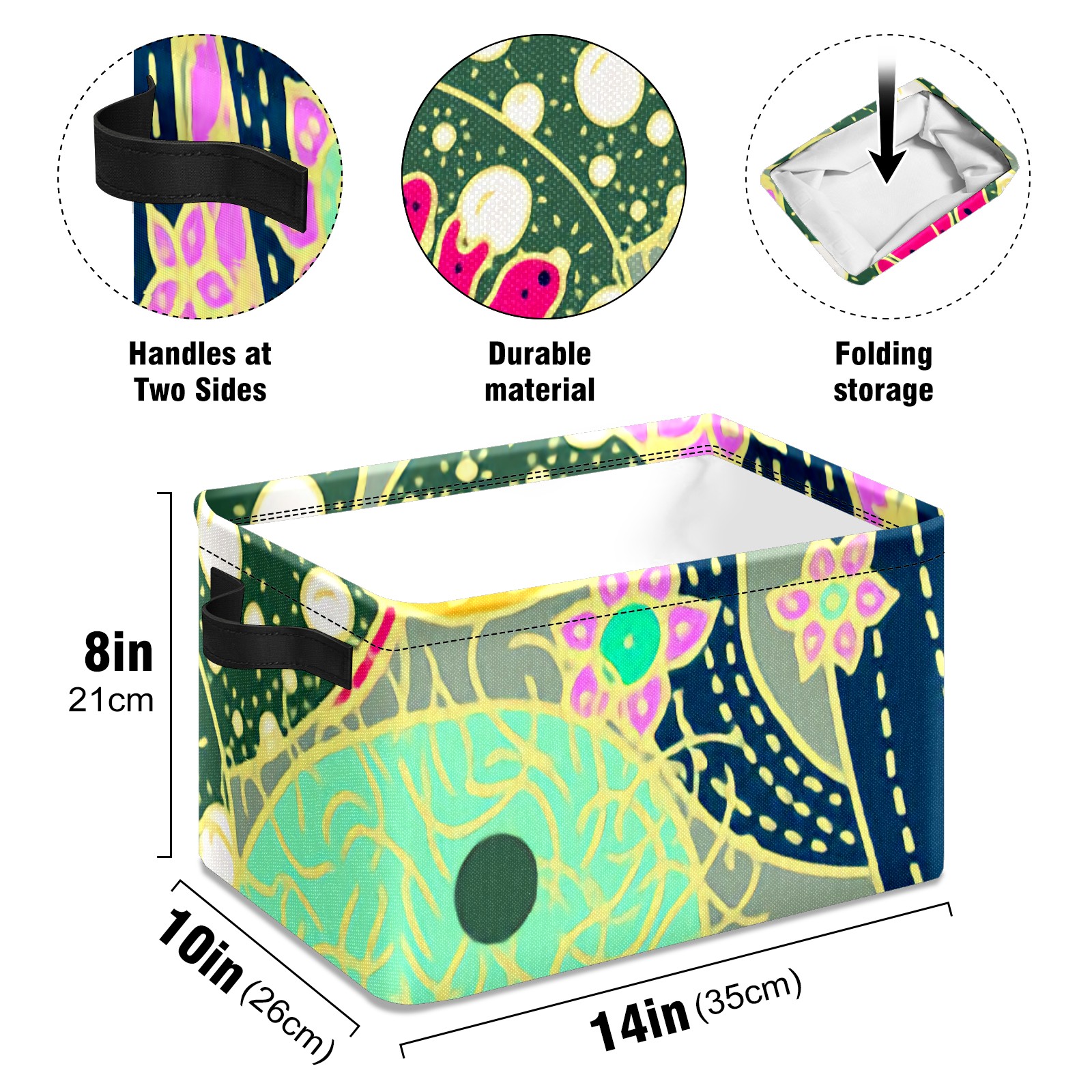 Collapsible 600D Oxford Storage Basket with 0-2790380017_sh4677 - Metal Frame 10"x14"x8" Reinforced Handles, Multi-Purpose Organizer