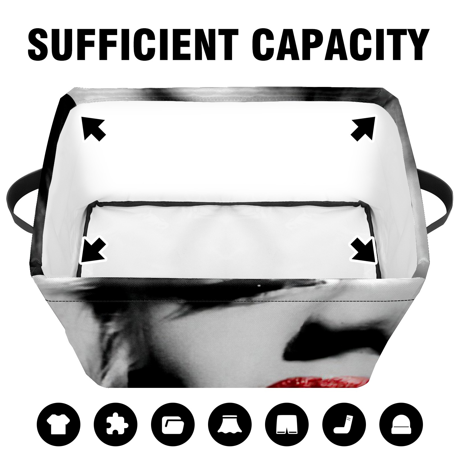 Collapsible 600D Oxford Storage Basket with Marilyn Monroe - Metal Frame 10"x14"x8" Reinforced Handles, Multi-Purpose Organizer