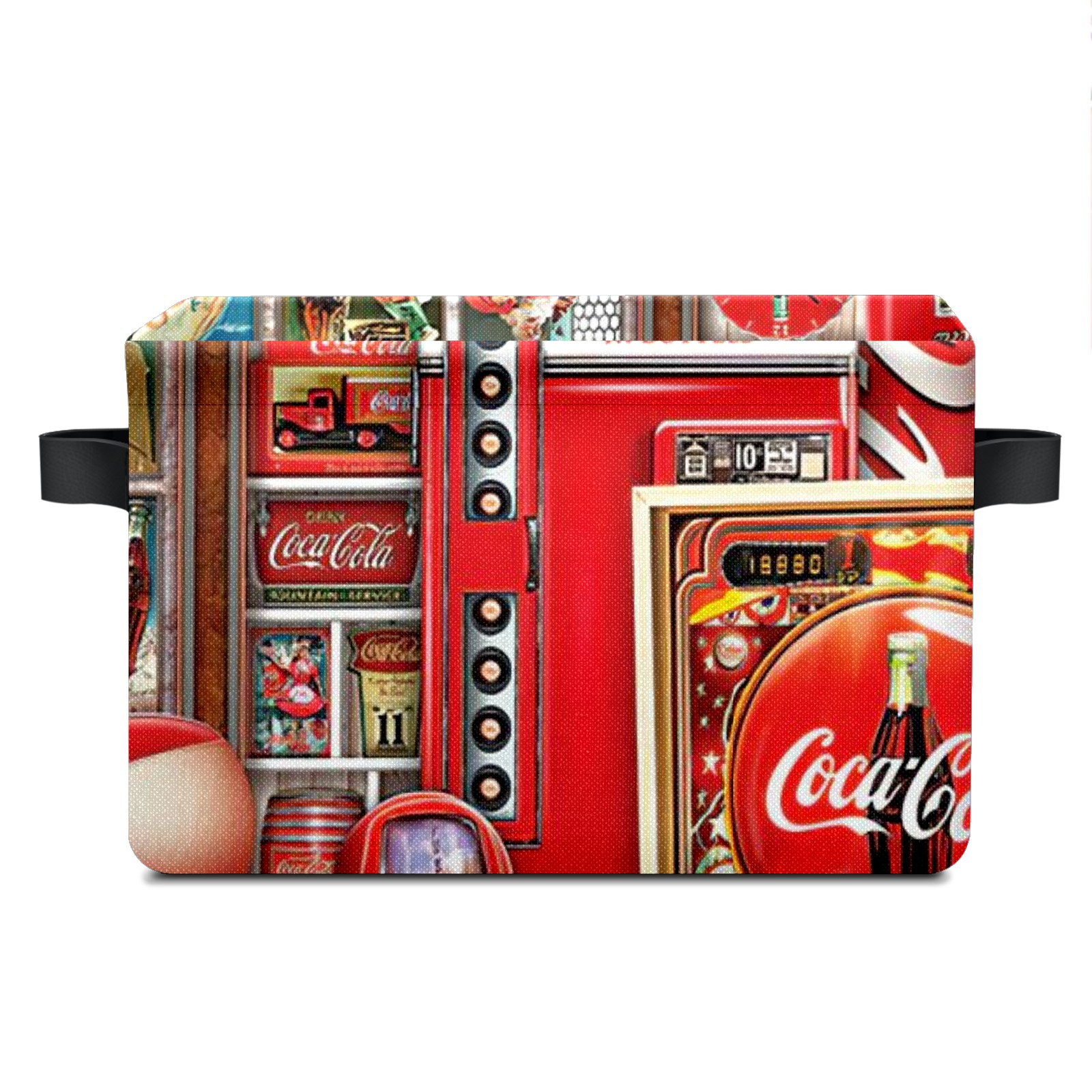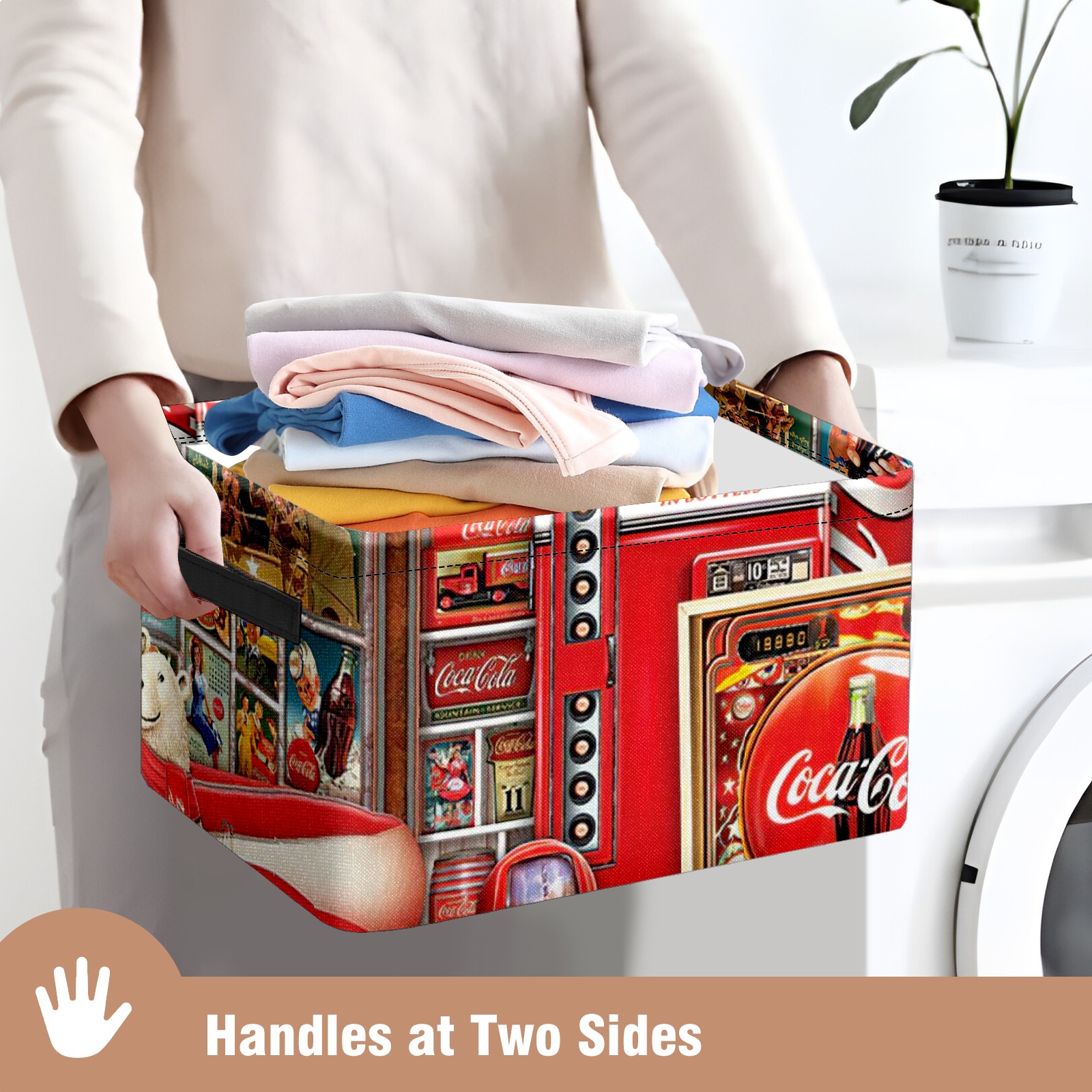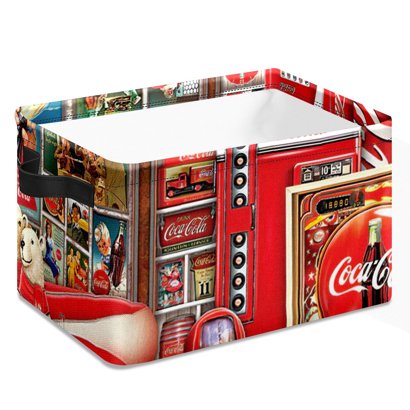 Collapsible 600D Oxford Storage Basket with Coke Bear - Metal Frame 10"x14"x8" Reinforced Handles, Multi-Purpose Organizer