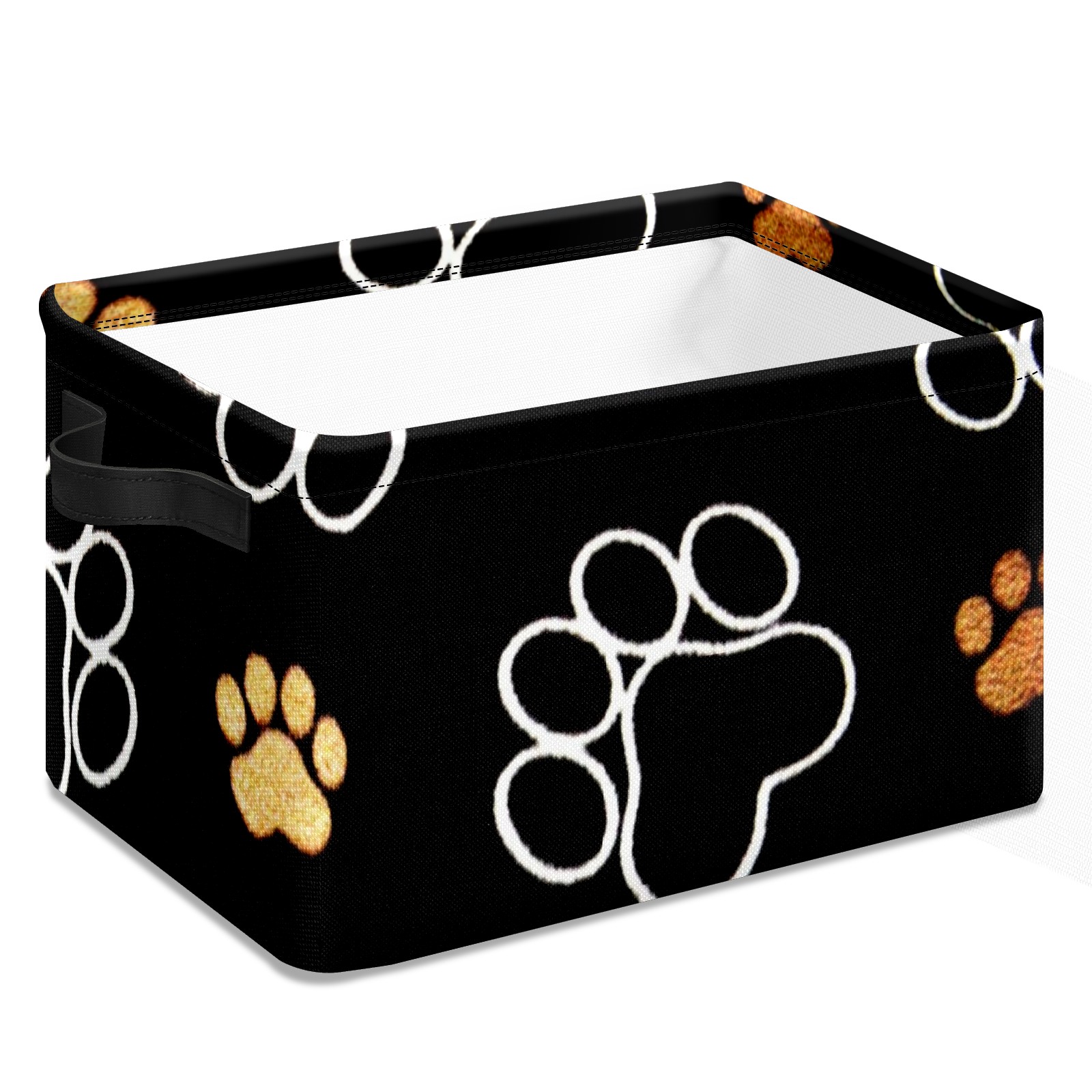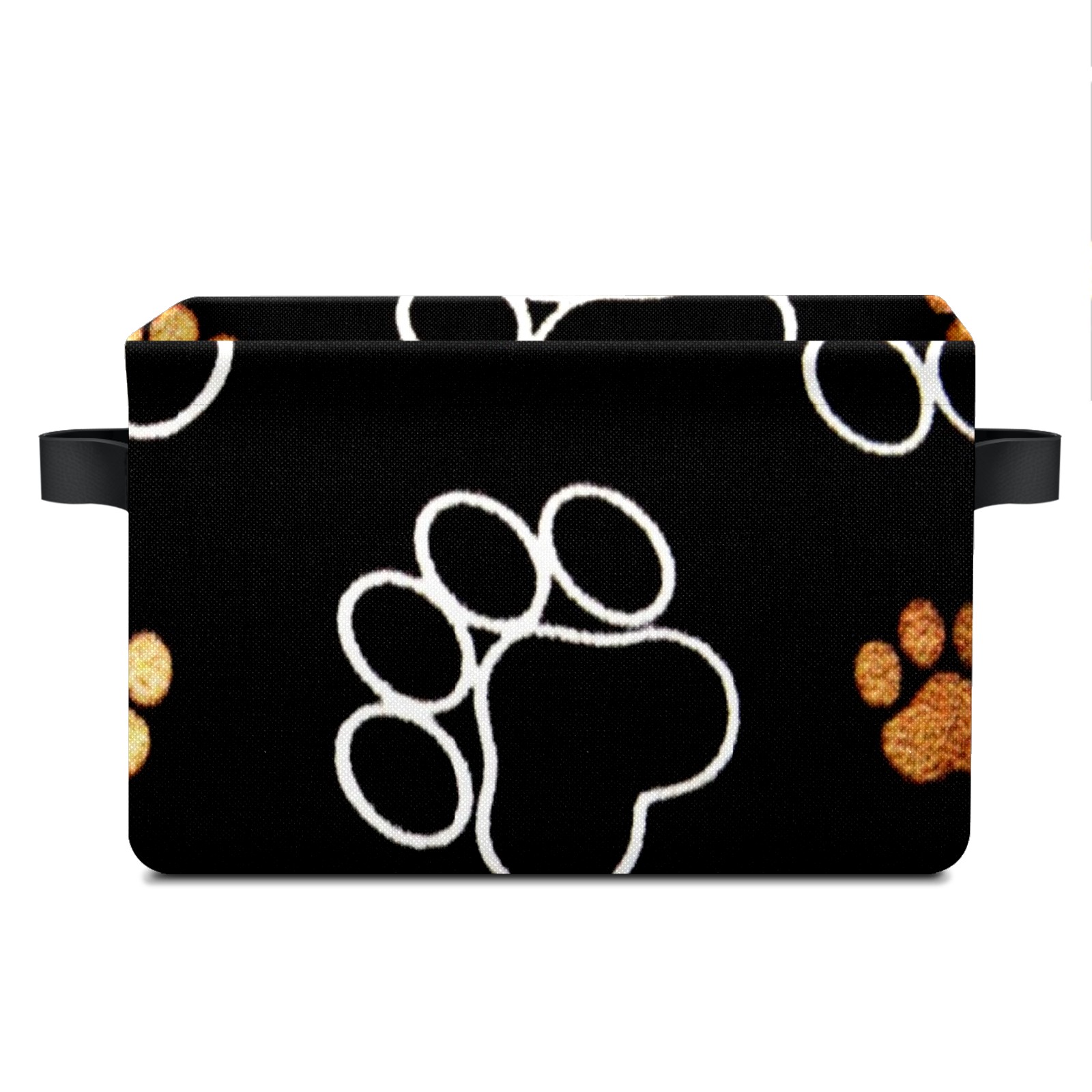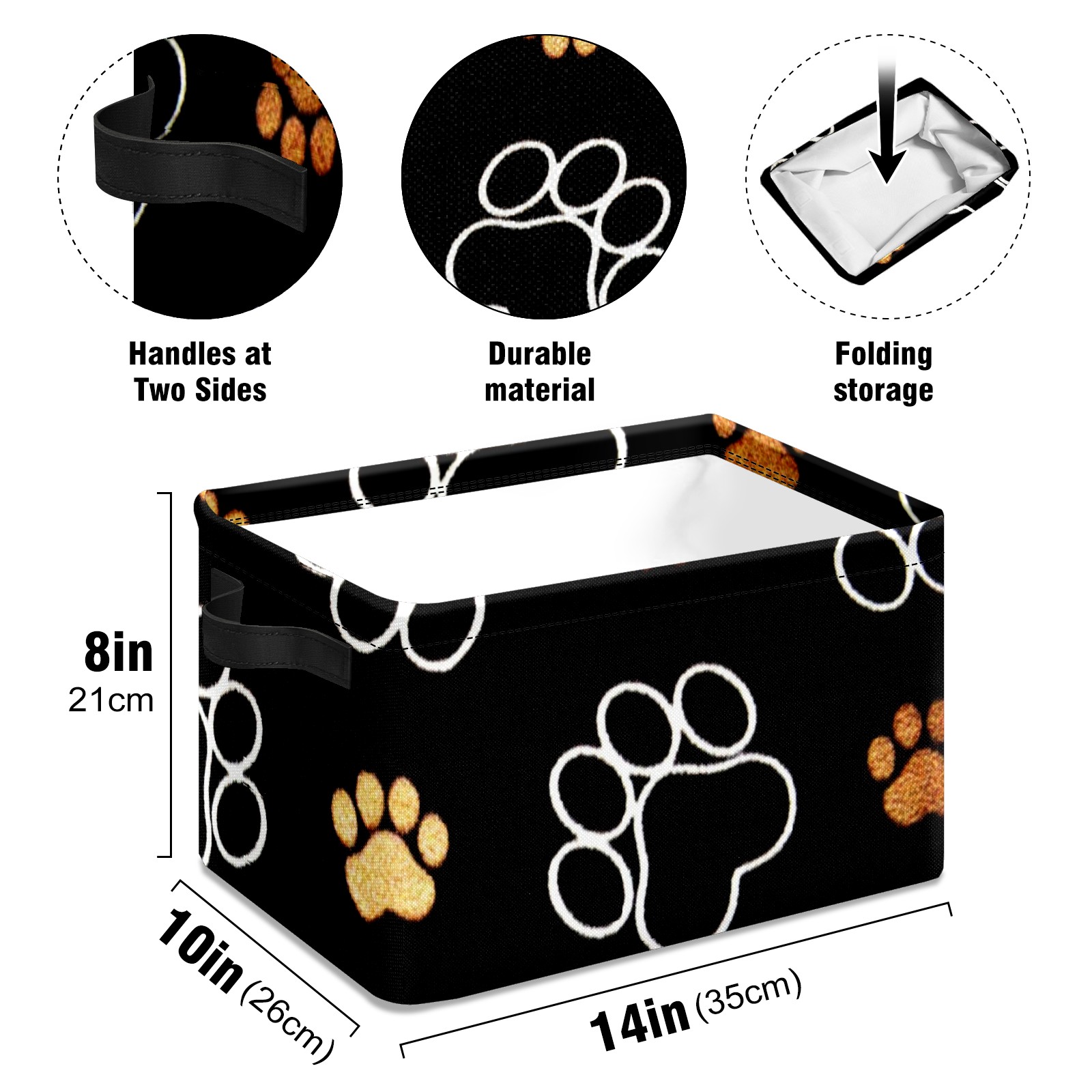 Collapsible 600D Oxford Storage Basket with Dog Pet Pawprint Tracks - Metal Frame 10"x14"x8" Reinforced Handles, Multi-Purpose Organizer