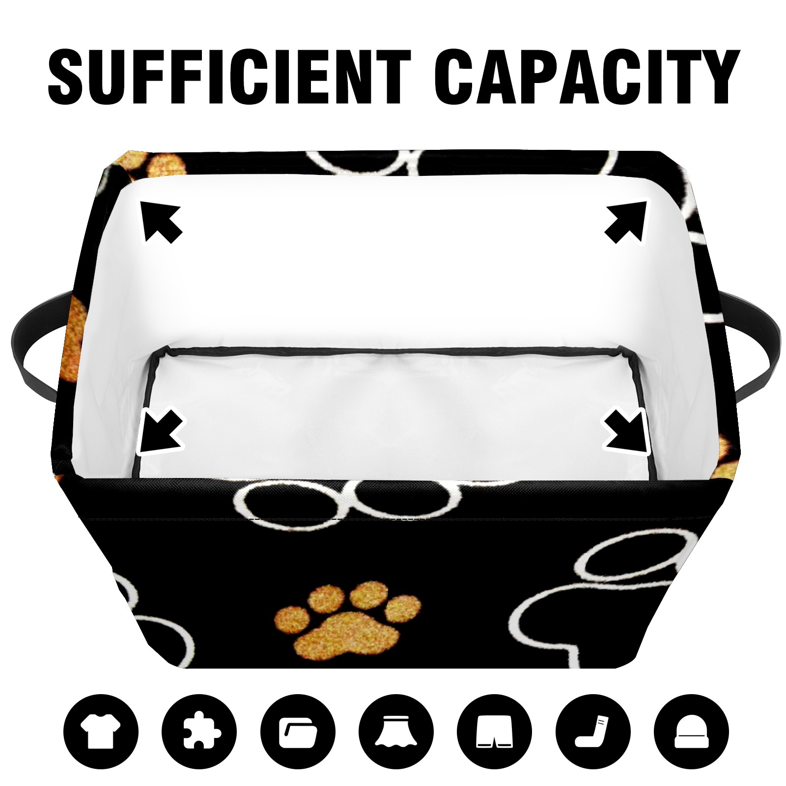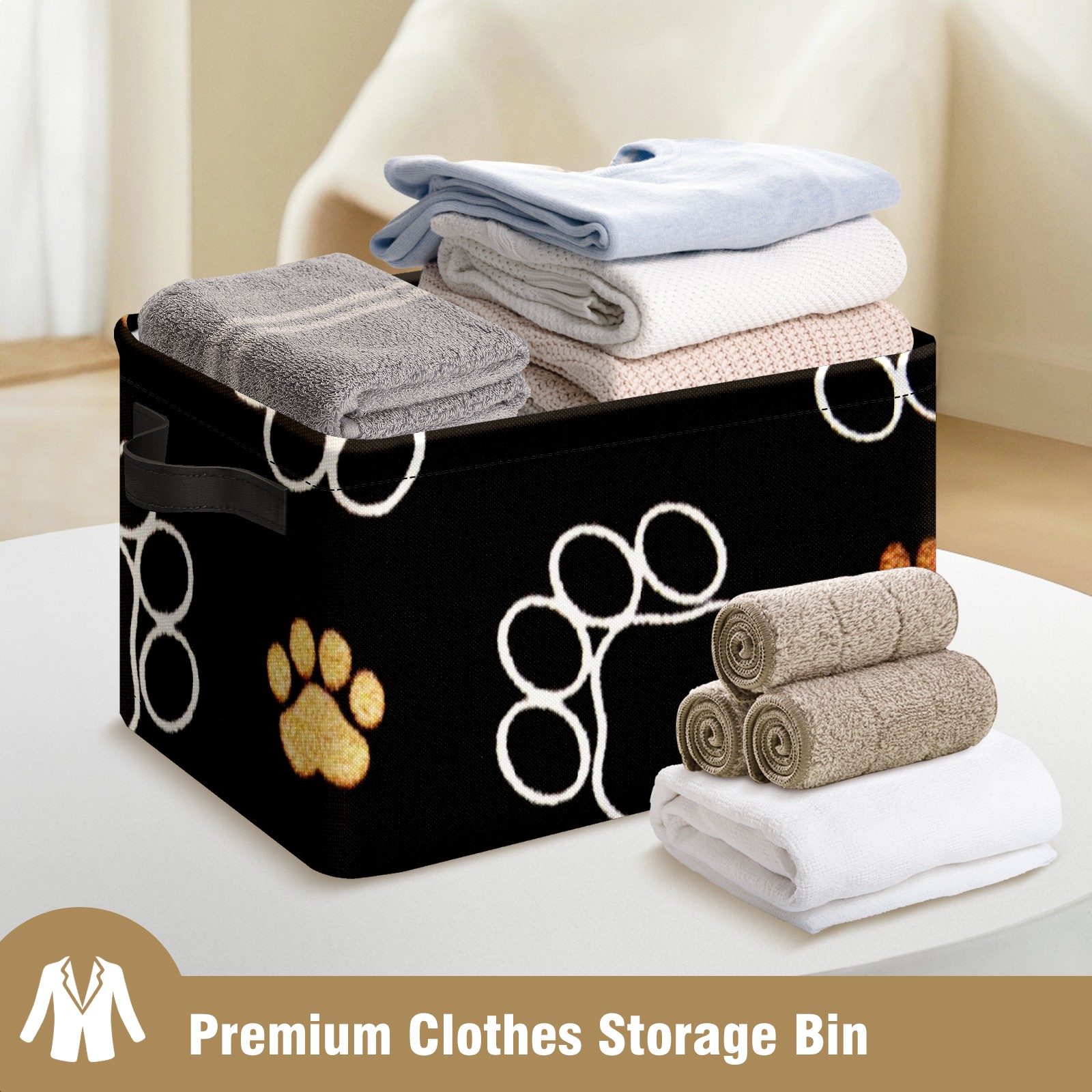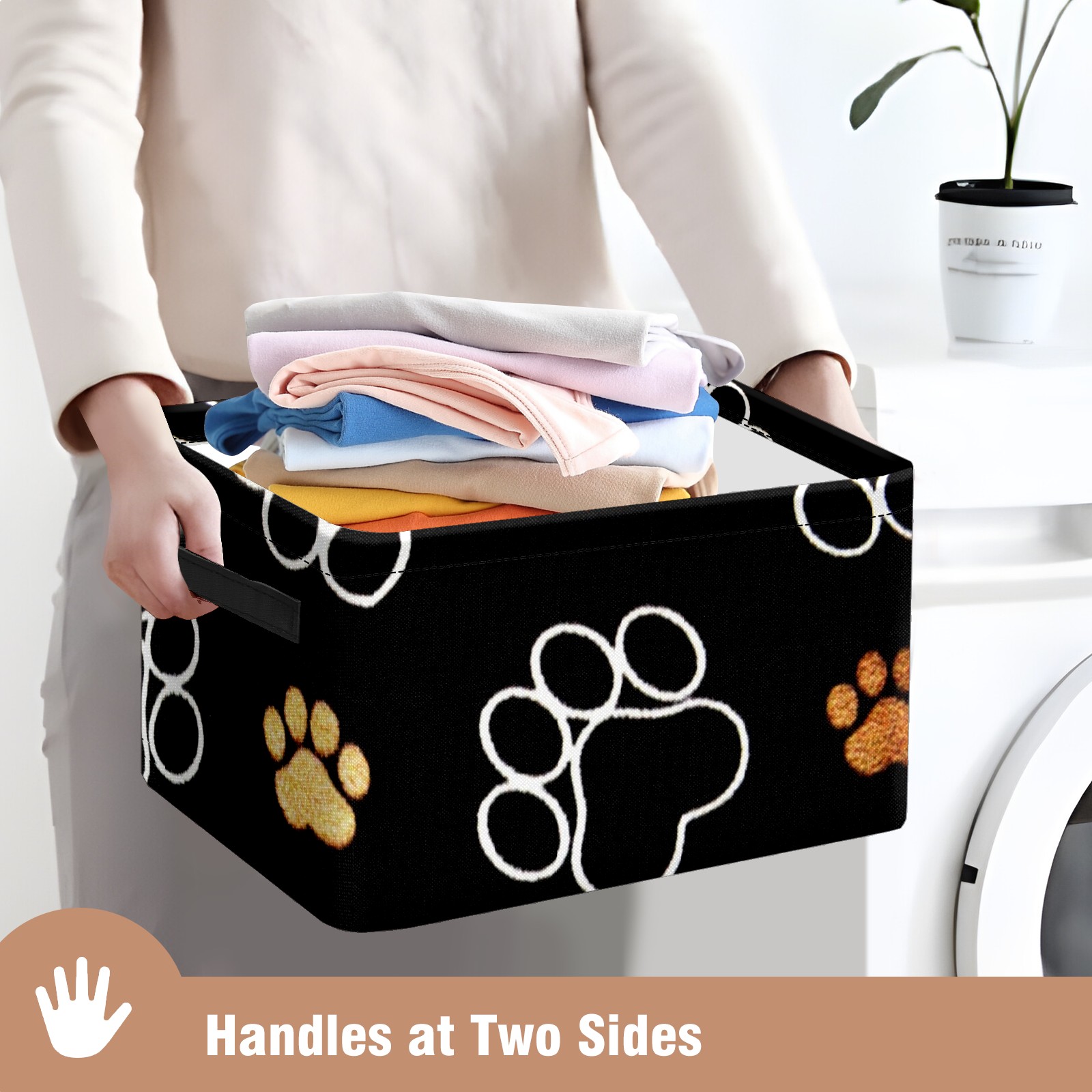 Collapsible 600D Oxford Storage Basket with Dog Pet Pawprint Tracks - Metal Frame 10"x14"x8" Reinforced Handles, Multi-Purpose Organizer