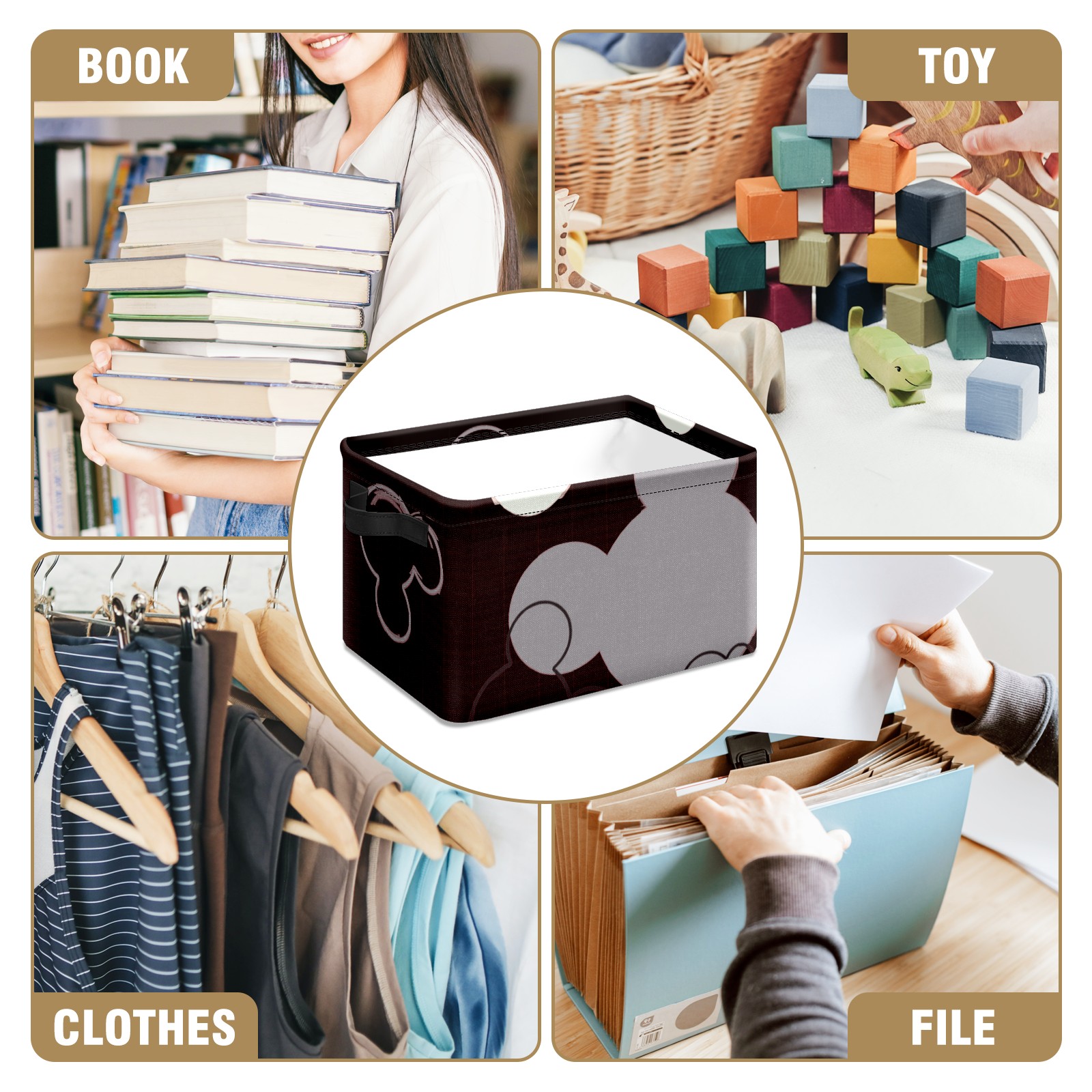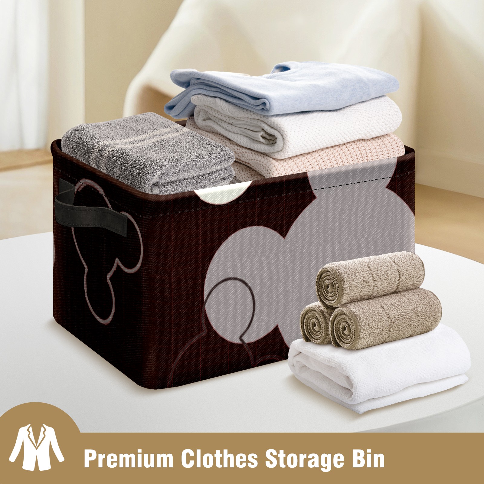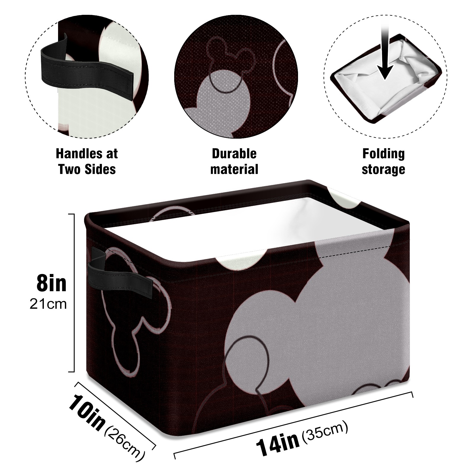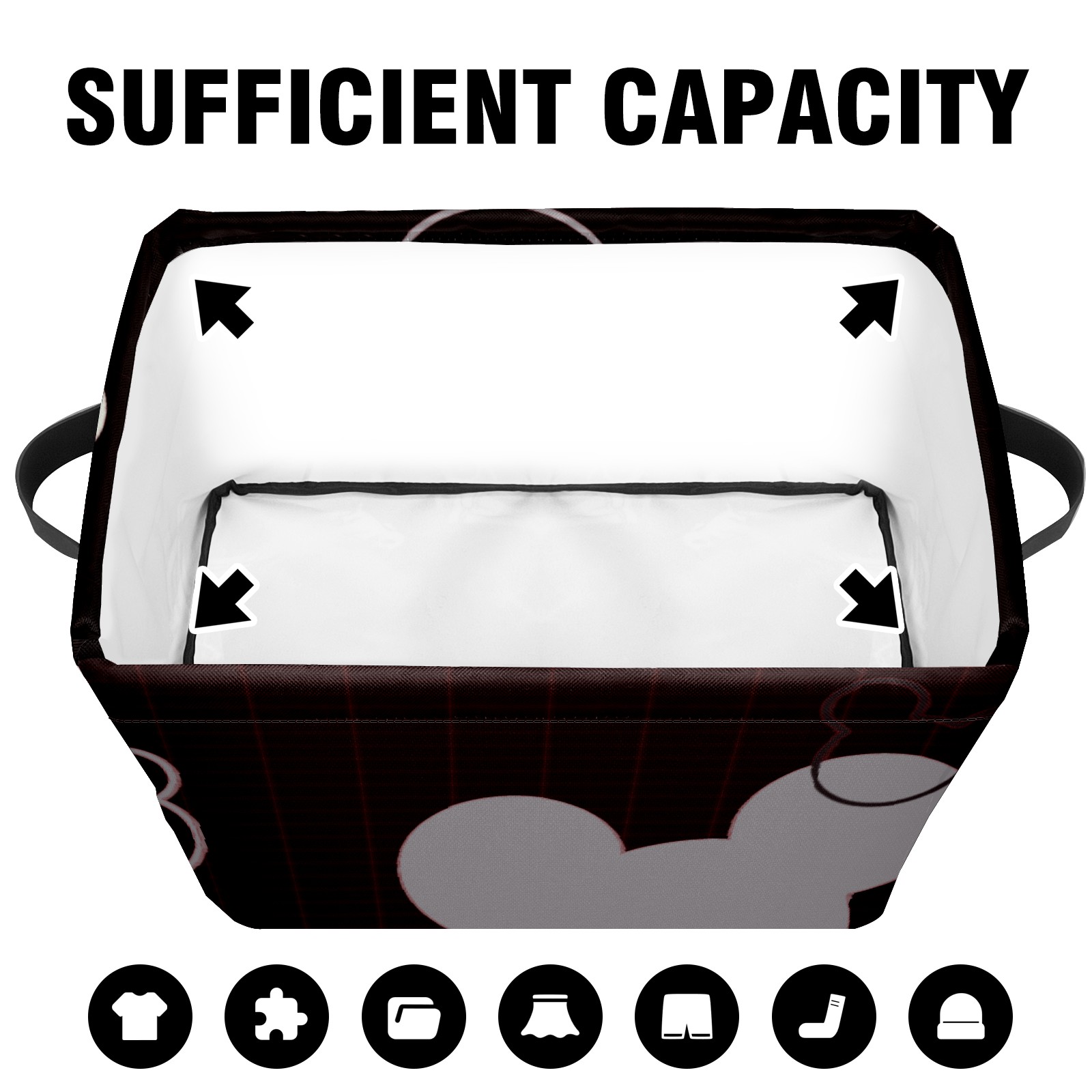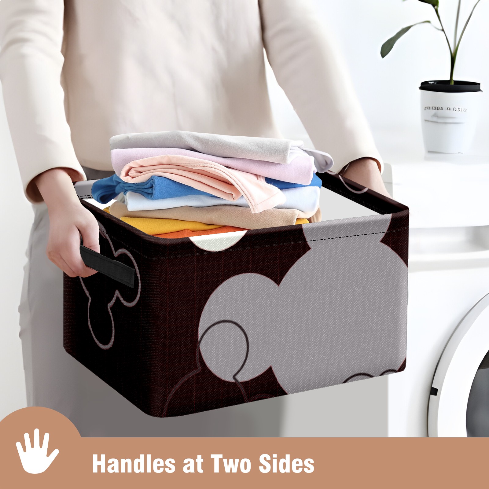 Collapsible 600D Oxford Storage Basket with Grey White Mickey Mouse - Metal Frame 10"x14"x8" Reinforced Handles, Multi-Purpose Organizer