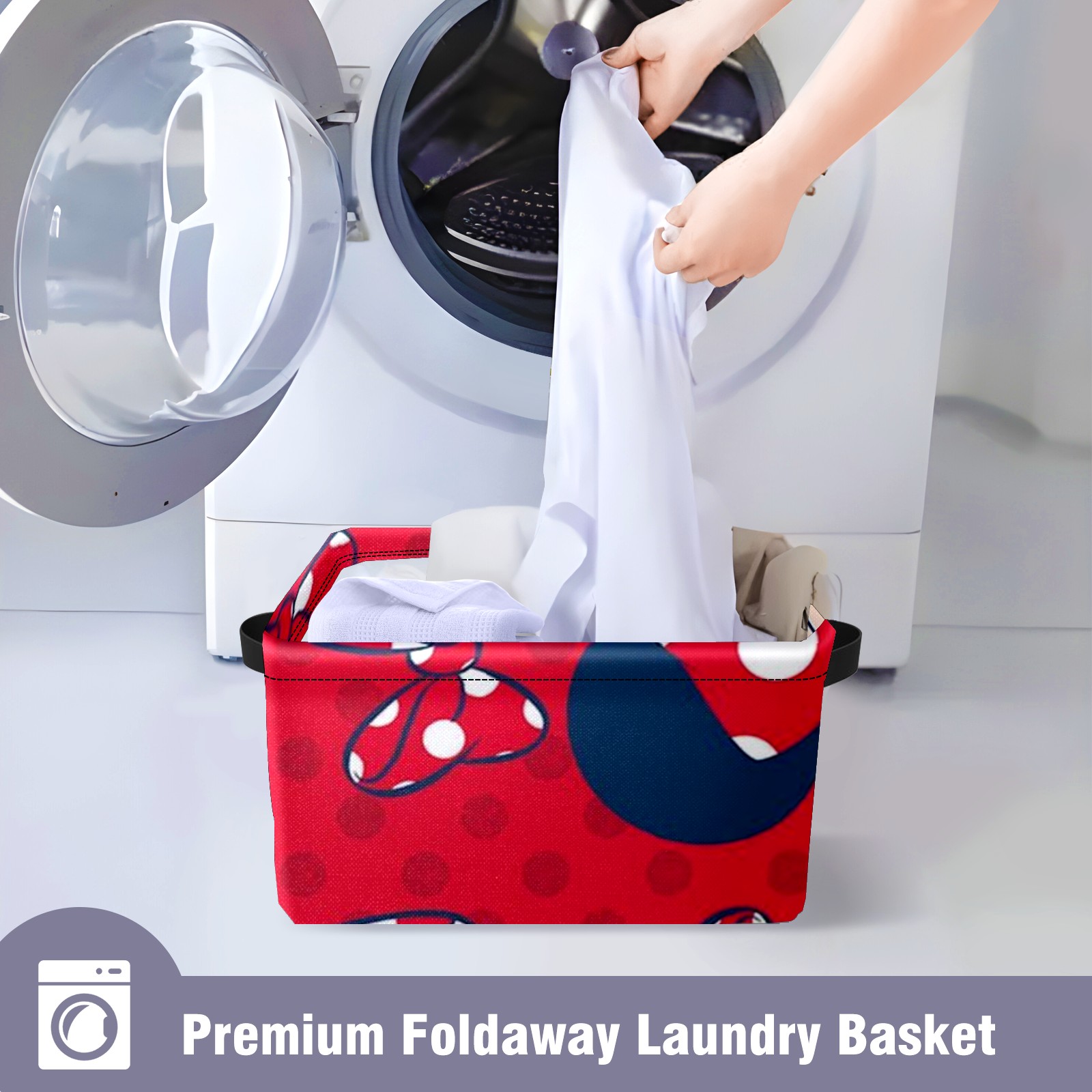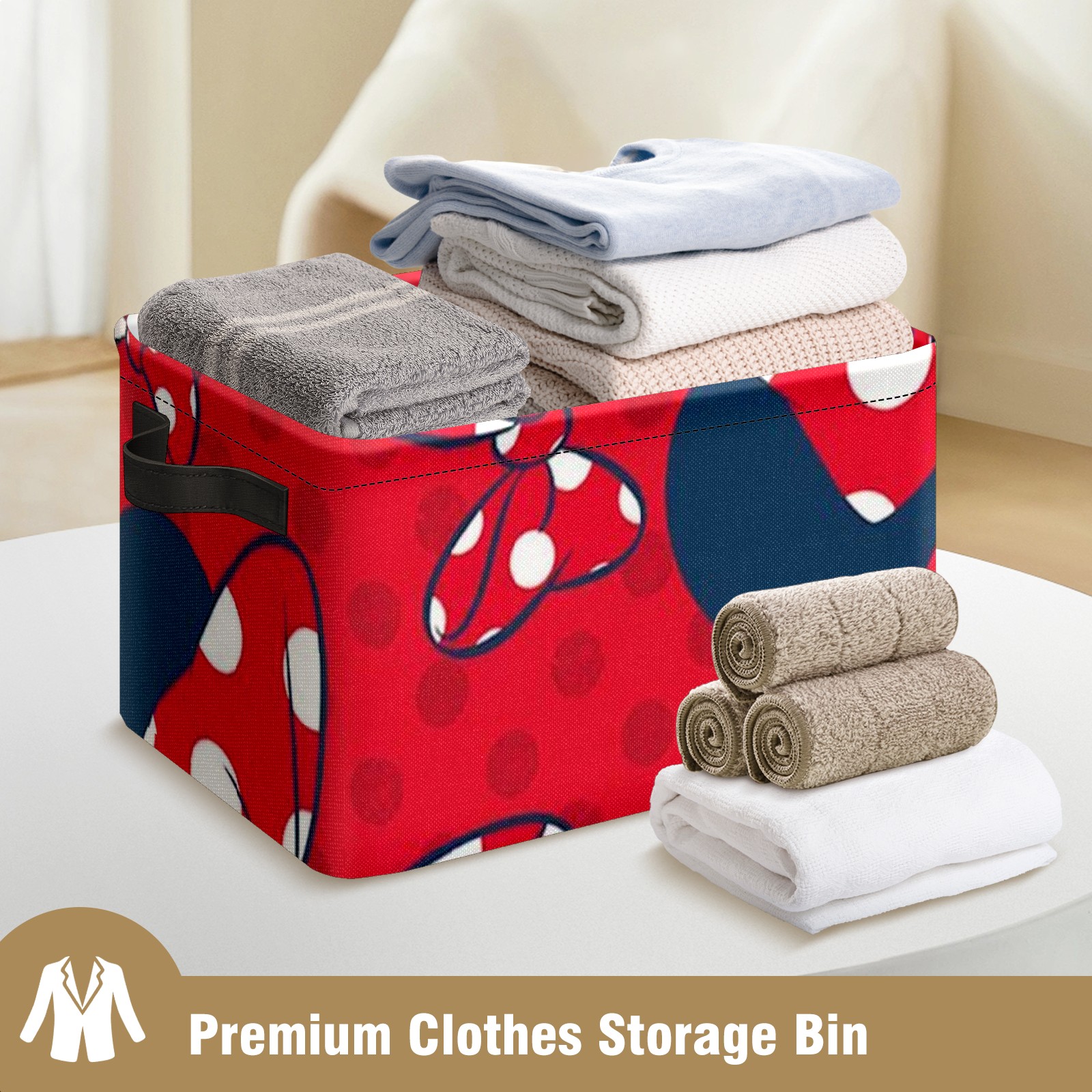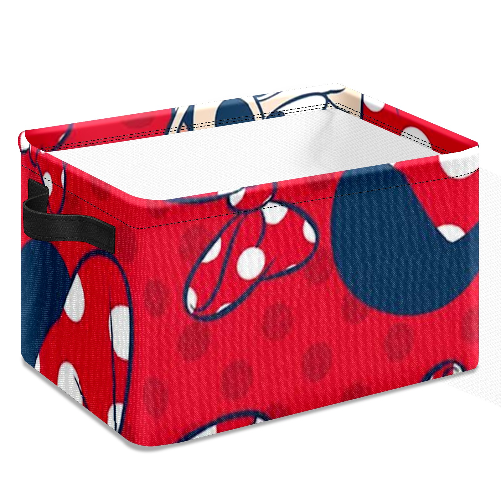Collapsible 600D Oxford Storage Basket with Mickey Mouse Minnie With Red Bow - Metal Frame 10"x14"x8" Reinforced Handles, Multi-Purpose Organizer