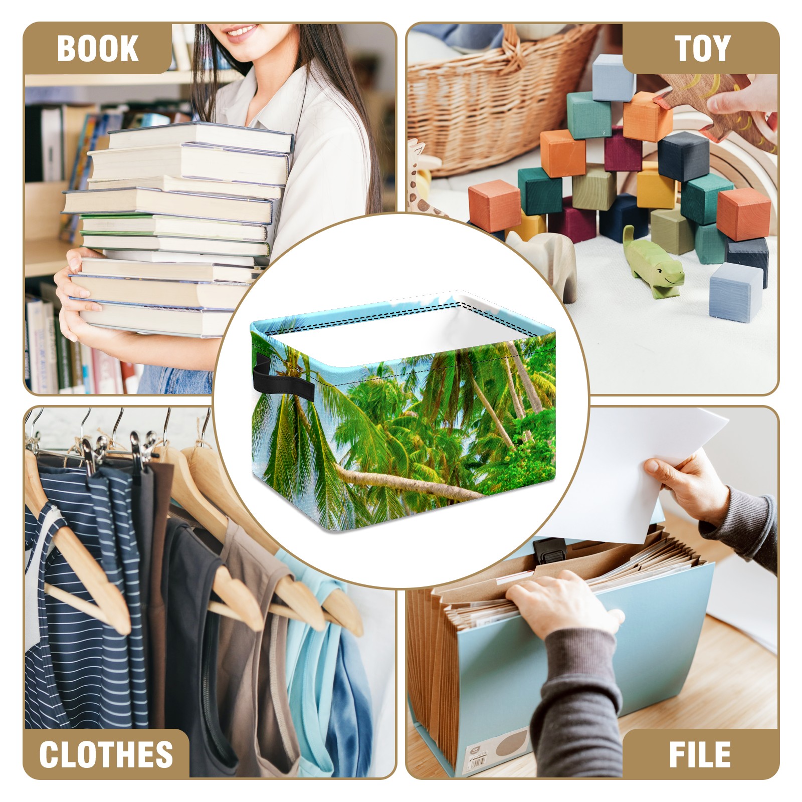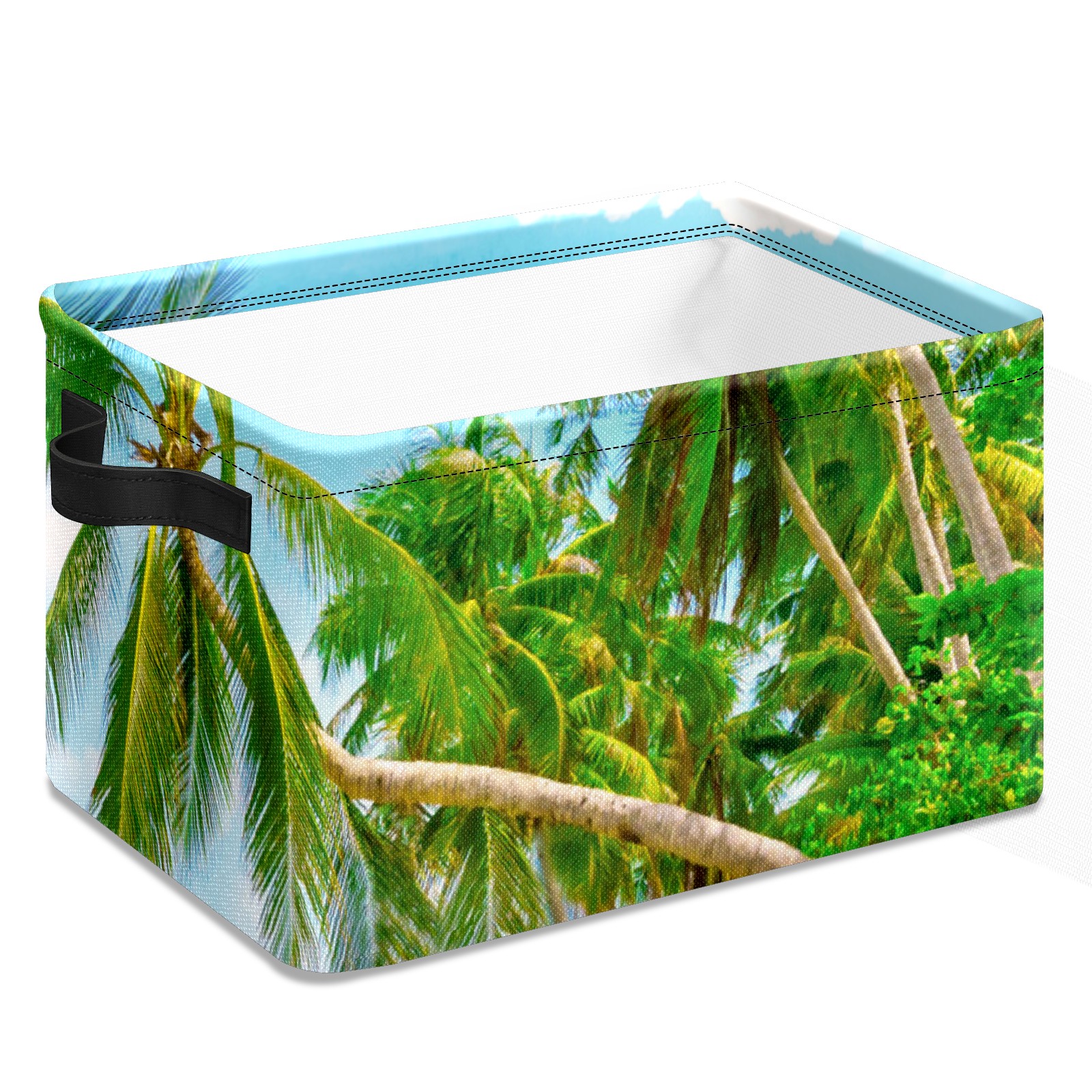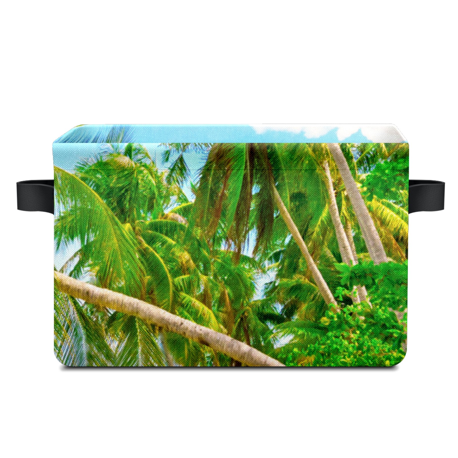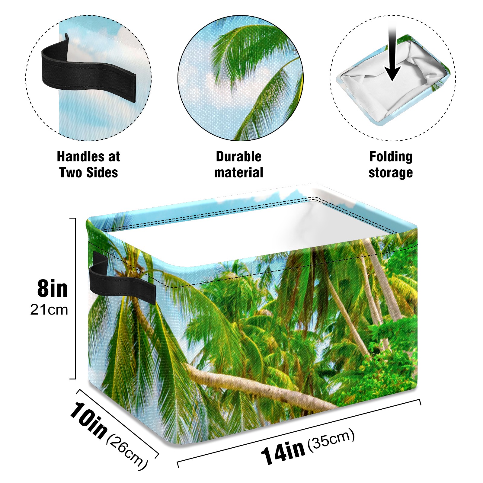 Collapsible 600D Oxford Storage Basket with Summer Sea Beach Sunny Holiday Tropical Palm Tree - Metal Frame 10"x14"x8" Reinforced Handles, Multi-Purpose Organizer