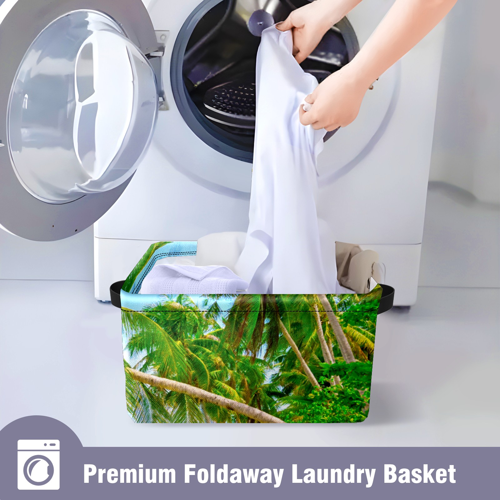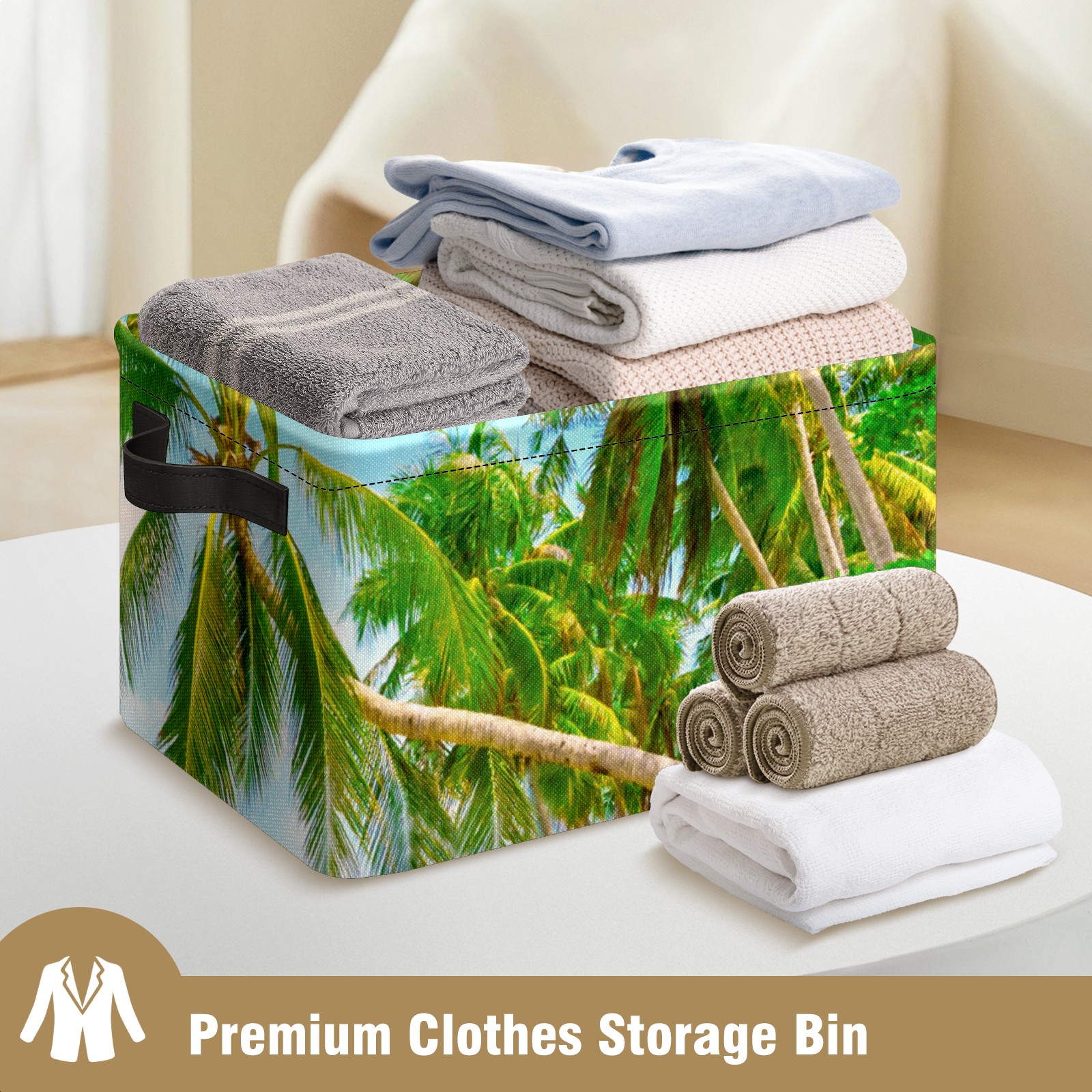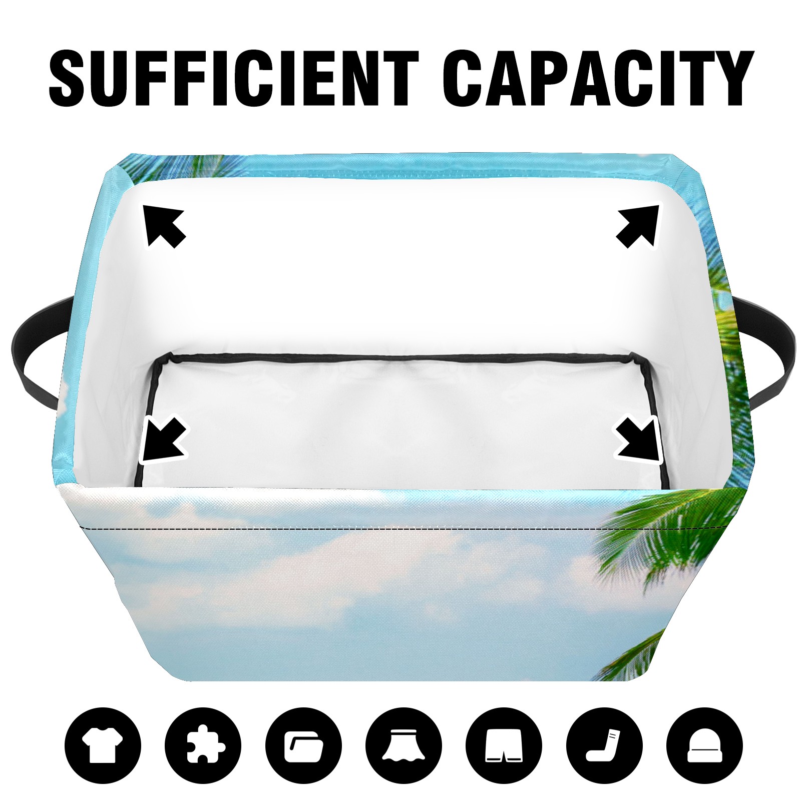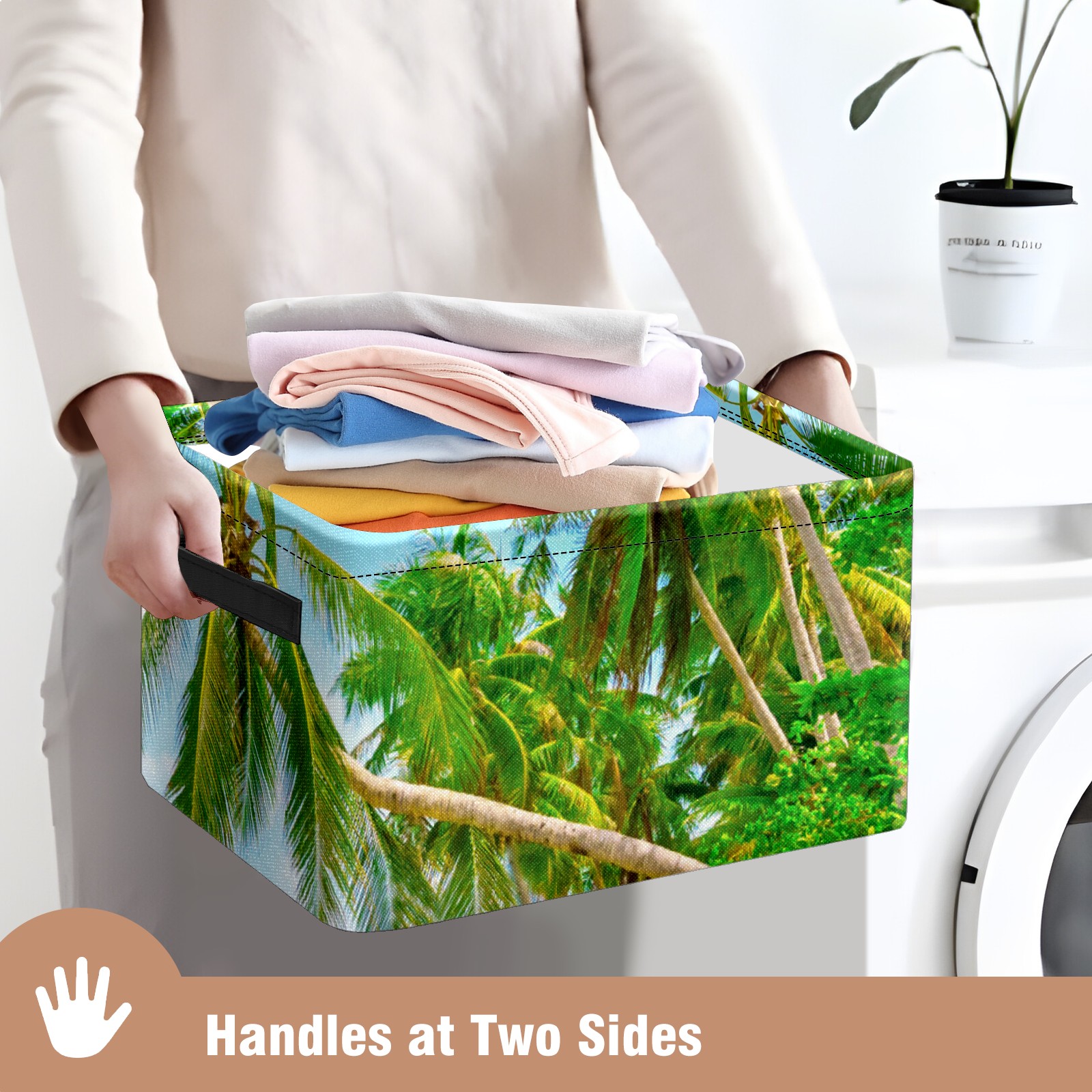Collapsible 600D Oxford Storage Basket with Summer Sea Beach Sunny Holiday Tropical Palm Tree - Metal Frame 10"x14"x8" Reinforced Handles, Multi-Purpose Organizer