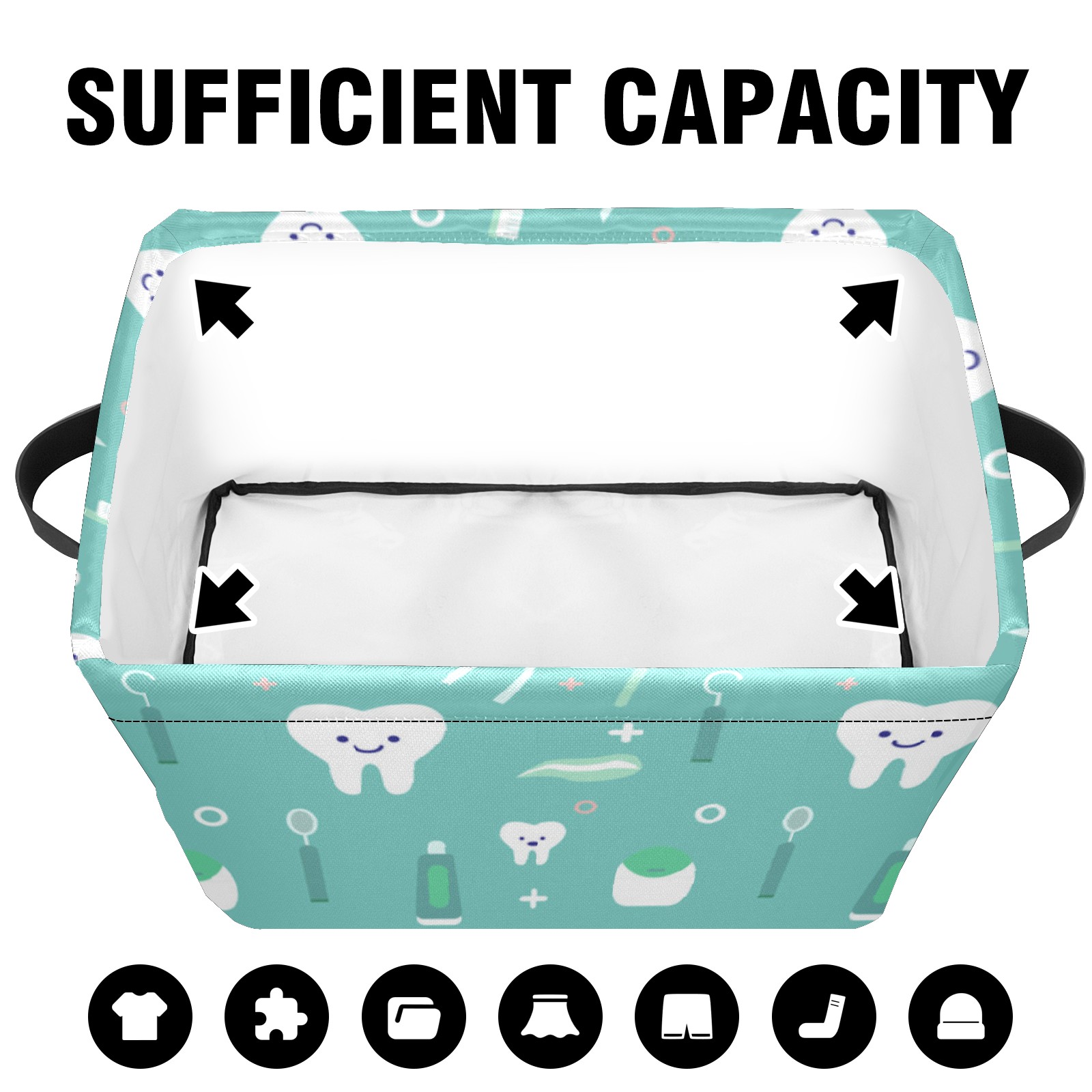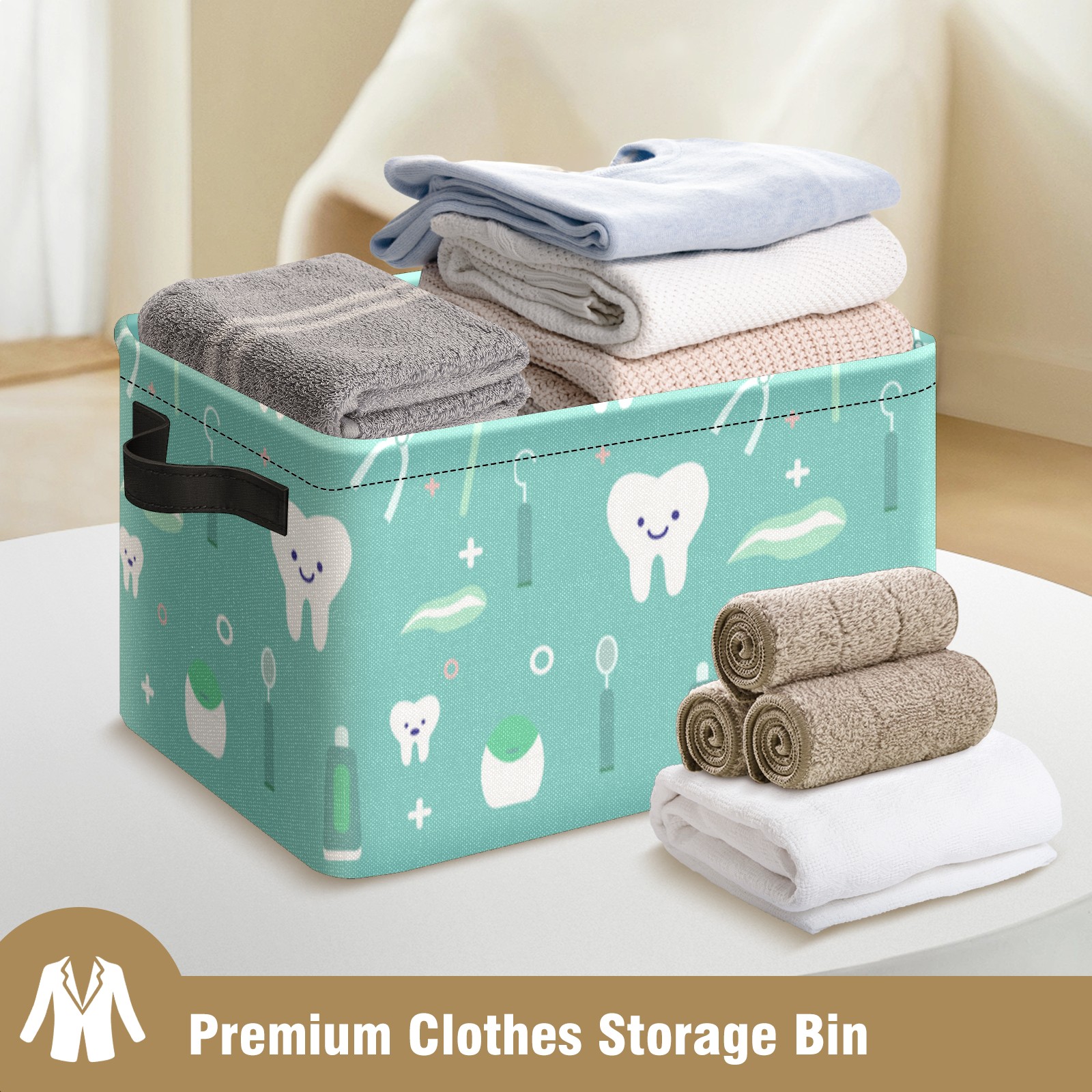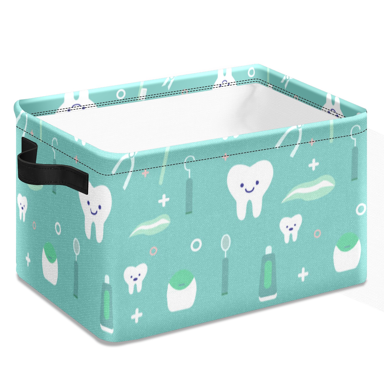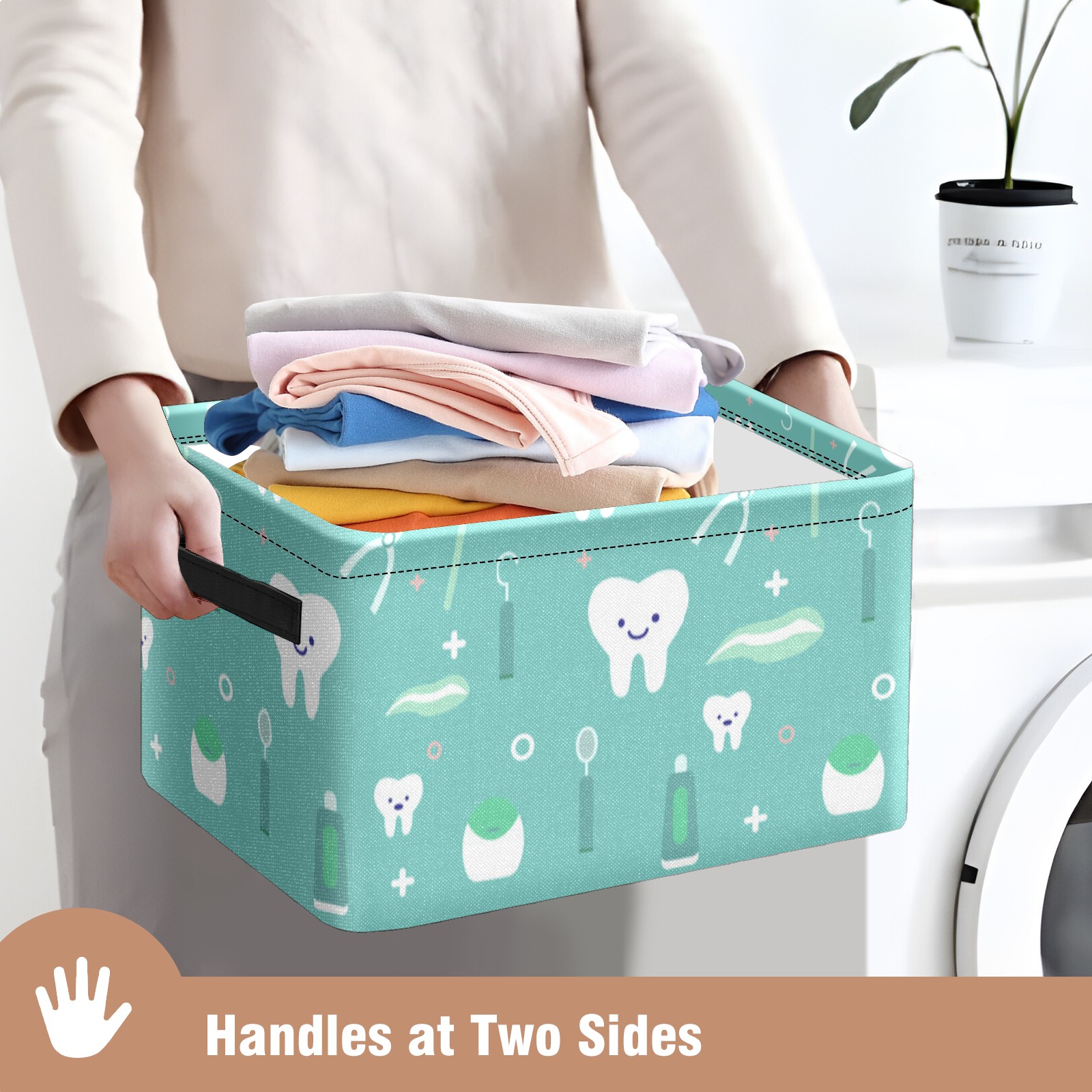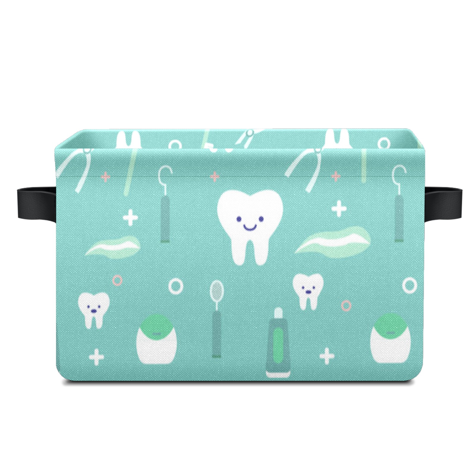 Collapsible 600D Oxford Storage Basket with Dental Smile Tooth Cartoon - Metal Frame 10"x14"x8" Reinforced Handles, Multi-Purpose Organizer