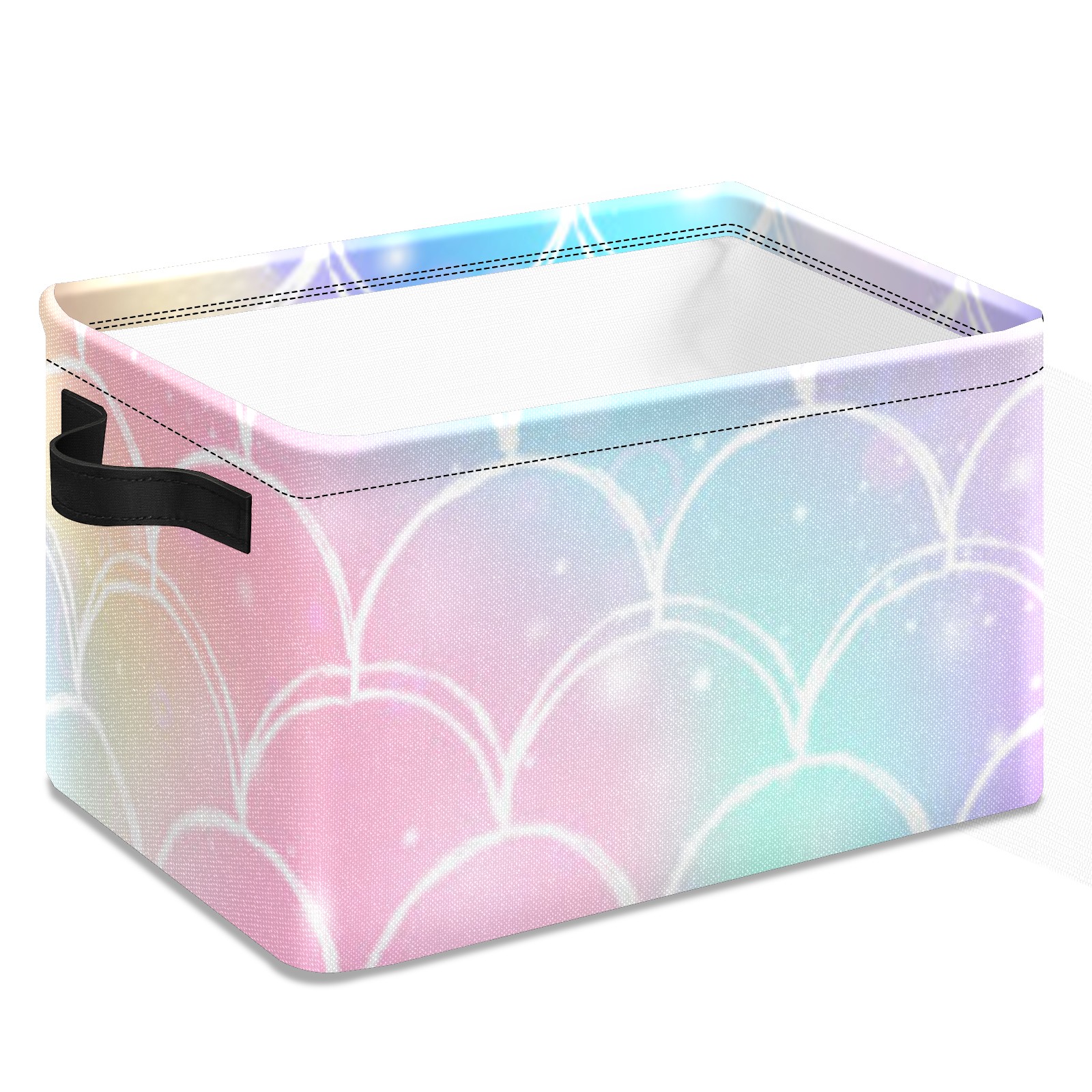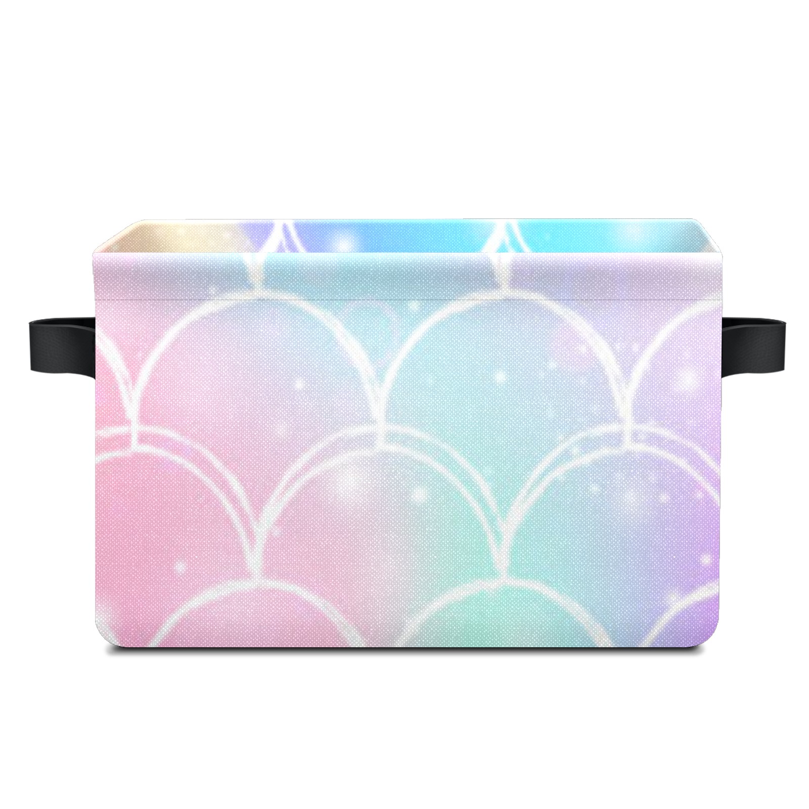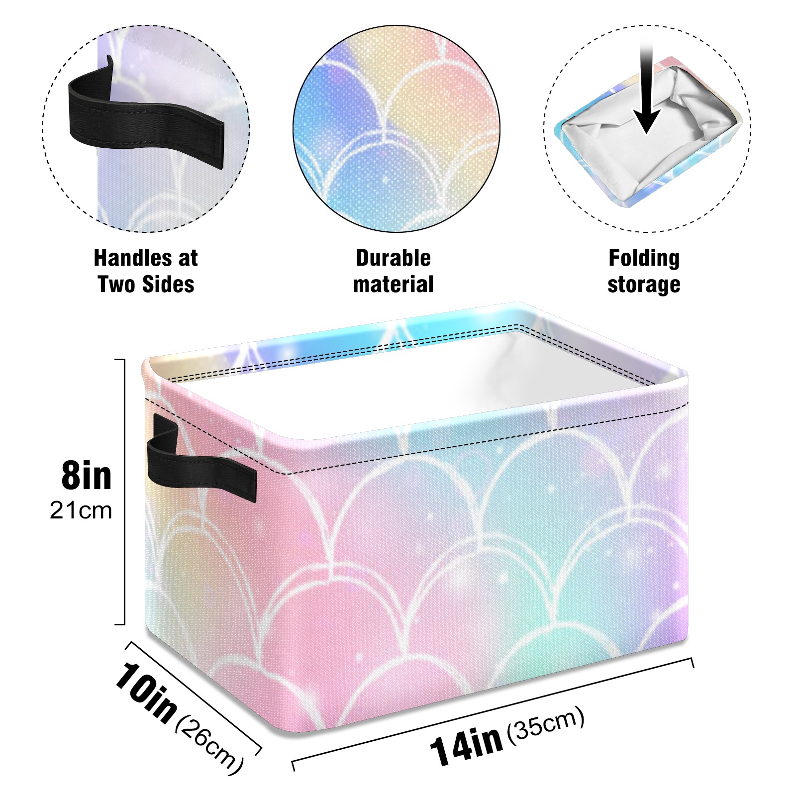 Collapsible 600D Oxford Storage Basket with Princess-mermaid-background-with-kawaii-rainbow-scales-pattern_121461-221 - Metal Frame 10"x14"x8" Reinforced Handles, Multi-Purpose Organizer