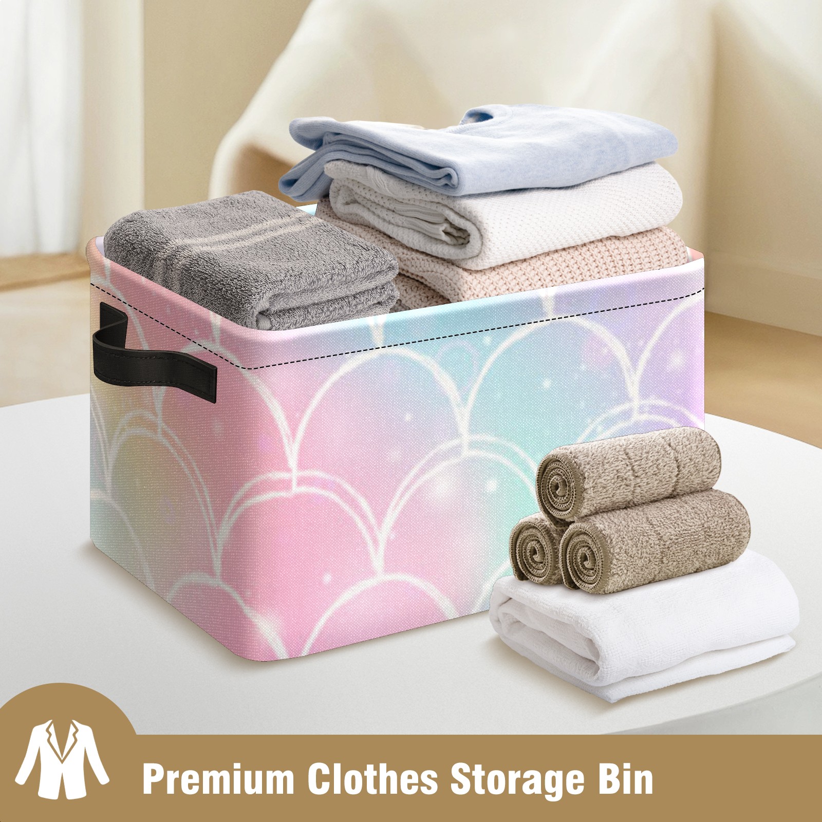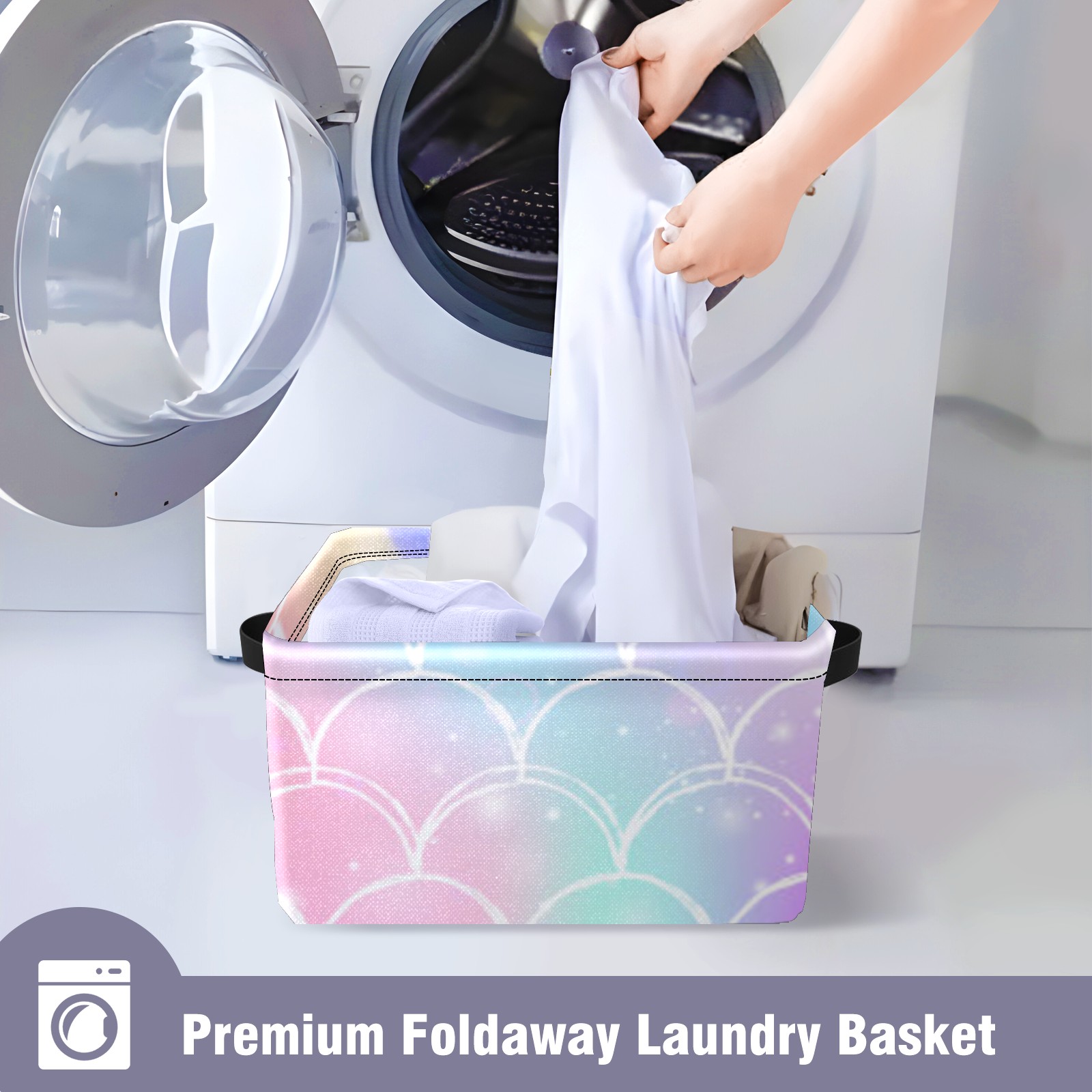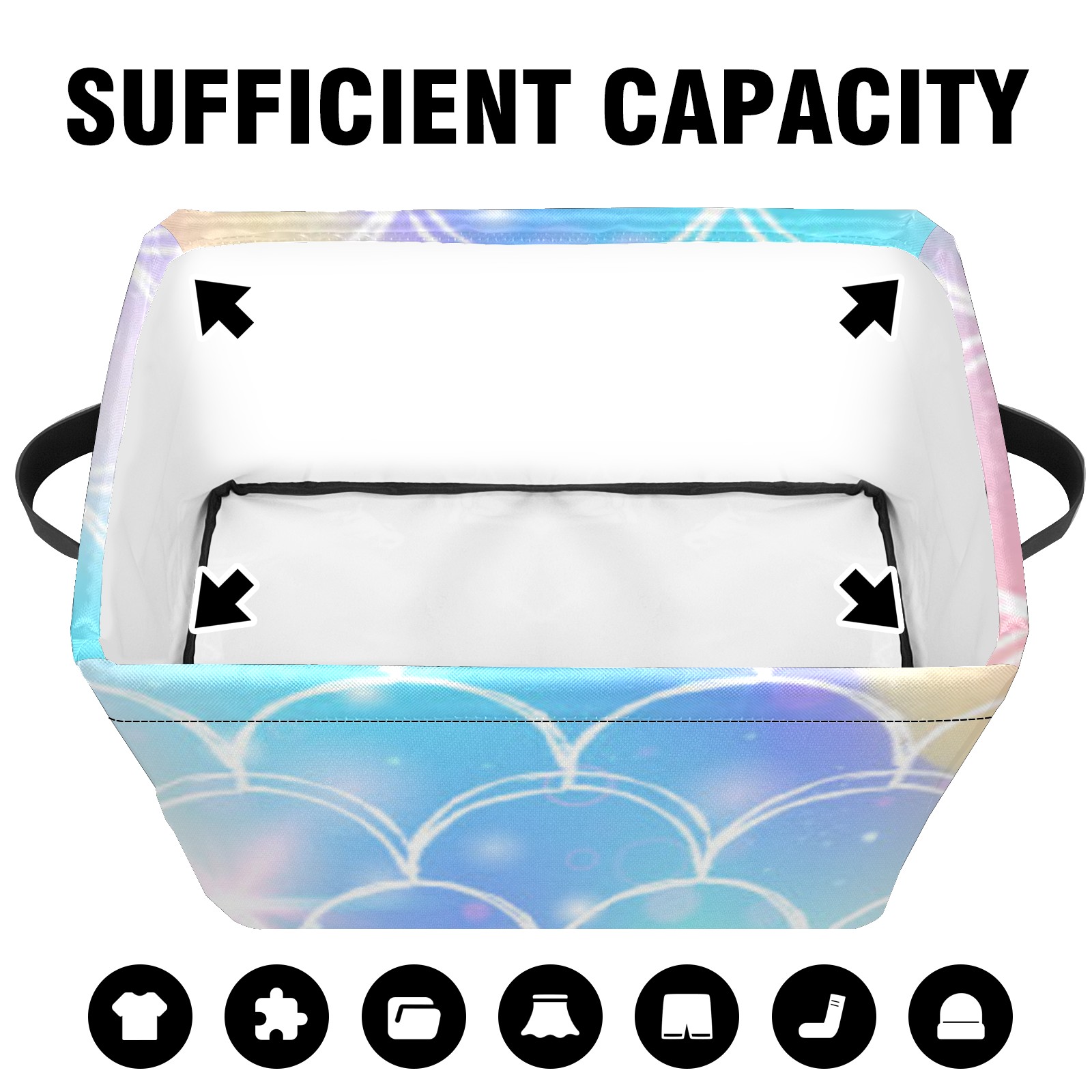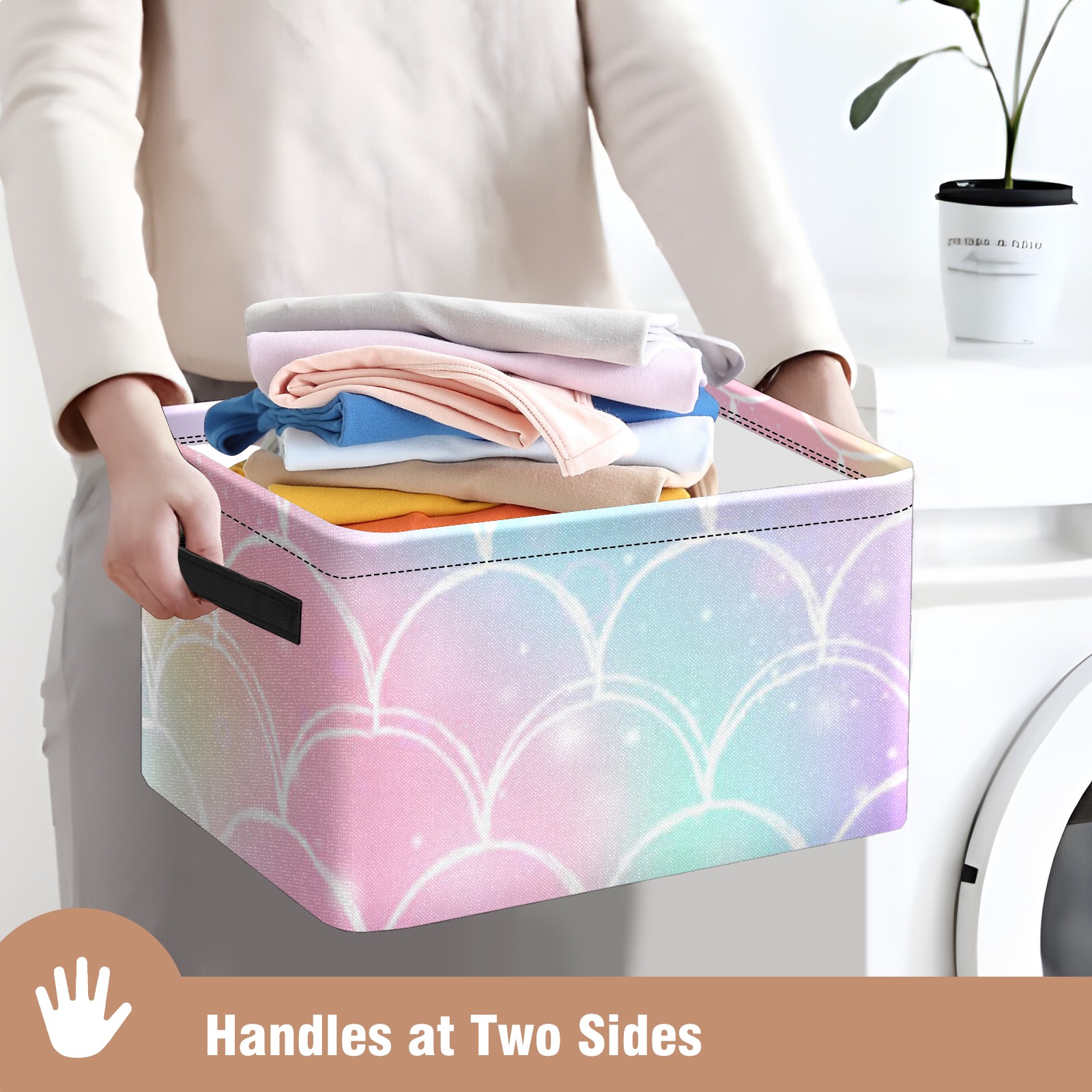 Collapsible 600D Oxford Storage Basket with Princess-mermaid-background-with-kawaii-rainbow-scales-pattern_121461-221 - Metal Frame 10"x14"x8" Reinforced Handles, Multi-Purpose Organizer