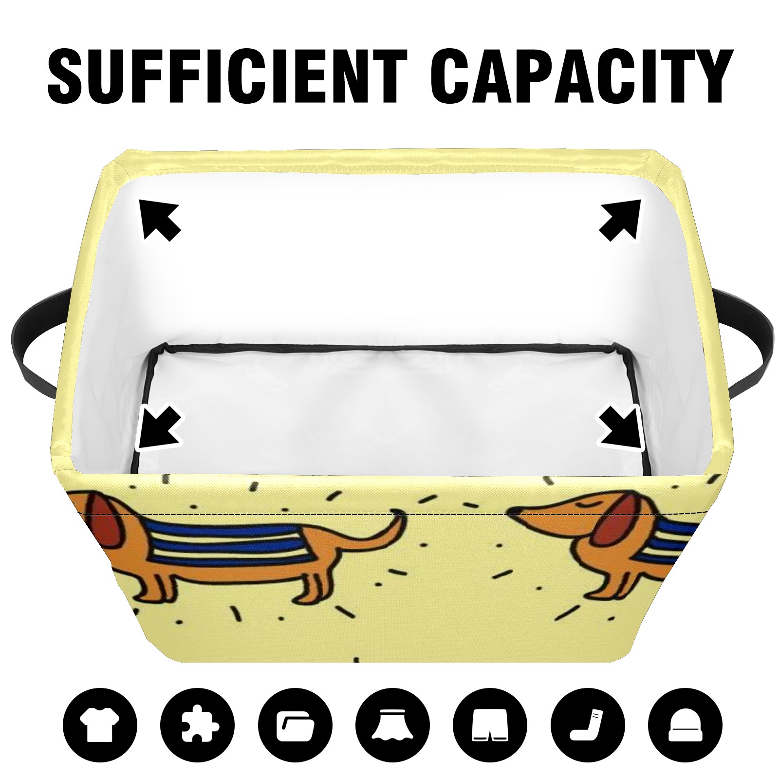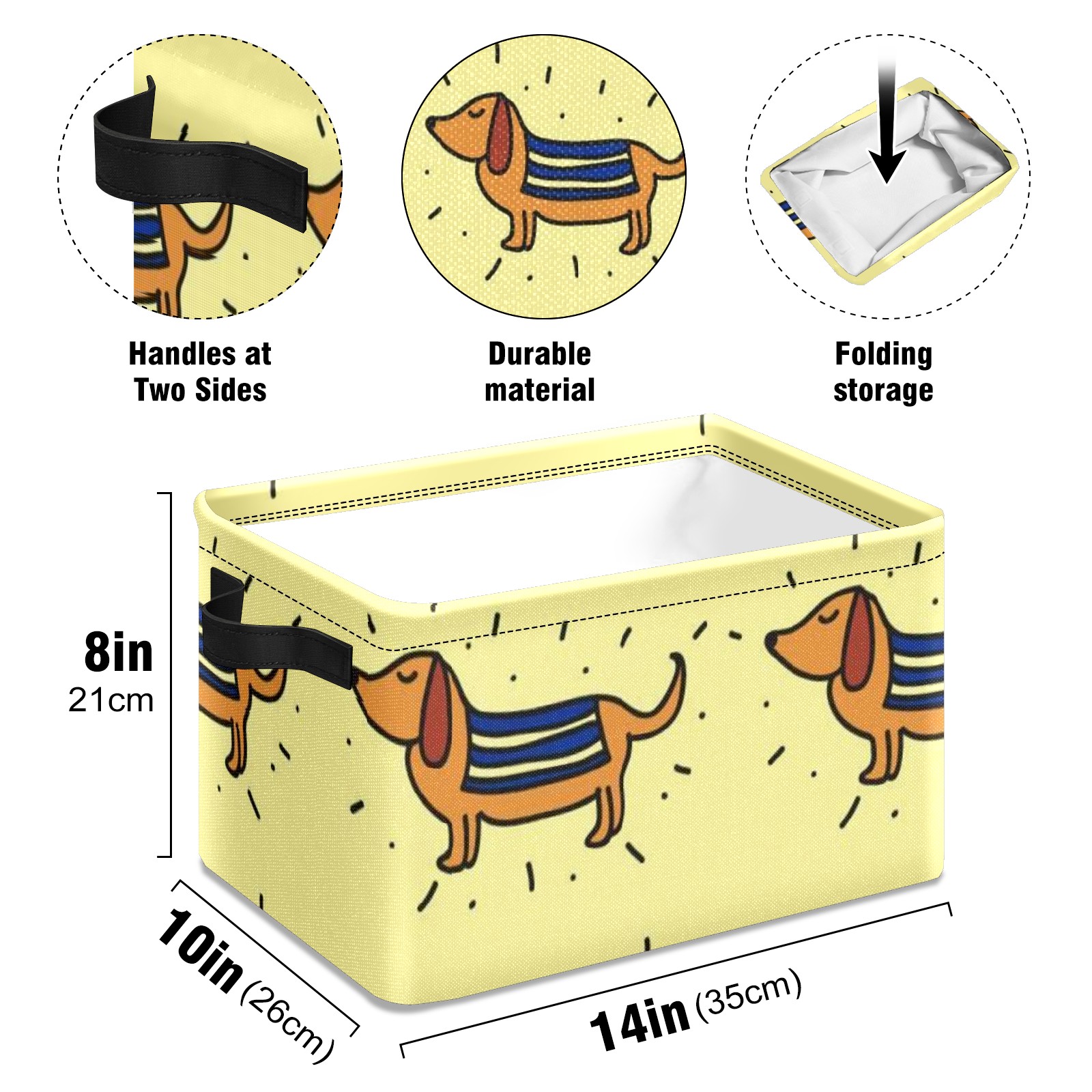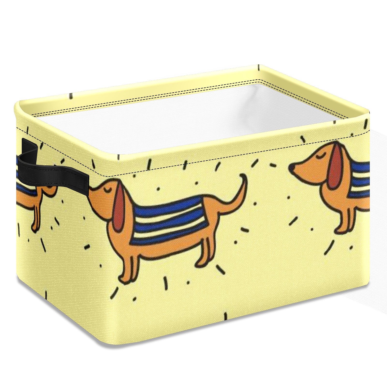 Collapsible 600D Oxford Storage Basket with Doodle-dachshund-vector-pattern - Metal Frame 10"x14"x8" Reinforced Handles, Multi-Purpose Organizer