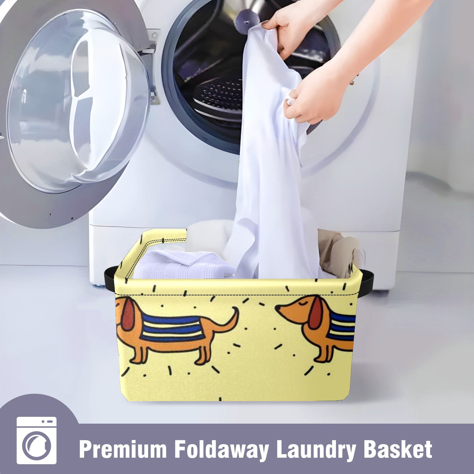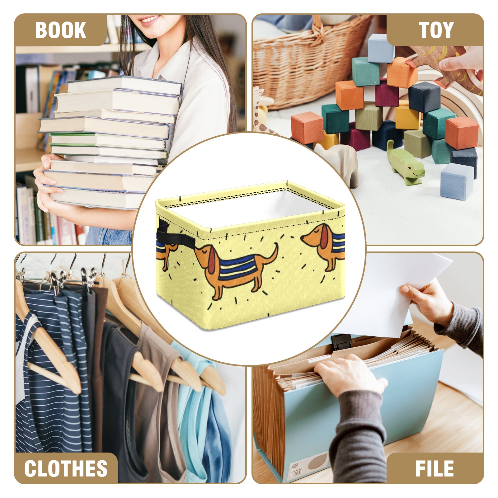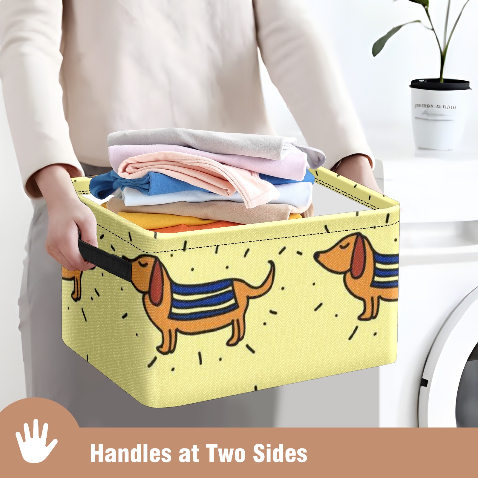 Collapsible 600D Oxford Storage Basket with Doodle-dachshund-vector-pattern - Metal Frame 10"x14"x8" Reinforced Handles, Multi-Purpose Organizer