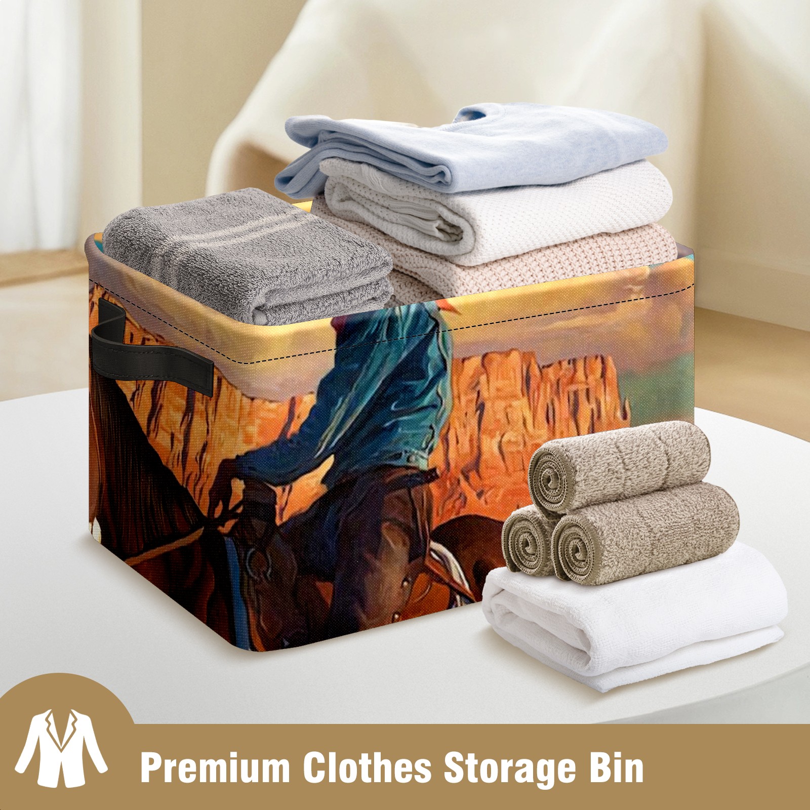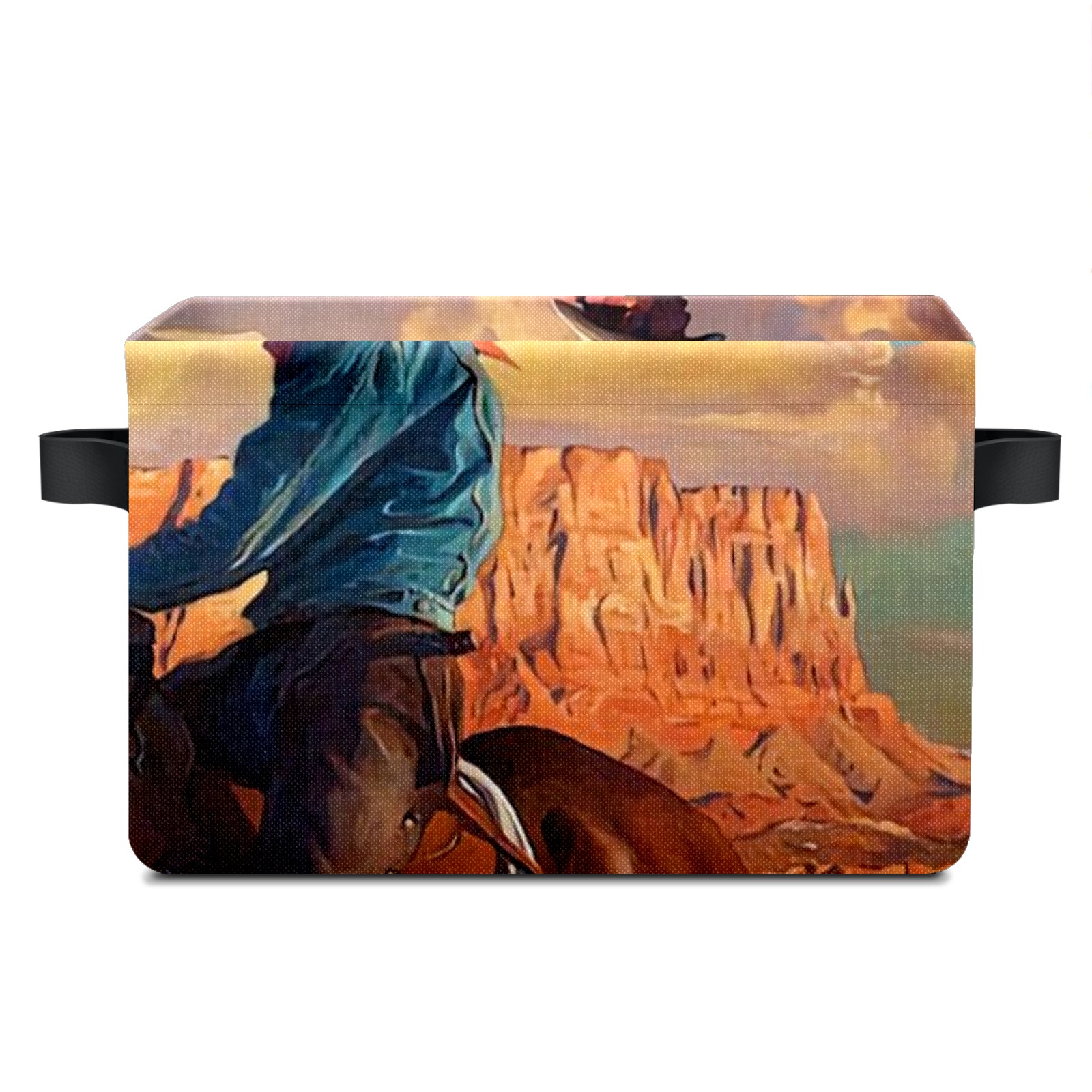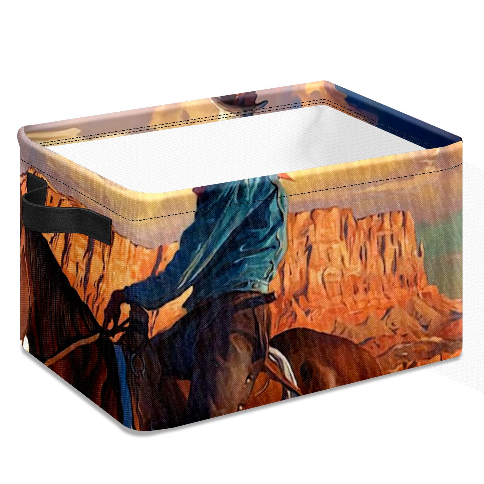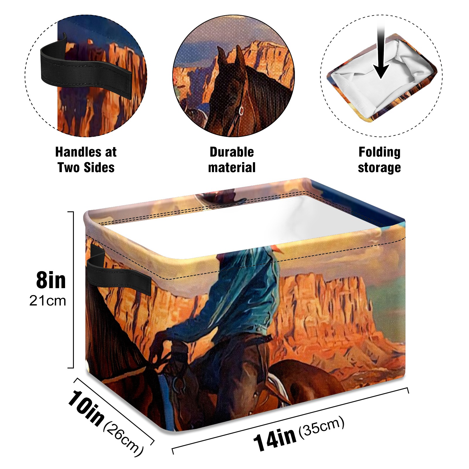 Collapsible 600D Oxford Storage Basket with Cowboy And American Western Landscape - Metal Frame 10"x14"x8" Reinforced Handles, Multi-Purpose Organizer
